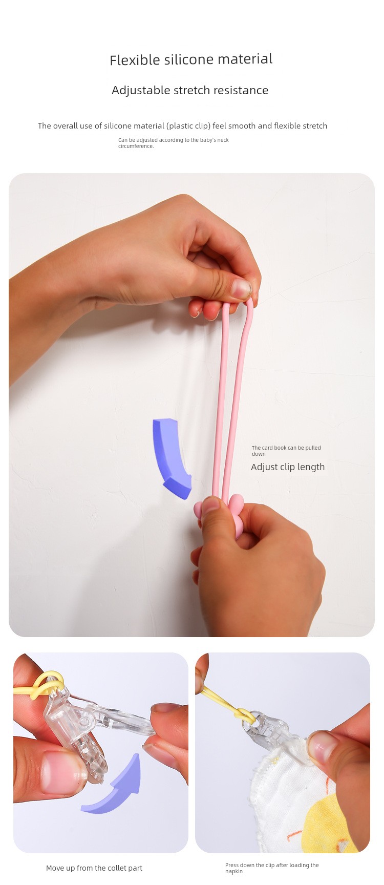 Tissue Holder Halterneck Napkin Clip Handkerchief Clip Dry Rice Clip Eating Anti-Dirty Saliva Towel Clip Bib Clip Wordy Pink