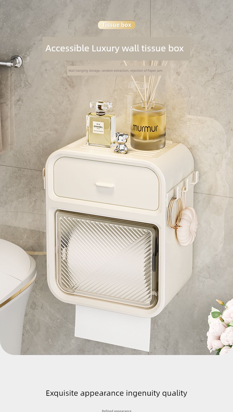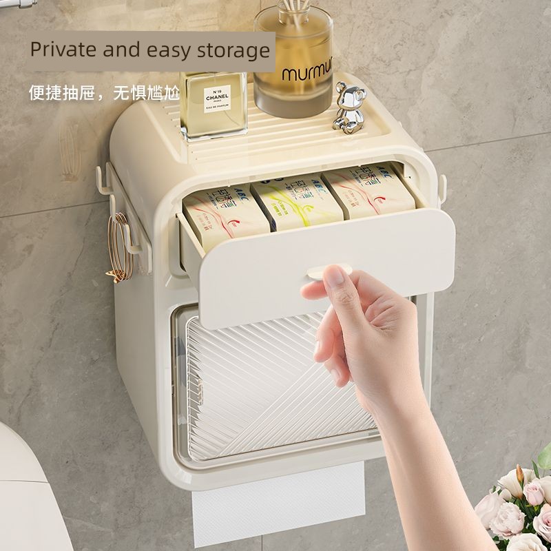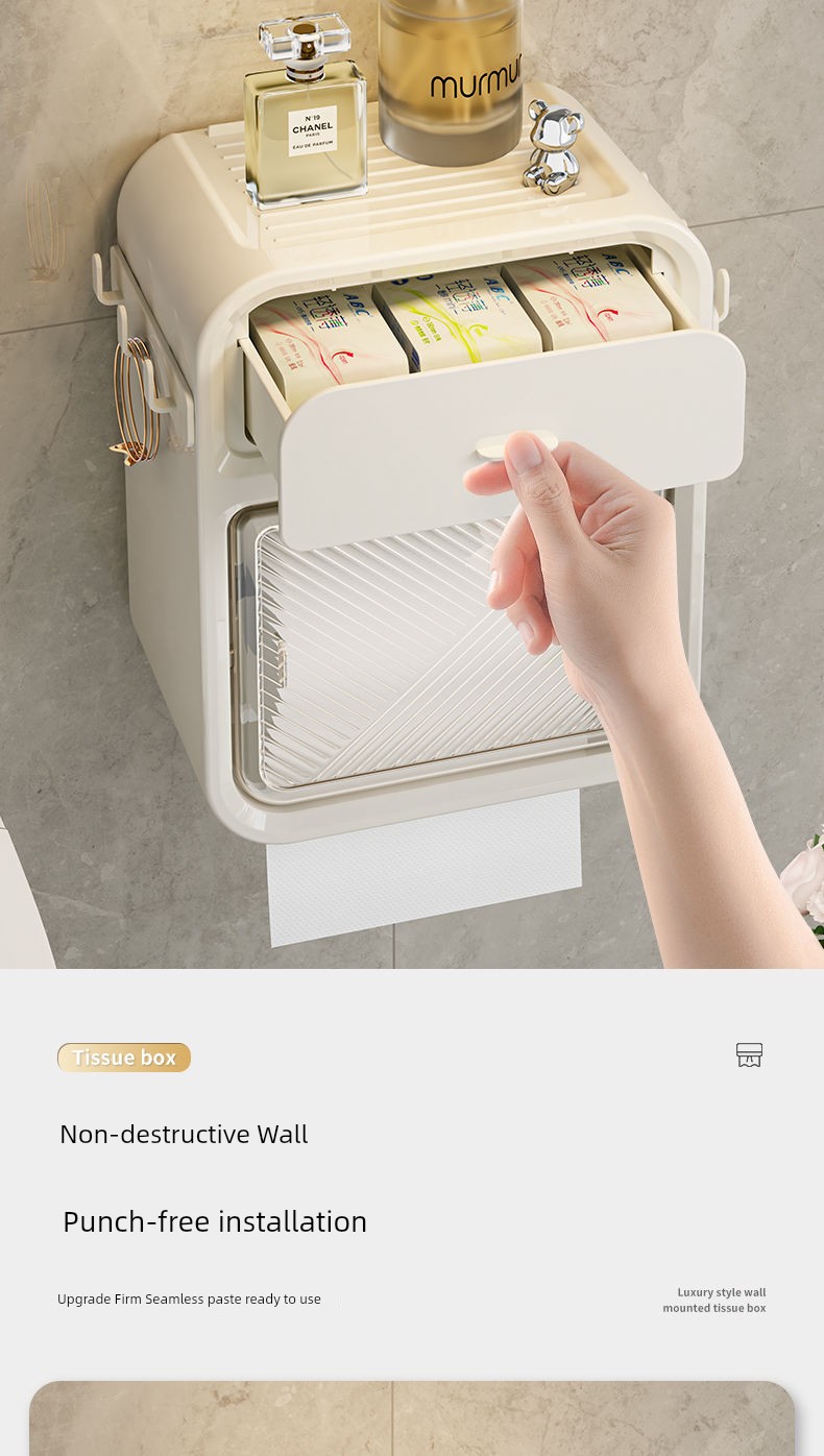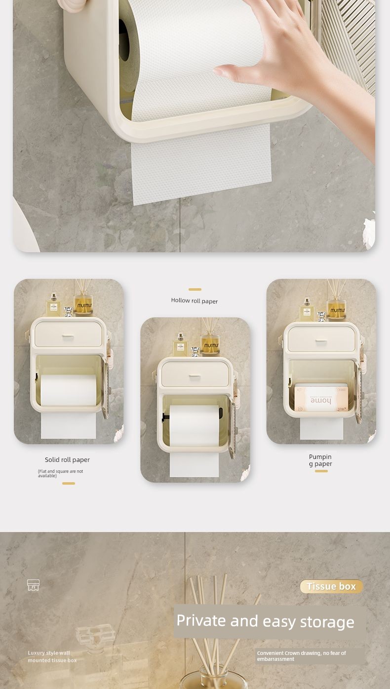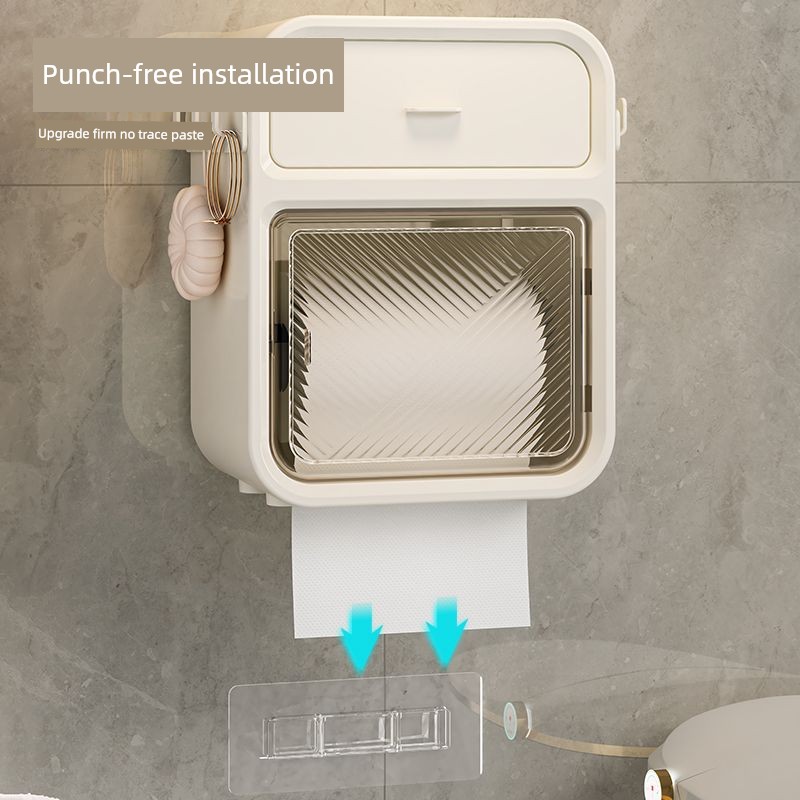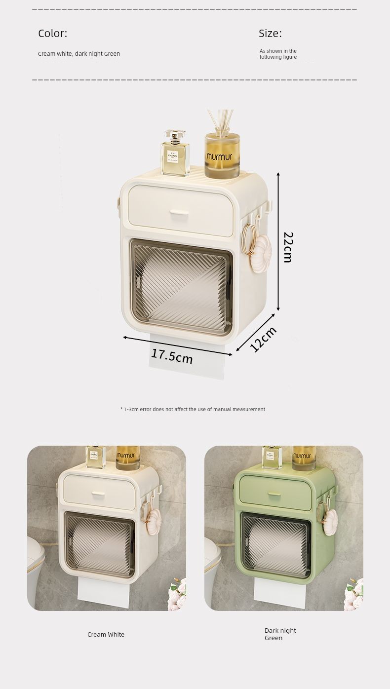 Toilet Toilet Paper Box Wall-Mounted Tissue Box Punch-Free Waterproof Toilet Paper Holder Toilet Paper Rolls Storage Rack