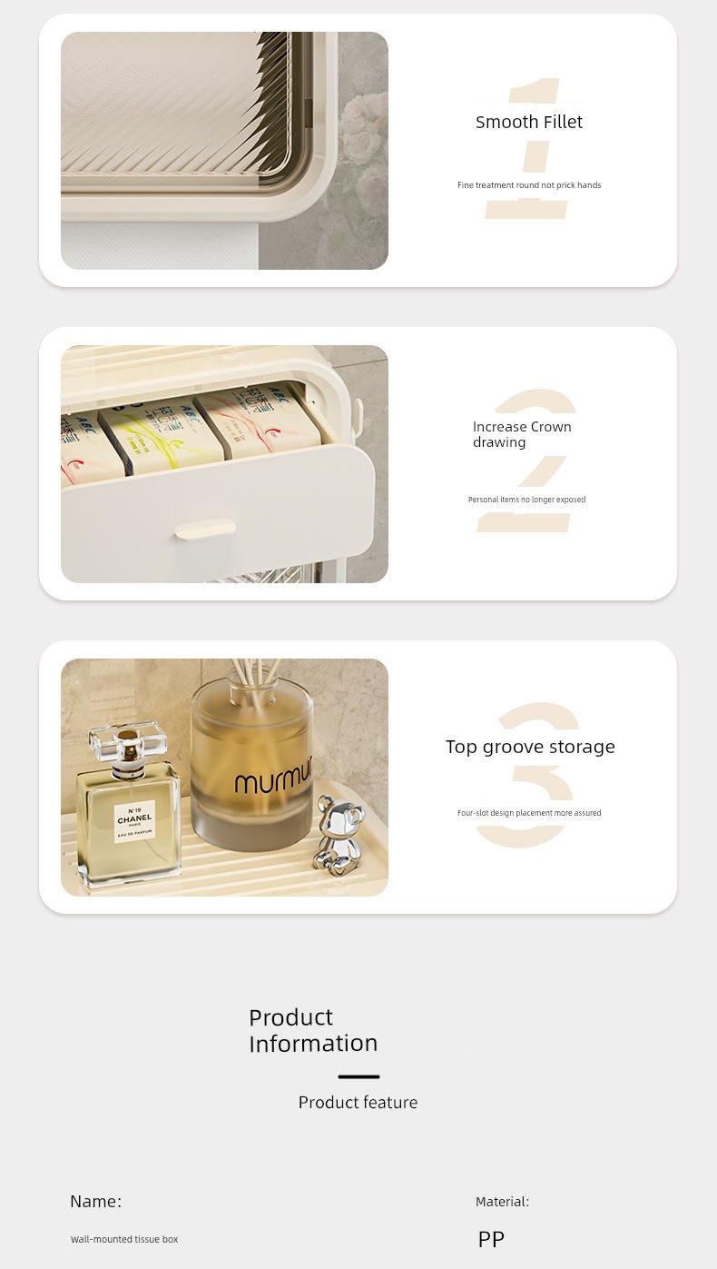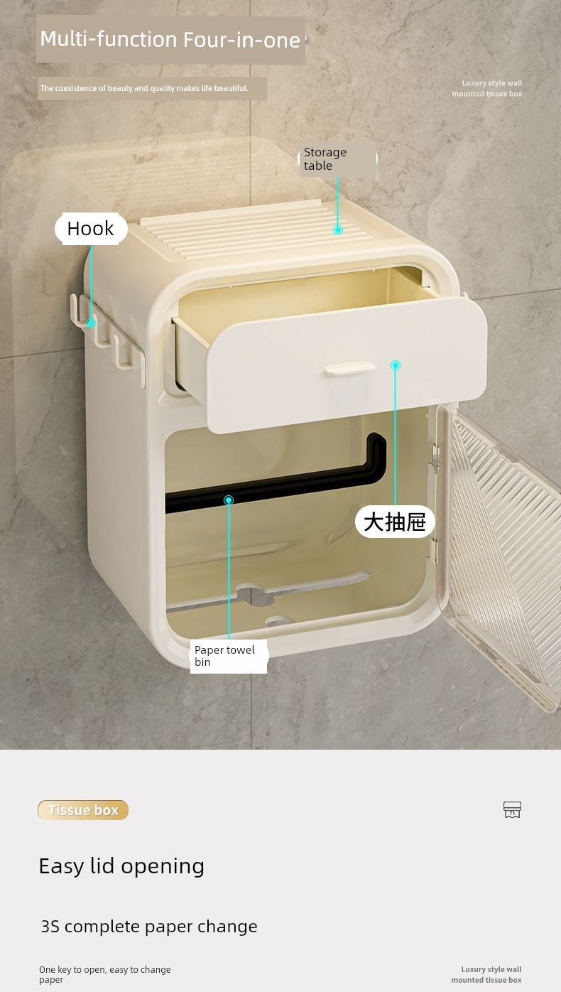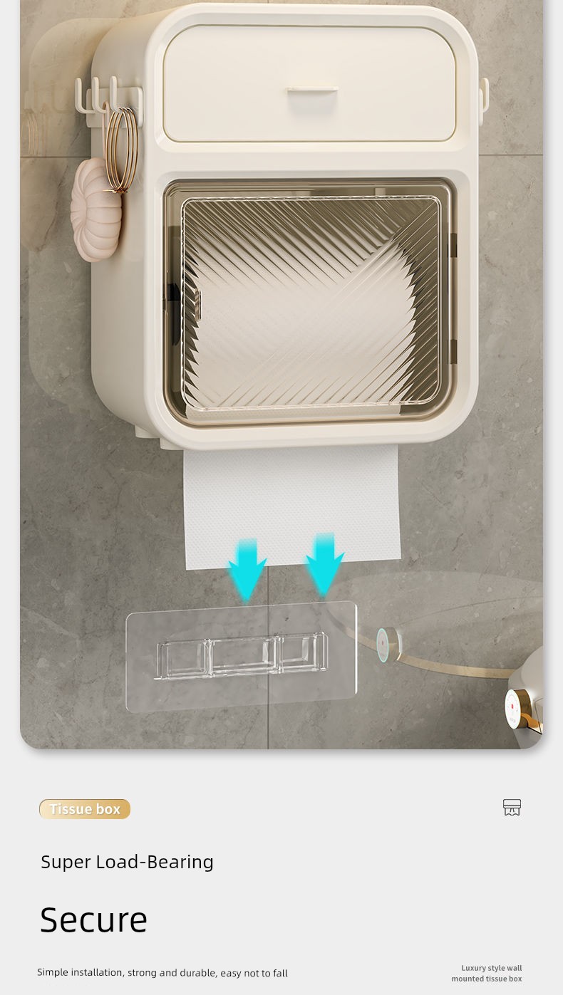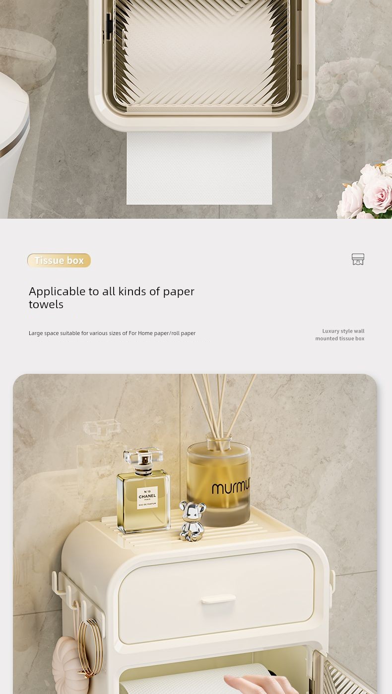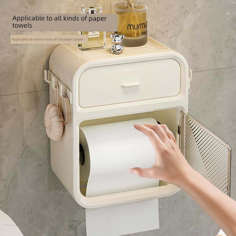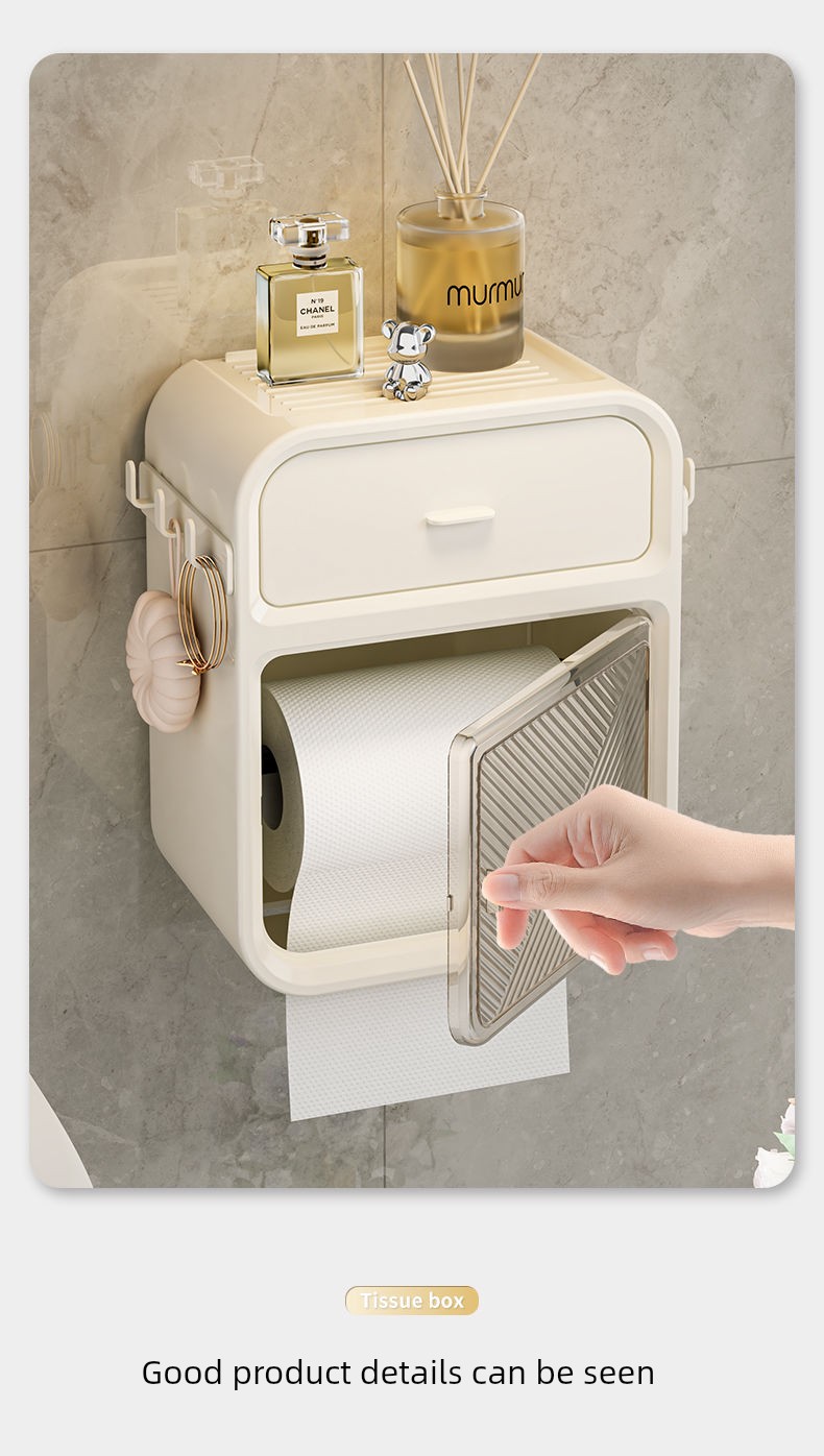 Toilet Toilet Paper Box Wall-Mounted Tissue Box Punch-Free Waterproof Toilet Paper Holder Toilet Paper Rolls Storage Rack