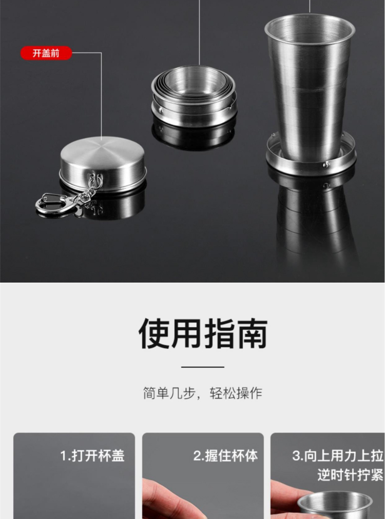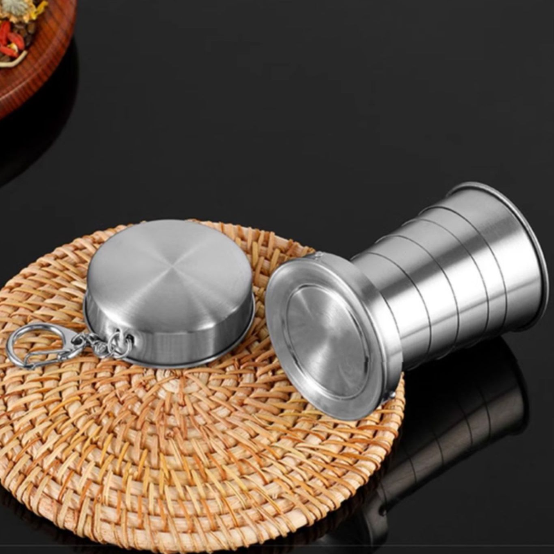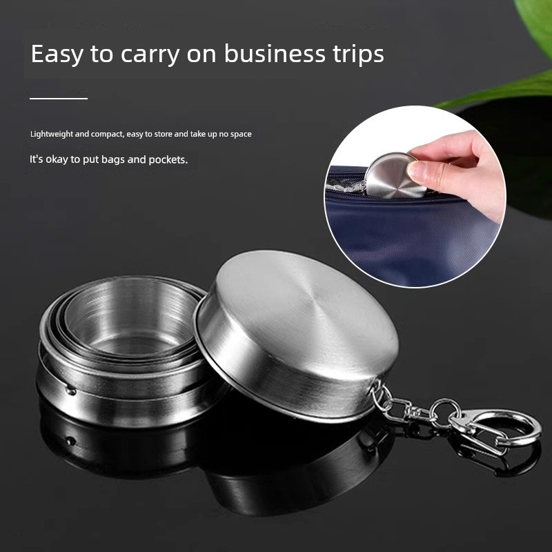 Travel Compression Cup Stainless Steel Folding Cup Portable High Temperature Resistant Retractable Mouthwash Small Water Cup Outdoor