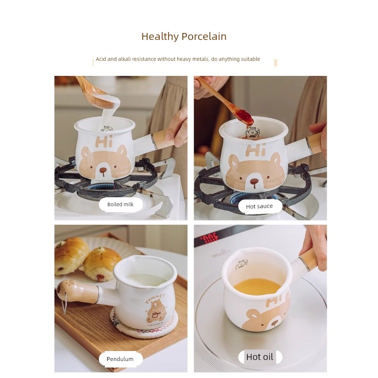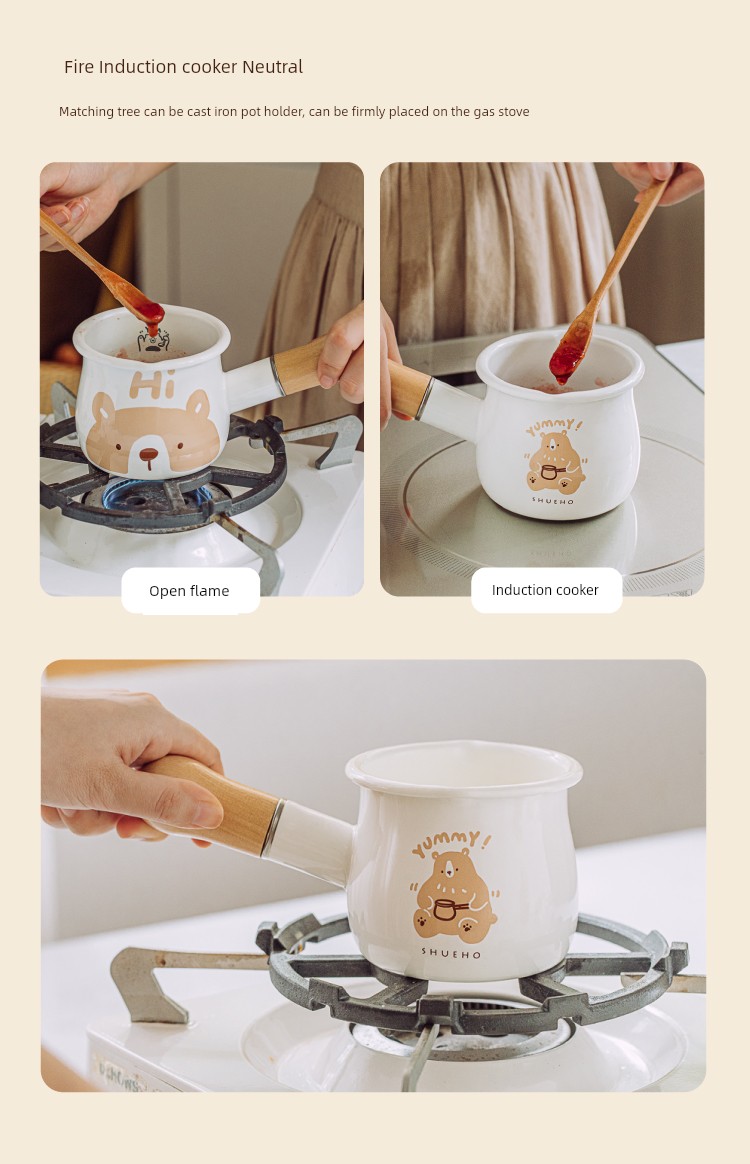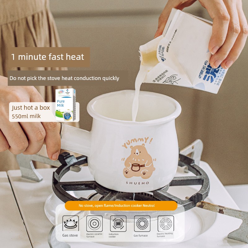 Tree Can Bear Enamel Mini Small Milk Boiling Pot Hot Milk Boiled Milk Dedicated Pot Milk Tea Small Pot Gas Stove Small Breakfast