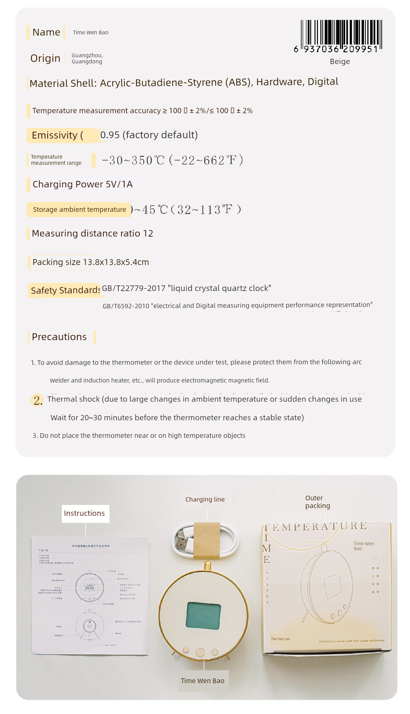 Tree Keshi Wenbao Thermometer Food Kitchen Baking Baby Water Temperature Measurement For Home Timer Reminder Visualization