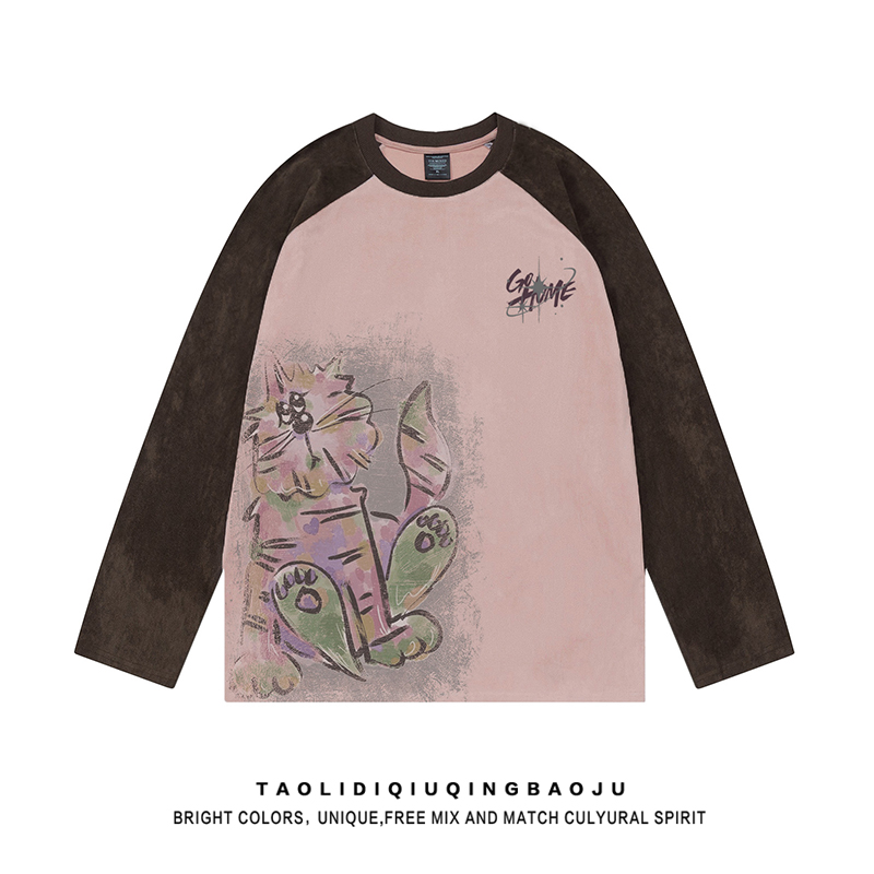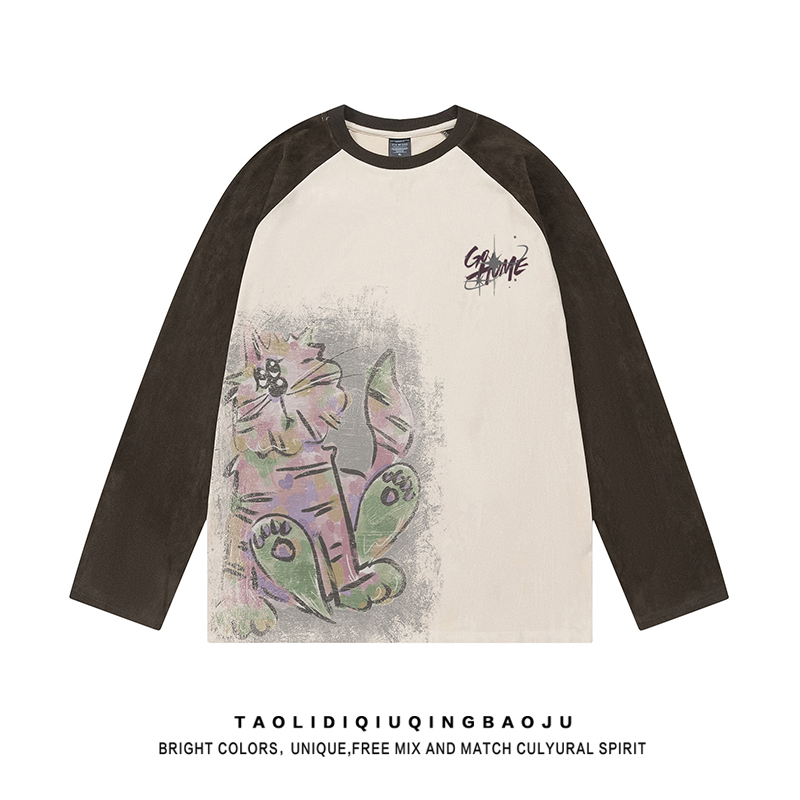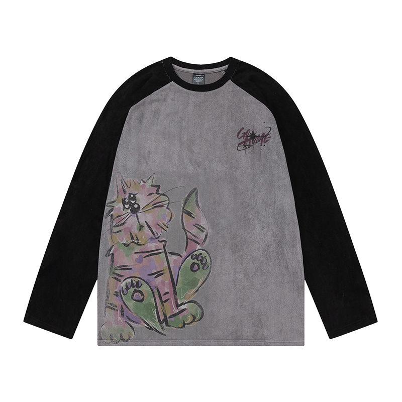 Trendy Hand-Painted Graffiti Casual Distressed Long Sleeves T-shirt