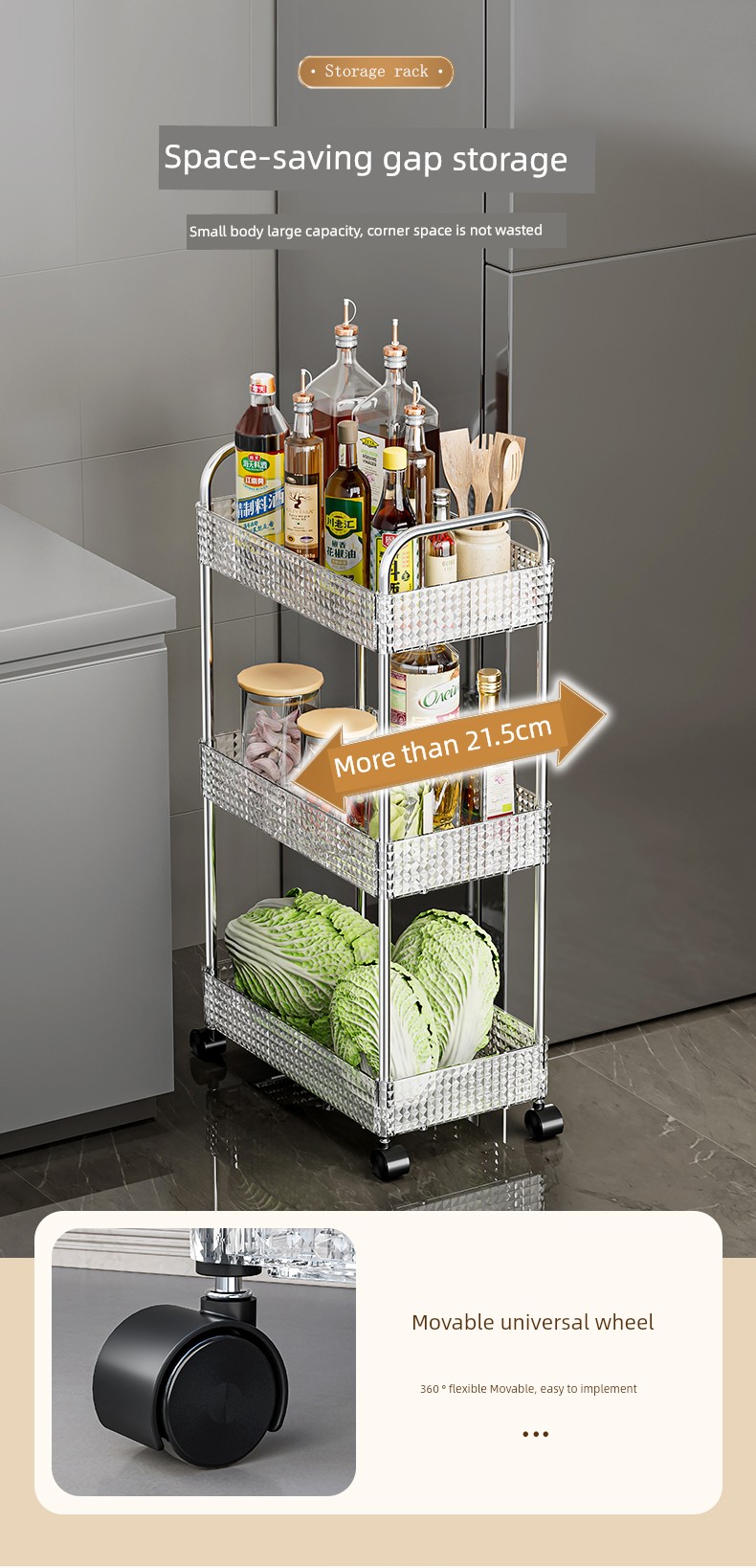 Trolley Rack Household Snack Floor Multi-Layer Living Room Storage Bookshelf Movable Kitchen Fruit and Vegetable Vegetable Basket Shelf