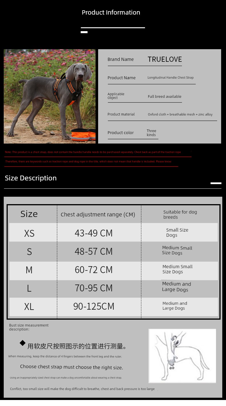 Truelove Dog Hand Holding Rope Dog Rope Dog Walking Artifact Vest-Style Medium-Sized Dog Large Chest Strap Pet Supplies