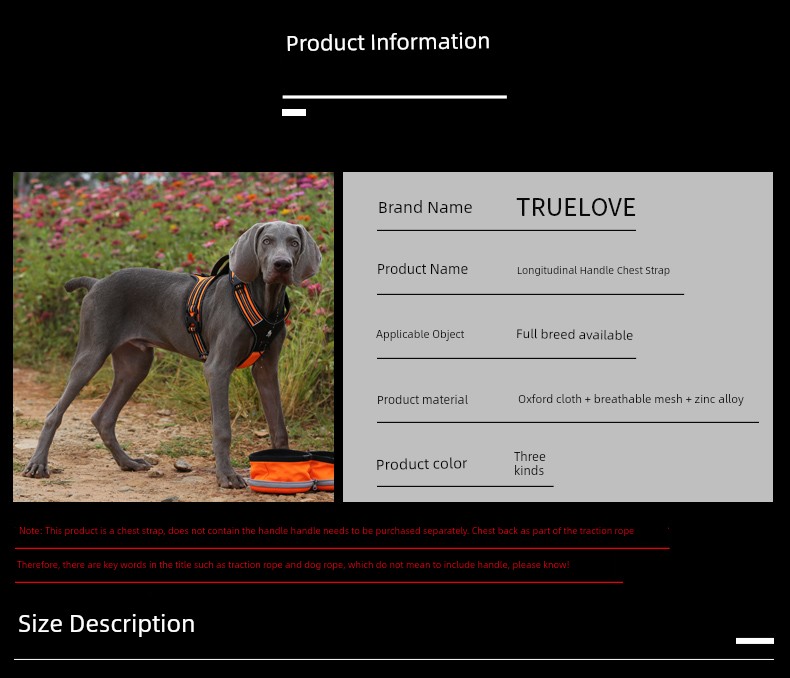 Truelove Dog Hand Holding Rope Vest Chest Strap Pet Medium Large Dog Golden Retriever Supplies Dog Leash