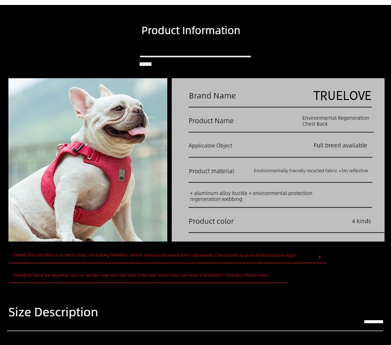 Truelove Pet Dog Hand Holding Rope Dog Walking Chain Vest Chest Strap Small, Medium and Large Dogs Supplies Teddy