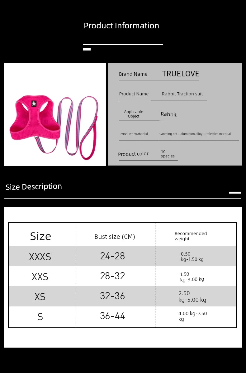 Truelove Rabbit Hand Holding Rope Rabbit Rope Anti Breaking Loose Vest Pet Rabbit Pygmy Rabbit Special Outing Rope