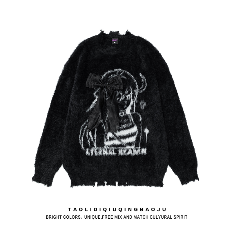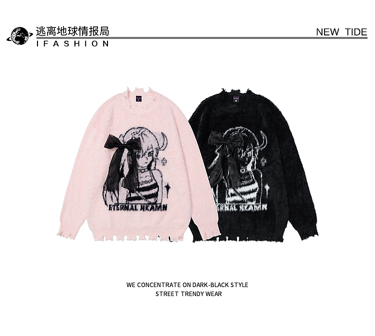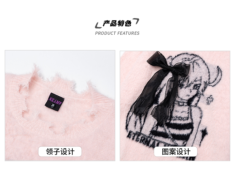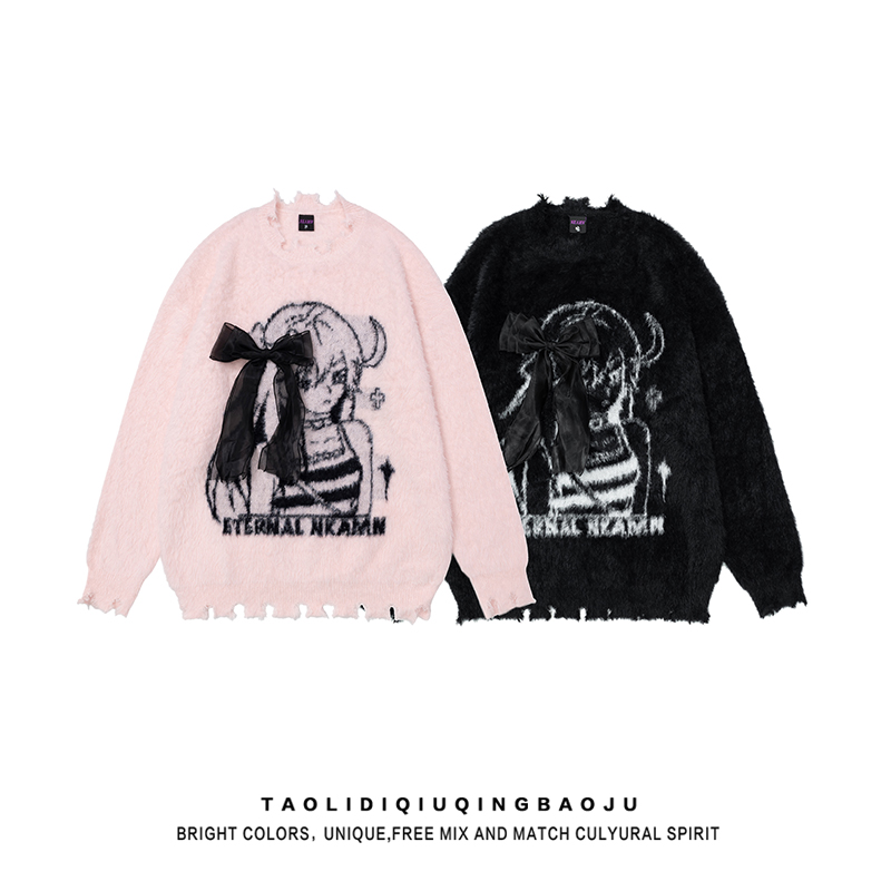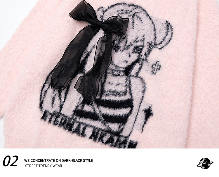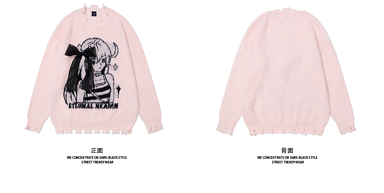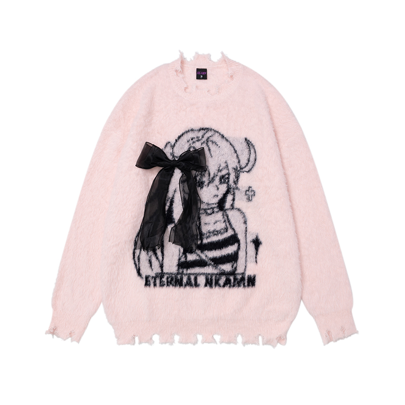 Two-Dimensional Animation Young Adult Wear Pink Sweater Female Winter Comfortable Loose Easiest for Match Niche Style Worn Knitwear