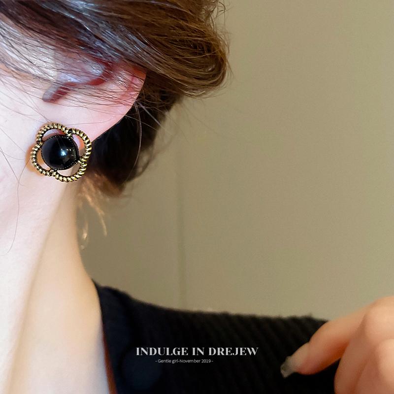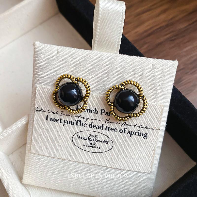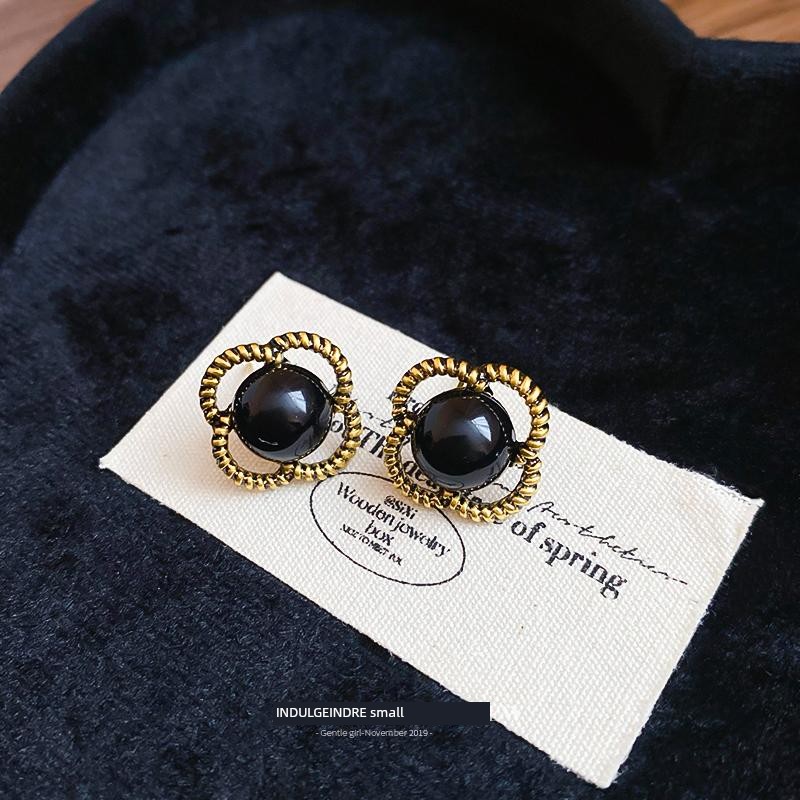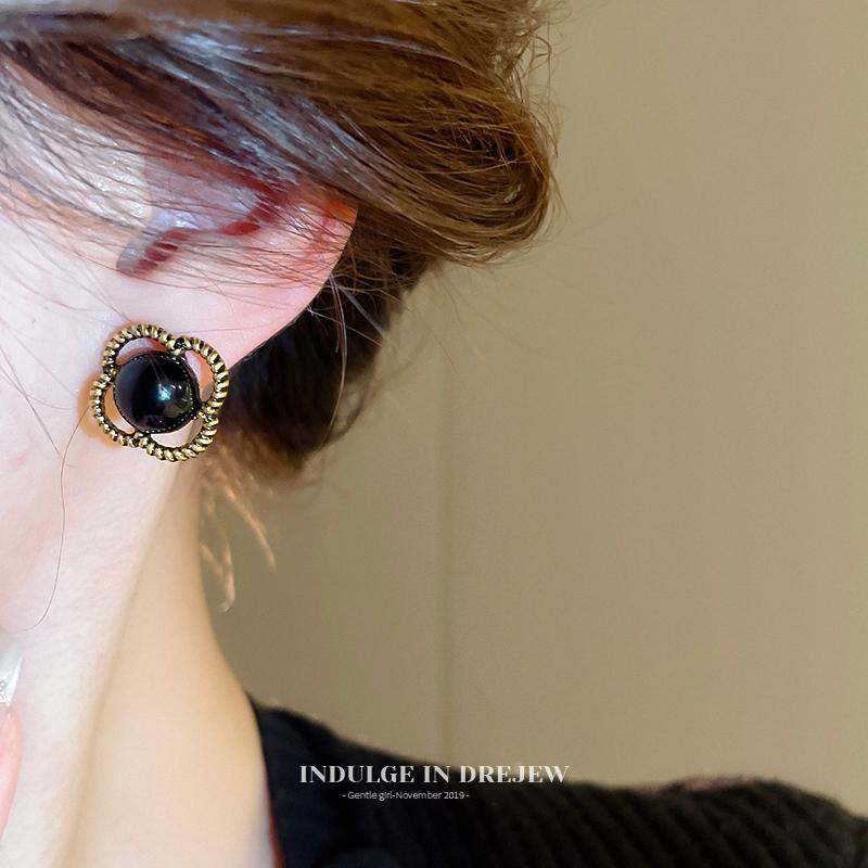 (Two-piece Set) French Retro Black Studs Accessible Luxury Fancy Elegant Generous Earrings 2025 New Earrings