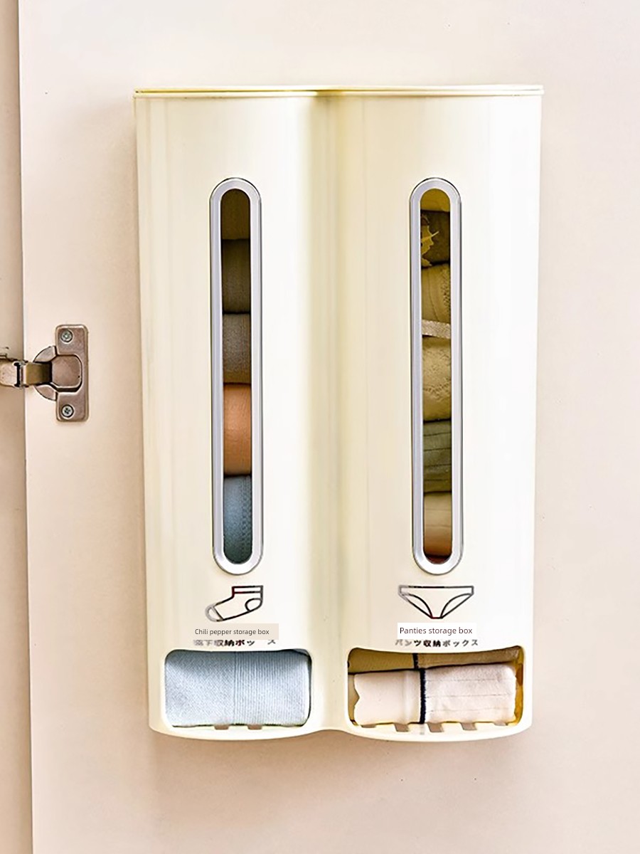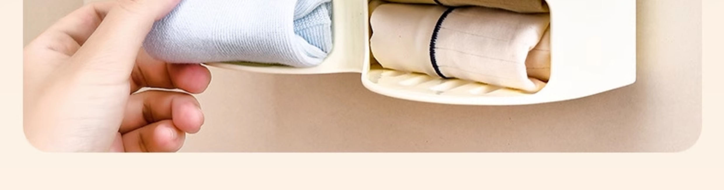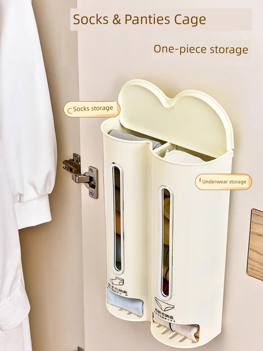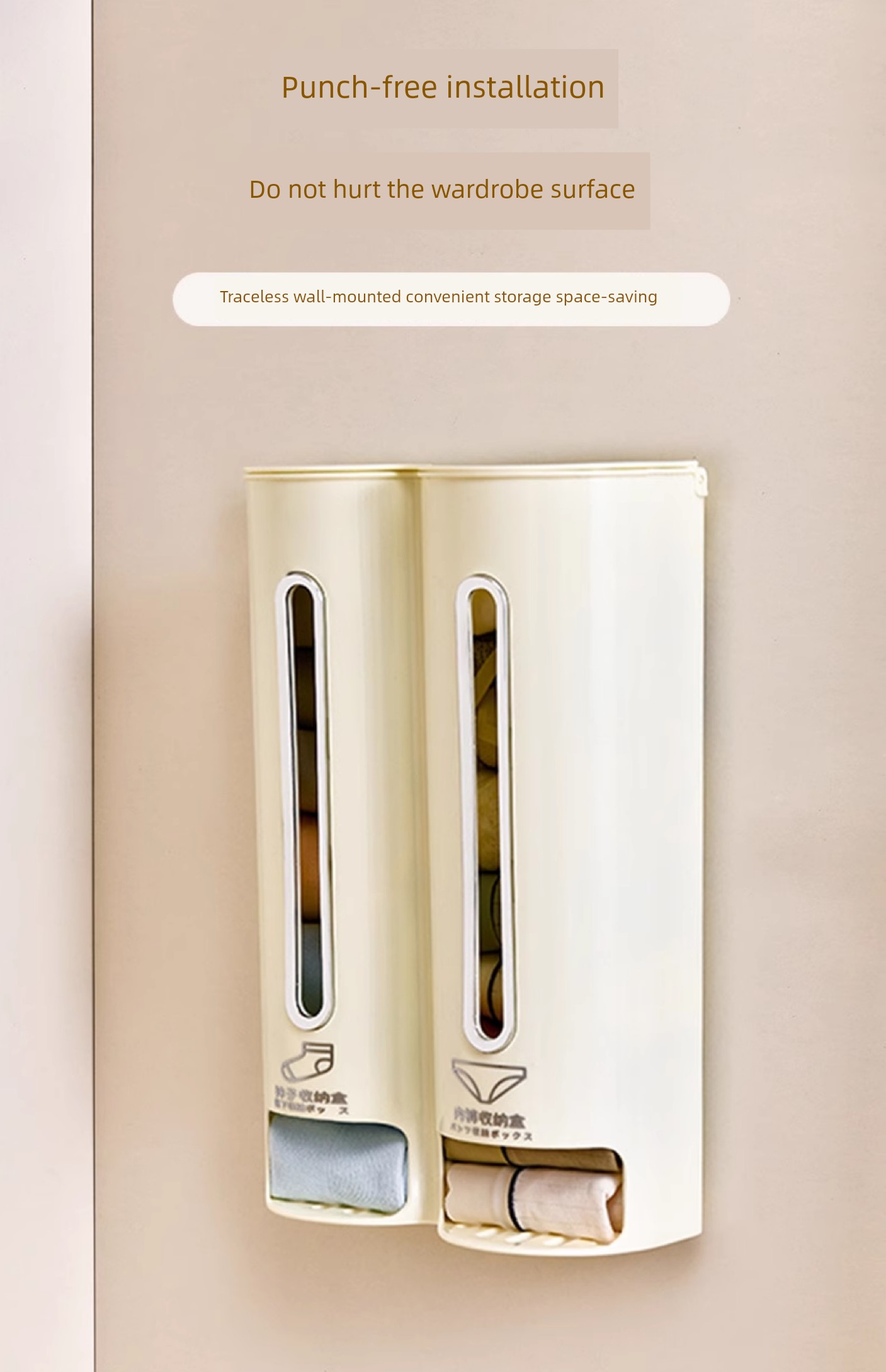 Underwear Socks Two-in-One Storage Box Household Dormitory Punch-free Seamless Wall-mounted Double Grid Classification Storage Artifact
