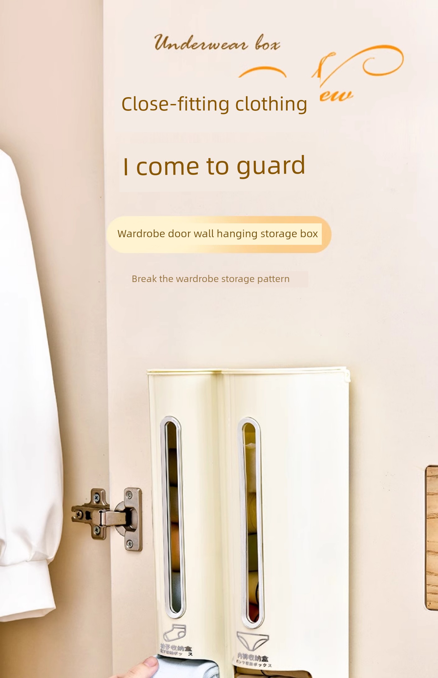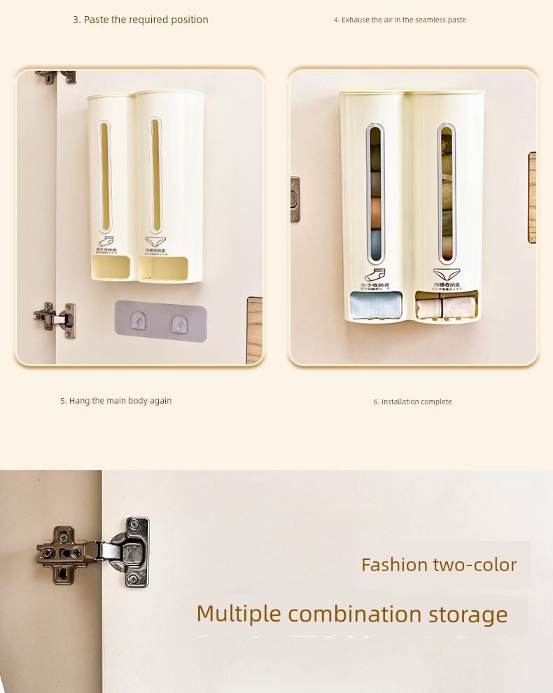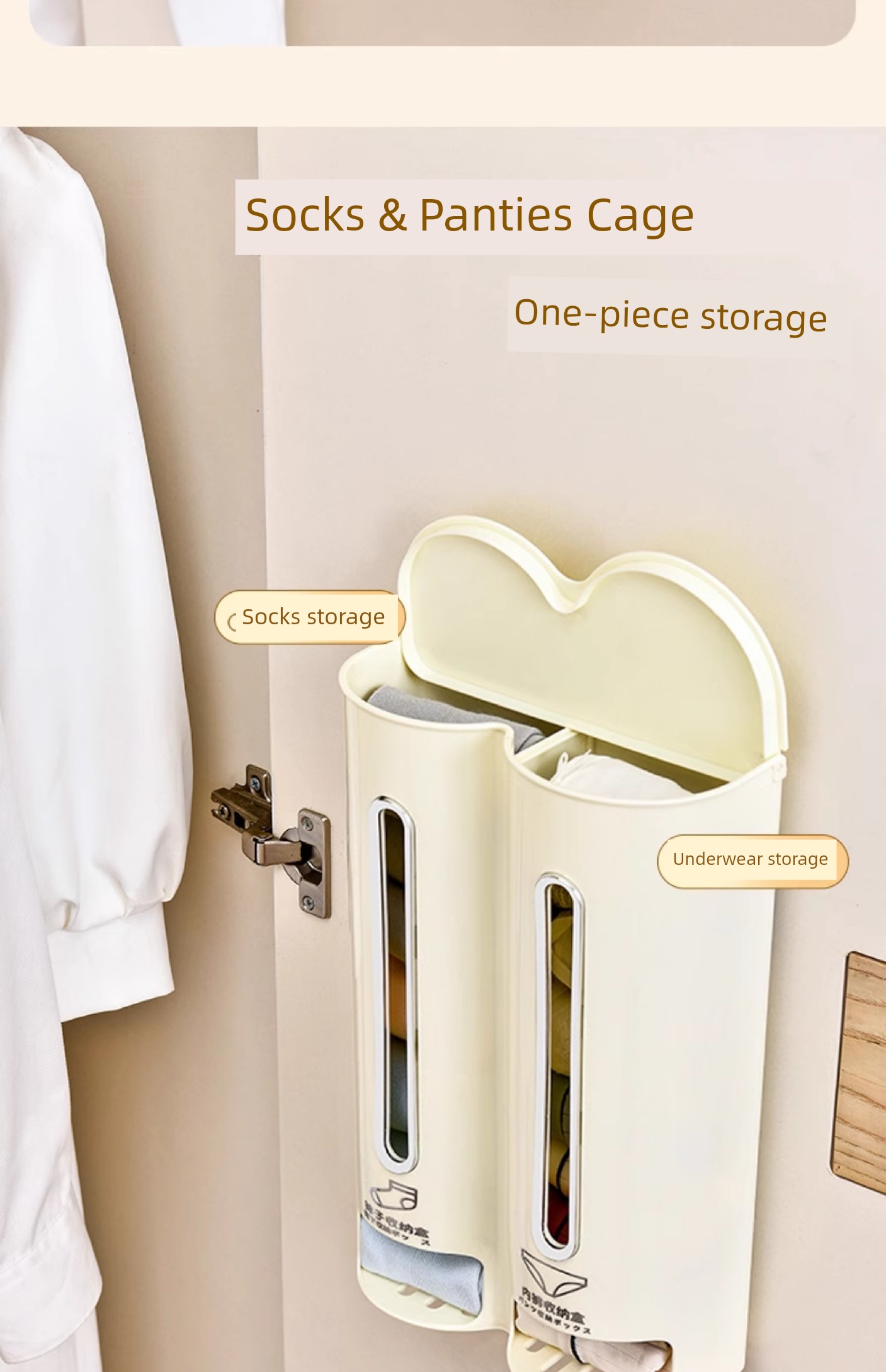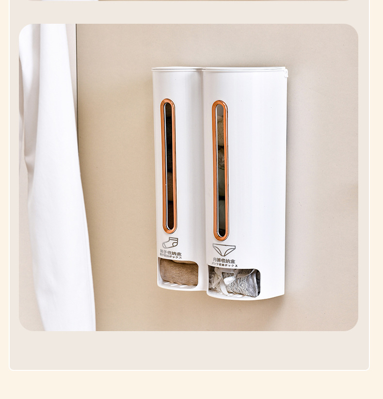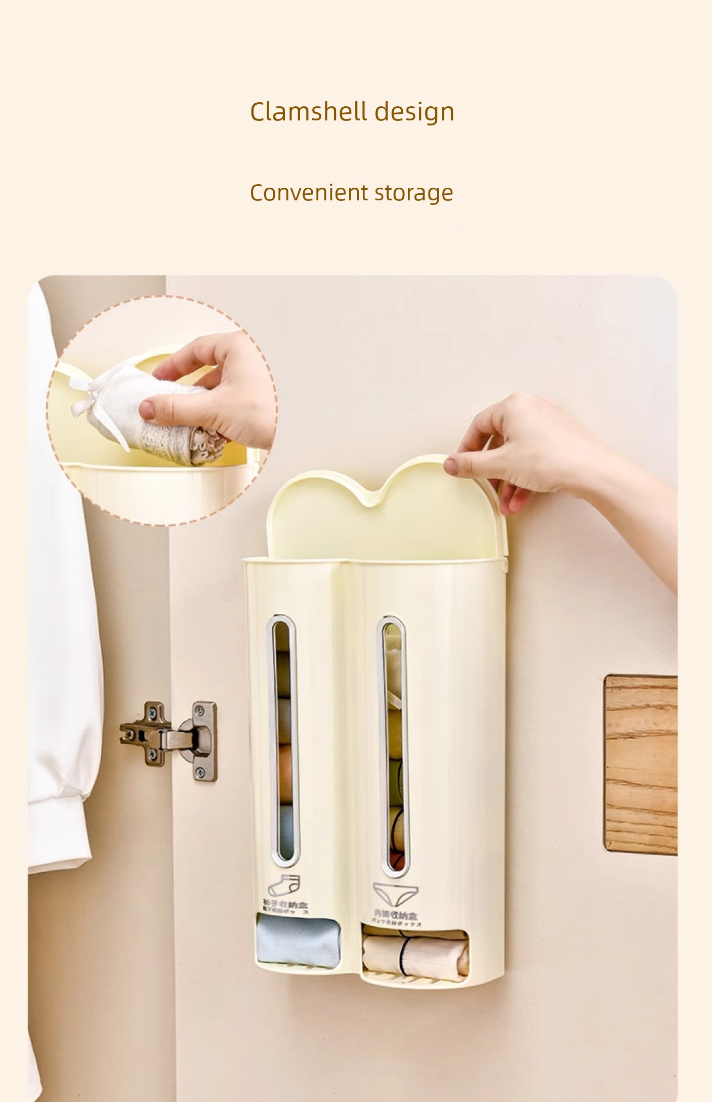 Underwear Socks Two-in-One Storage Box Household Dormitory Punch-free Seamless Wall-mounted Double Grid Classification Storage Artifact