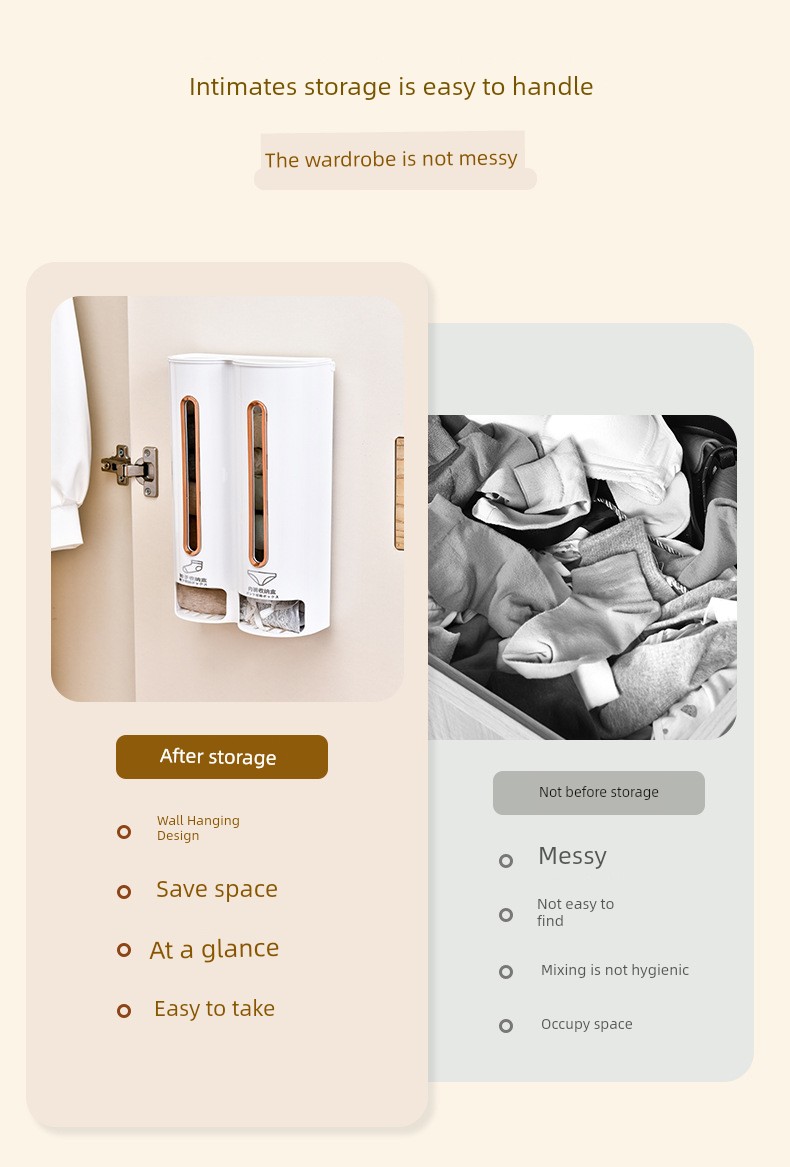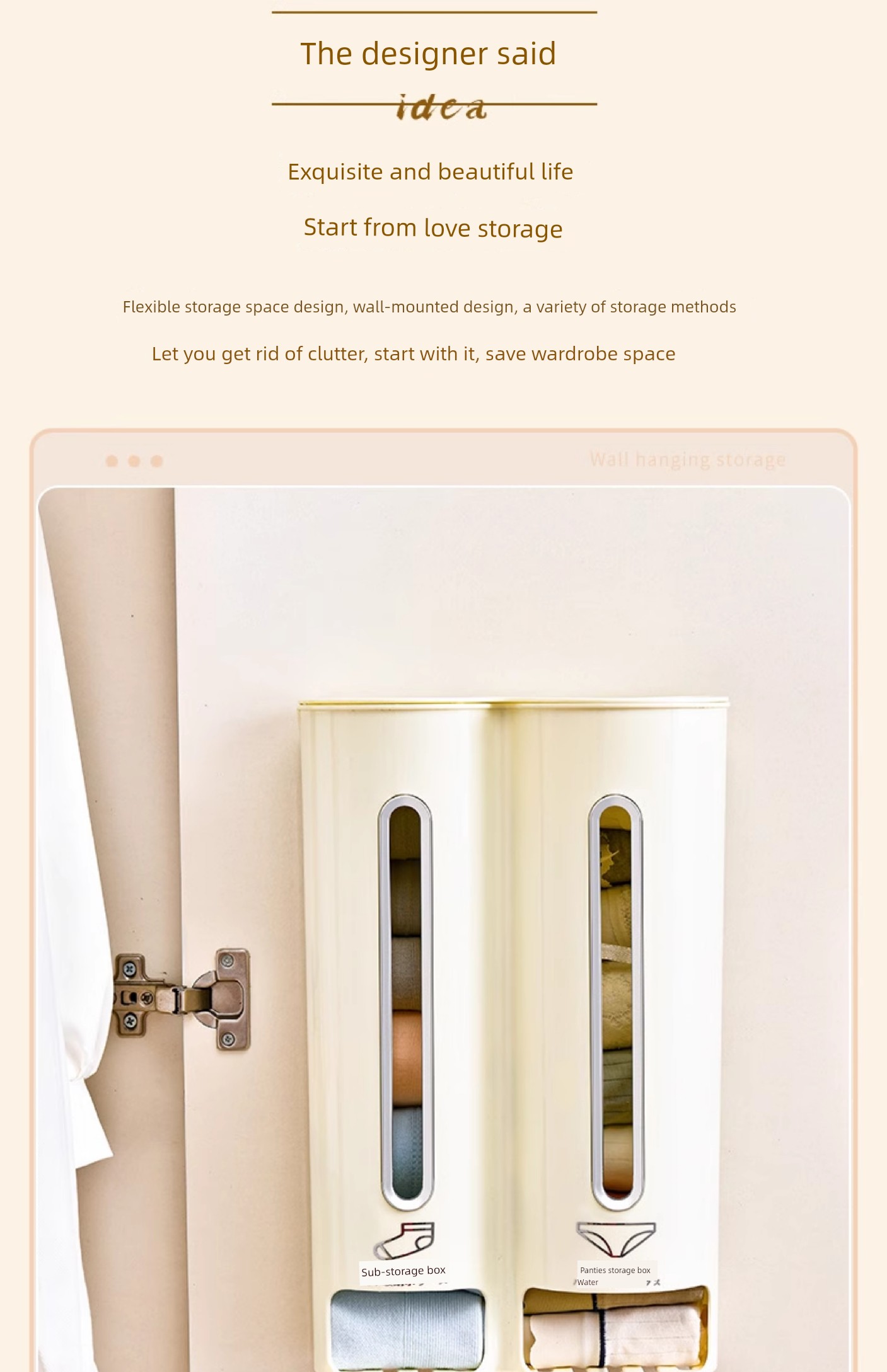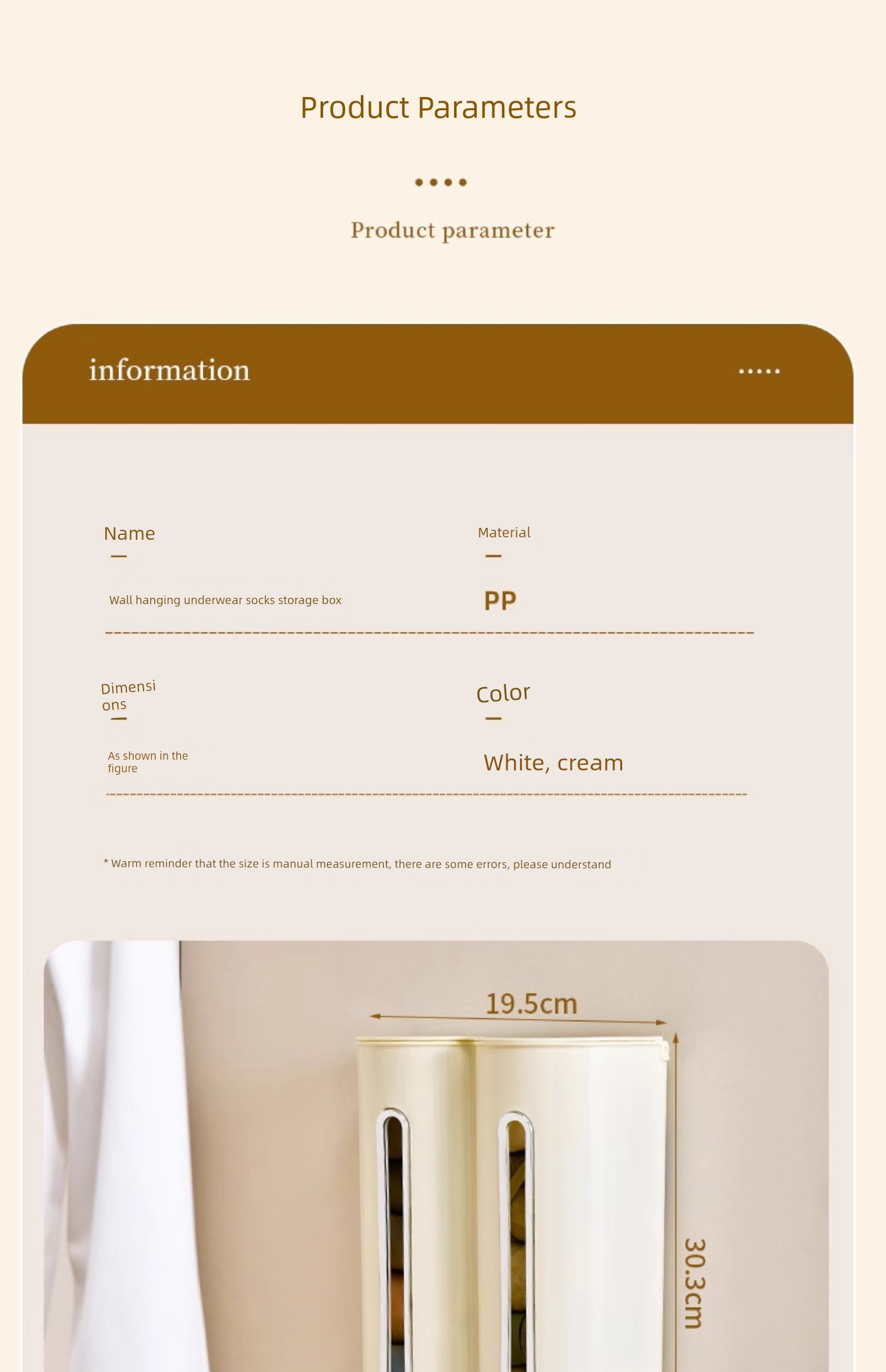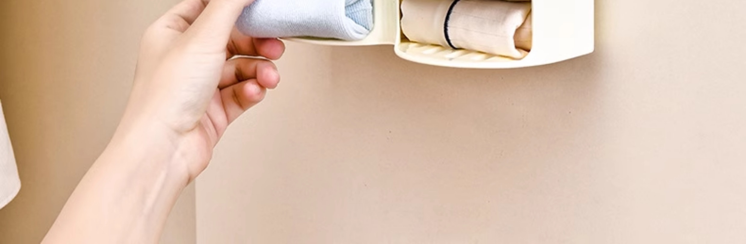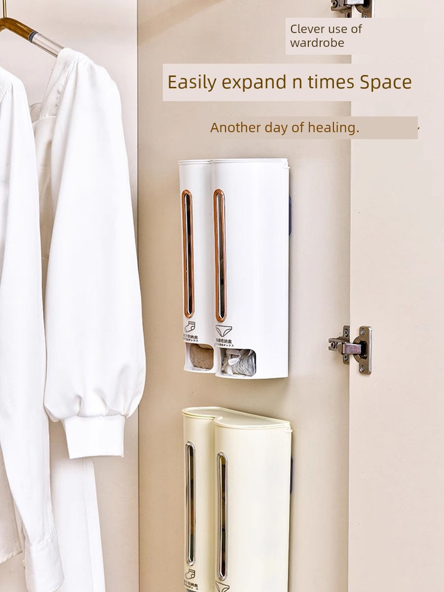Underwear Socks Two-in-One Storage Box Household Dormitory Punch-free Seamless Wall-mounted Double Grid Classification Storage Artifact