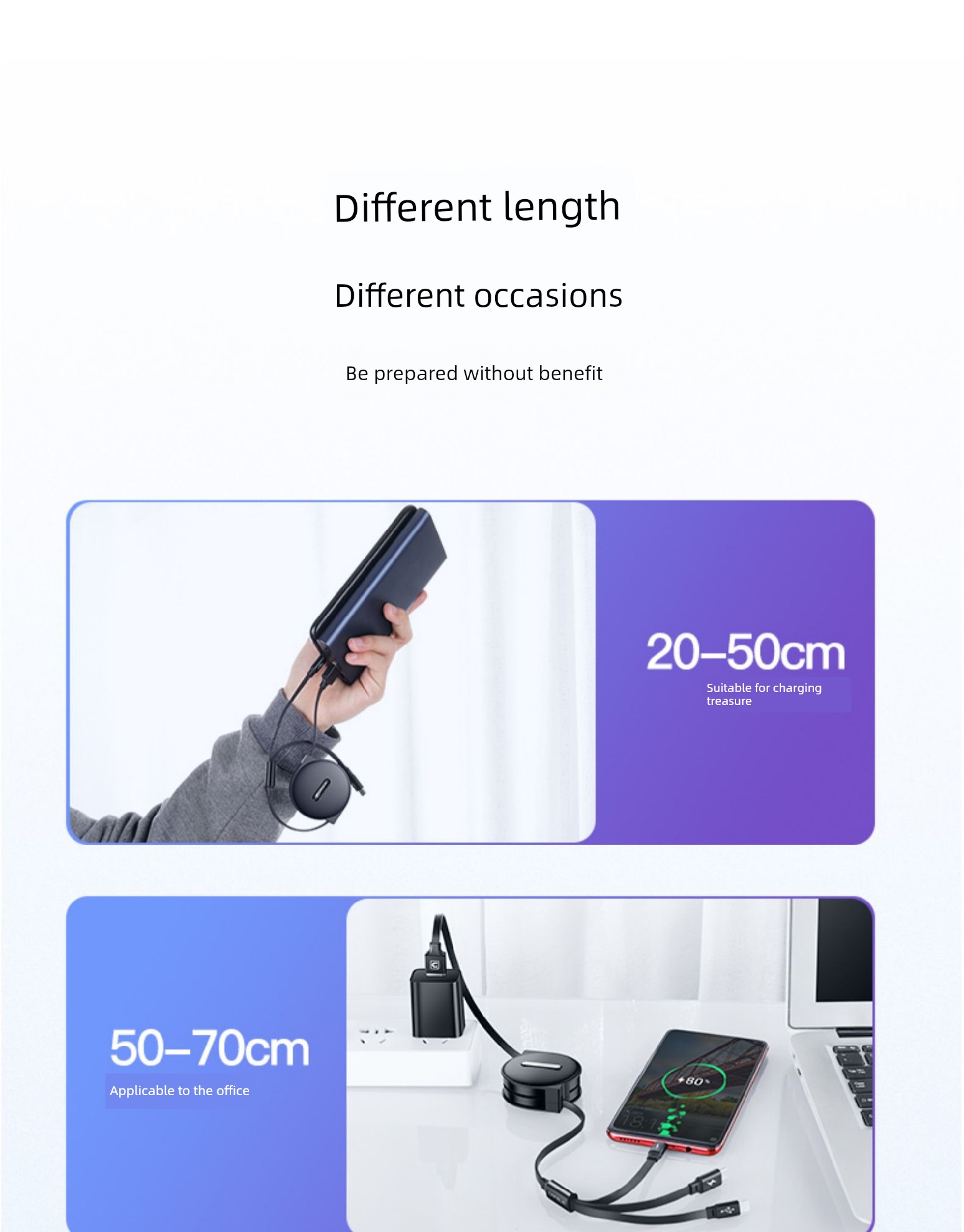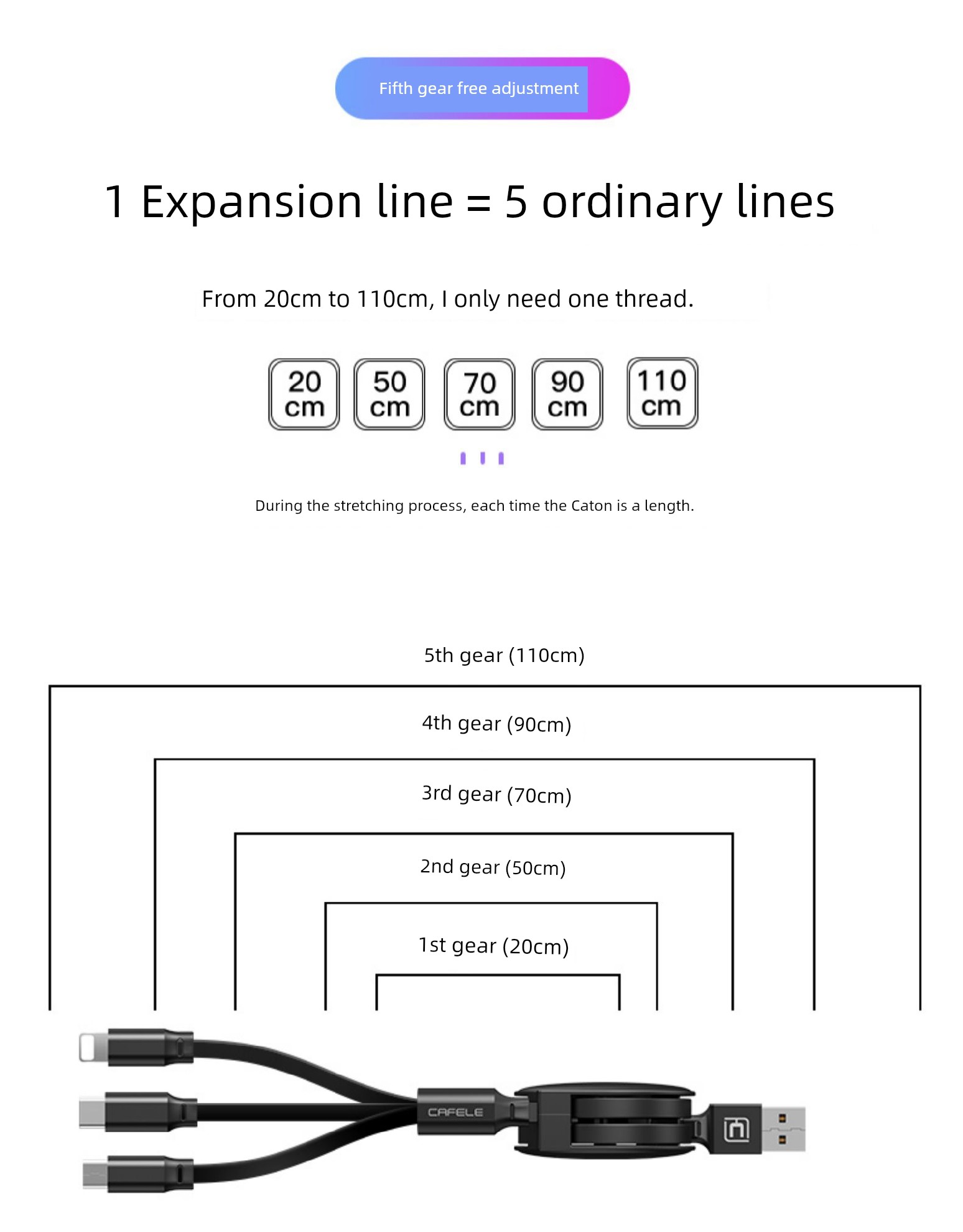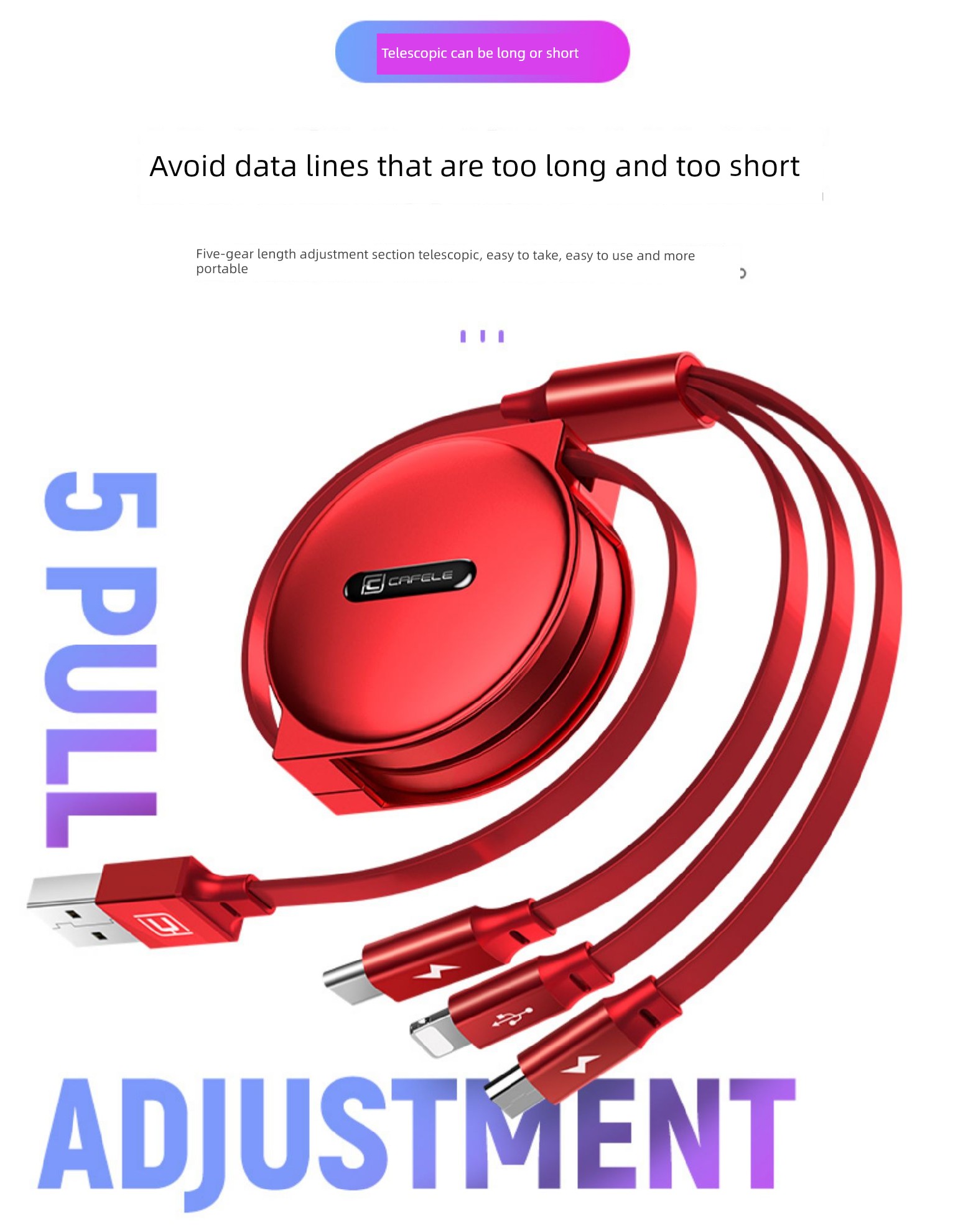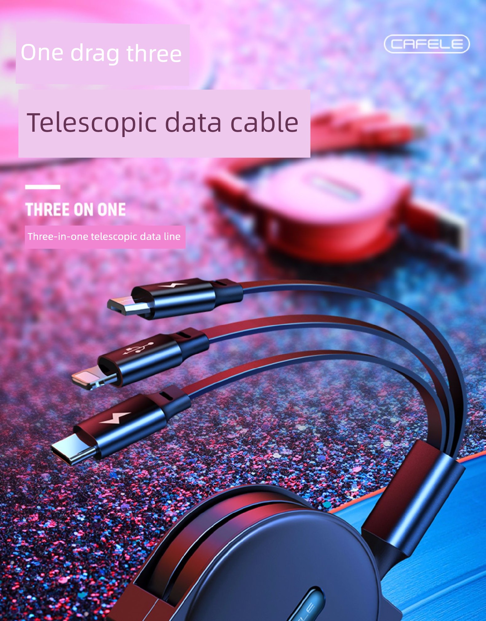 Universal One-to-Three Fast Retractable Multi-Purpose Data Cable