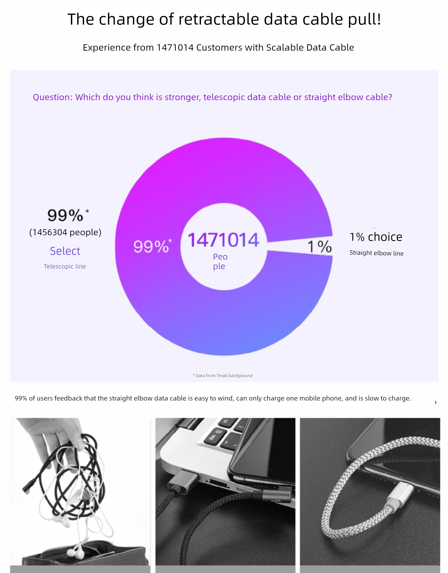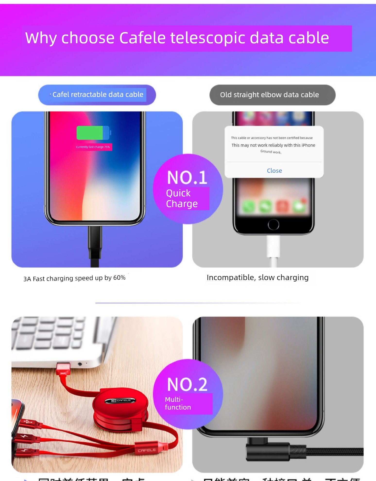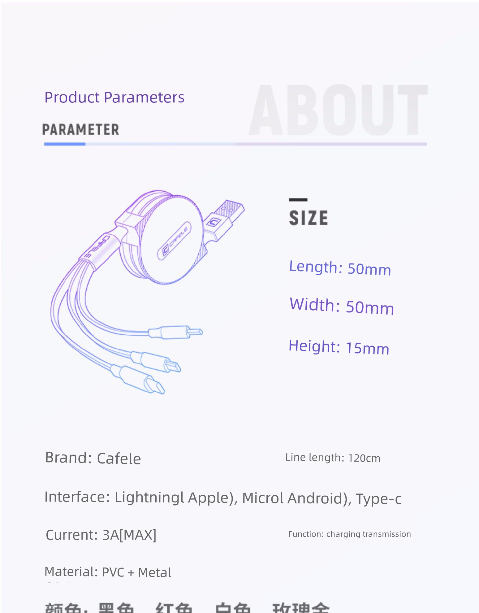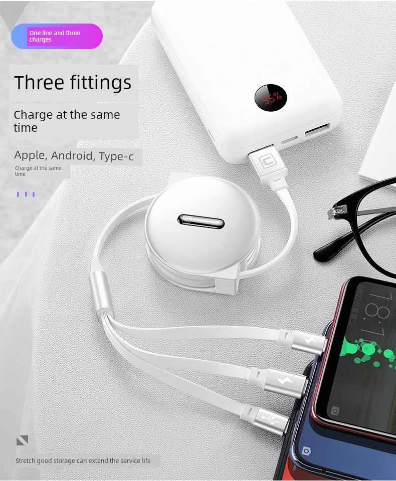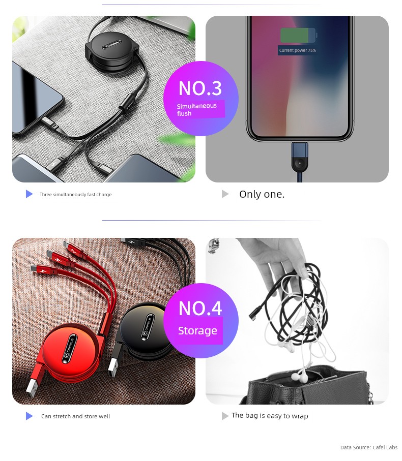 Universal One-to-Three Fast Retractable Multi-Purpose Data Cable