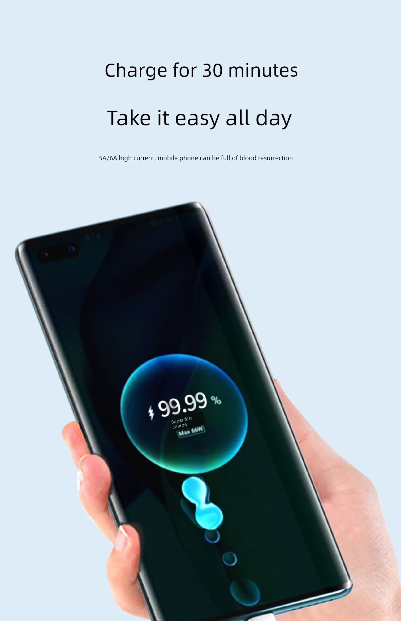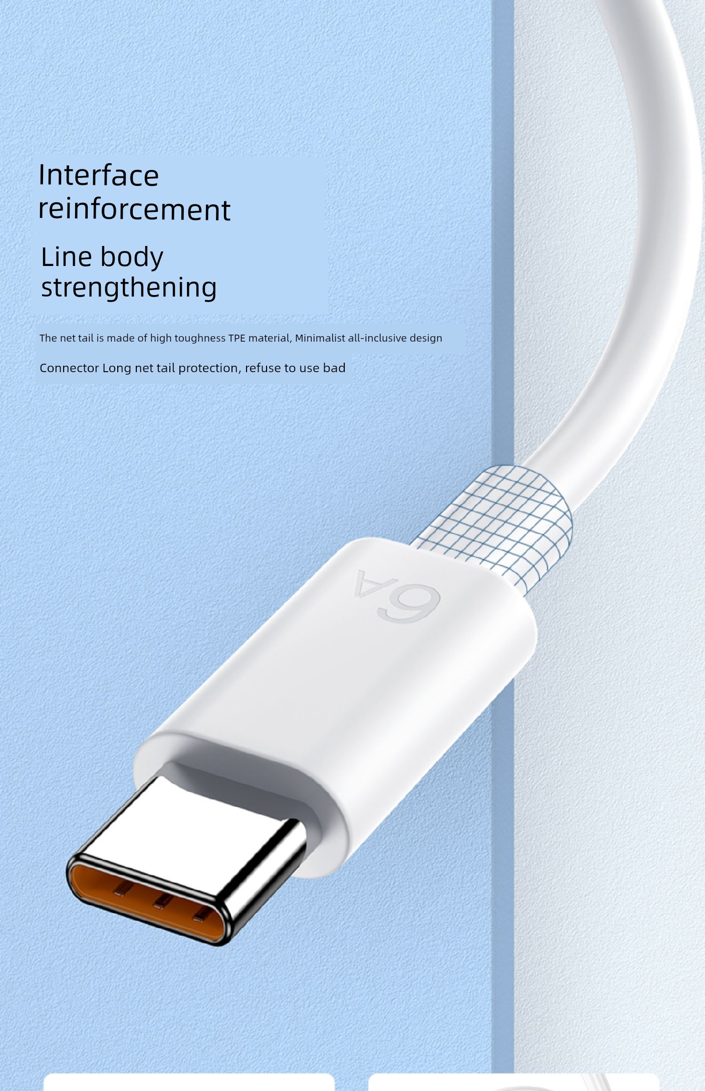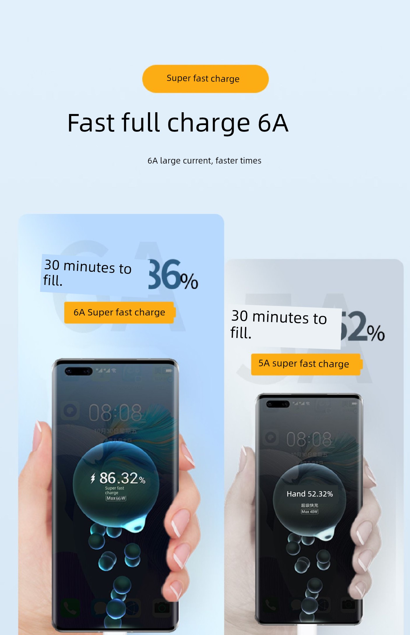 USB Type-C Cable 100W Super Fast Charge 6A for Huawei Mate40pro Mobile Phone 66W Honor 60 Android Typec Charging Cable Tpyec Neutral Nova7 Car Long