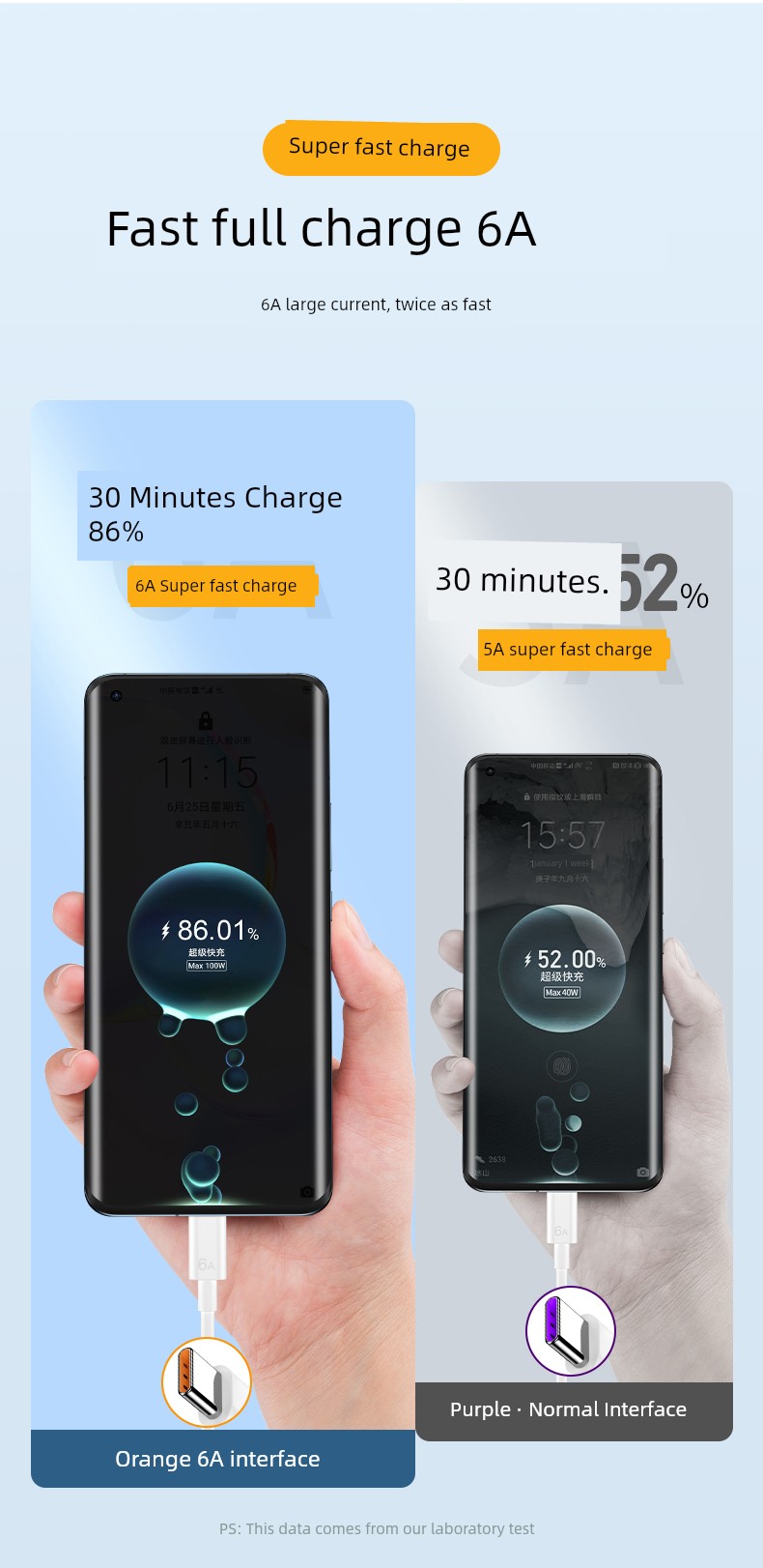 USB Type-C Cable 5A Super Fast Charge 6A Genuine Goods BS for Huawei P20/P30/Mate40pro Glory TPC Long 2 M Tpyec Charger Nova8 Android Phone 66W