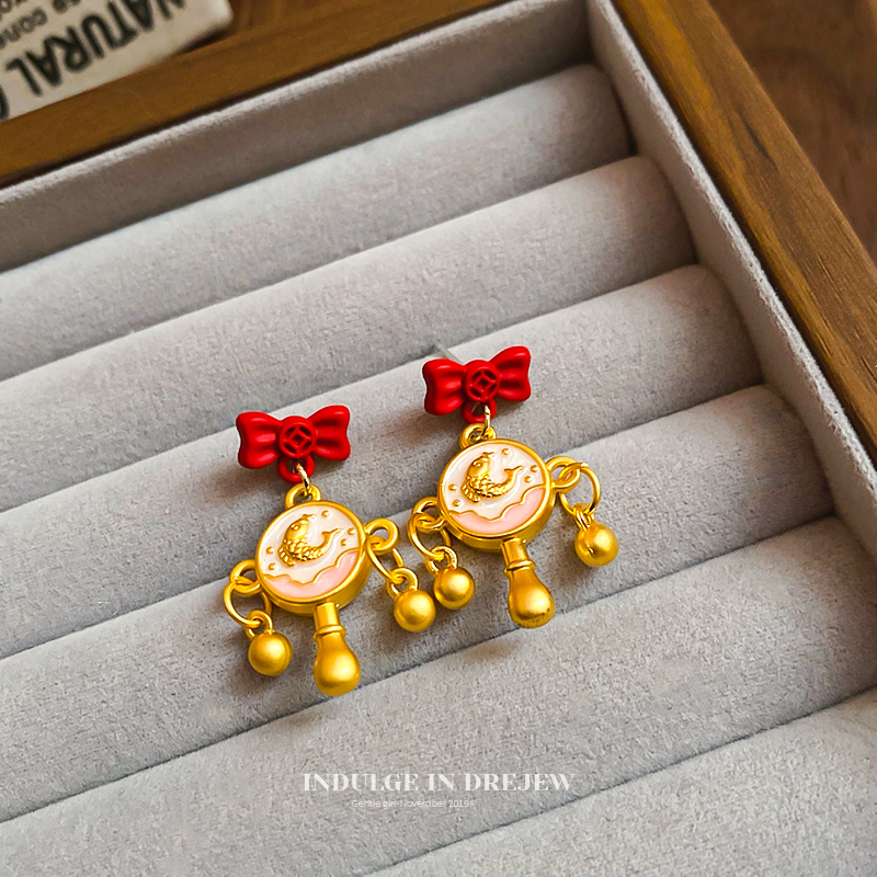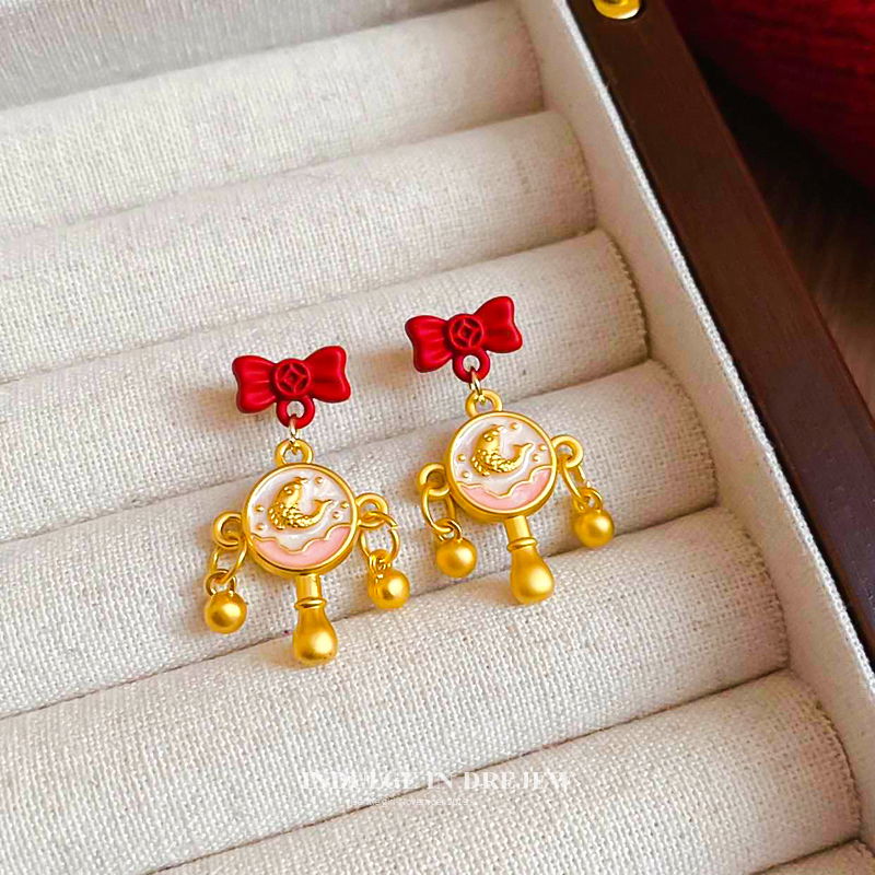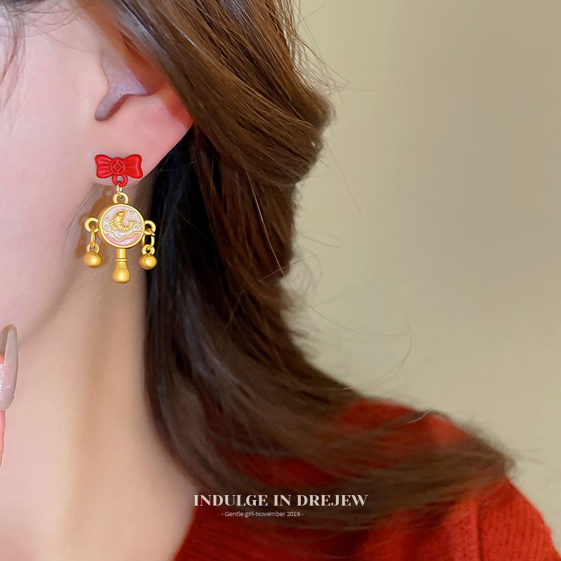 Vintage Bow Carp Rattle Drum Ear Studs Accessible Luxury Fancy Elegant Earrings 2025 New Arrival Best Selling Earrings for Women