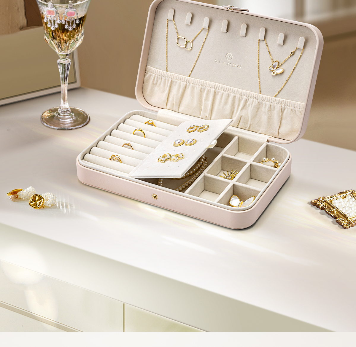 Vlando Weilanduo 2025 New Arrival Jewelry Box Large Capacity Necklace Earrings Jewelry Storage Box Gift Exquisite