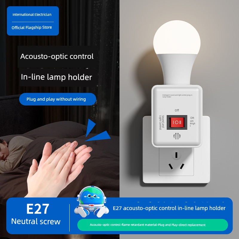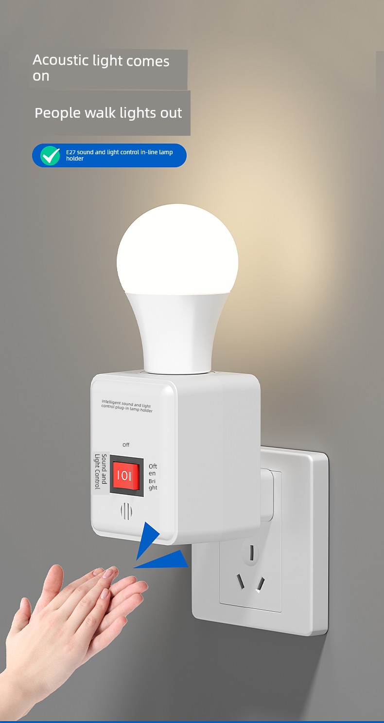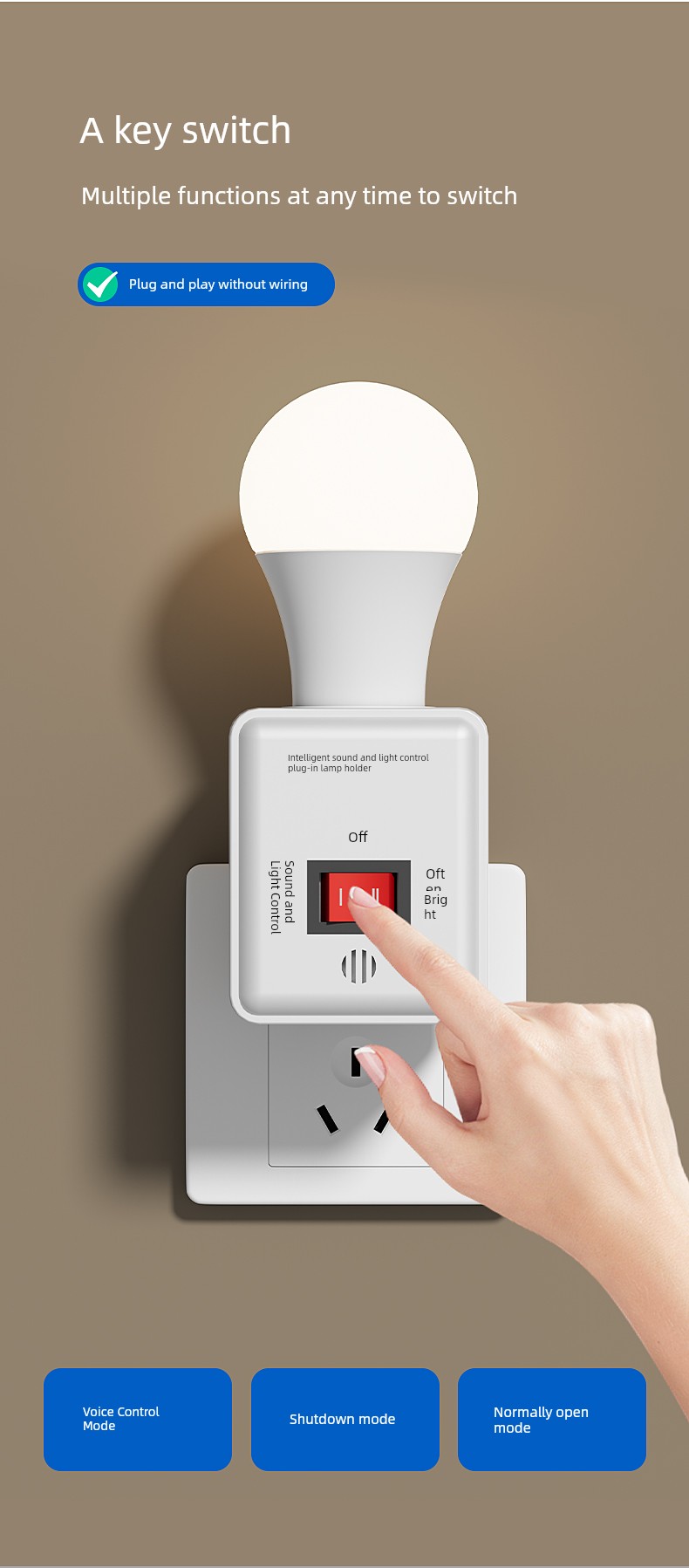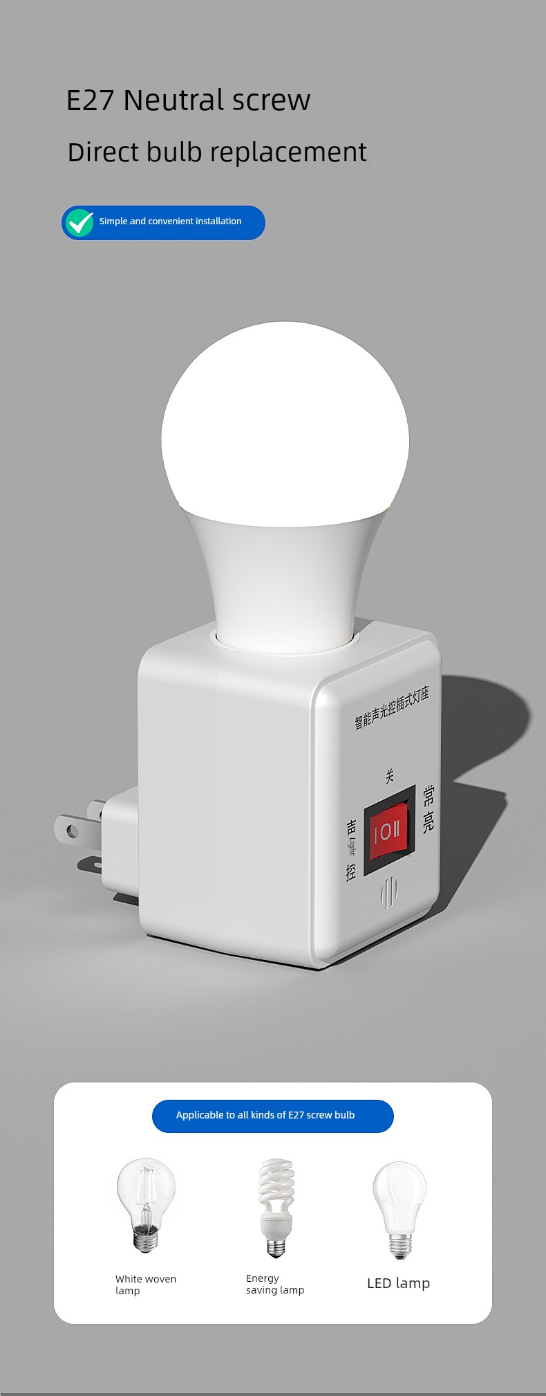Voice Control Induction Lamp Automatic Intelligent Small Night Lamp Plug-in Type 220V Human Body Sensor Lamp Holder Induction Lamp-Seat Socket