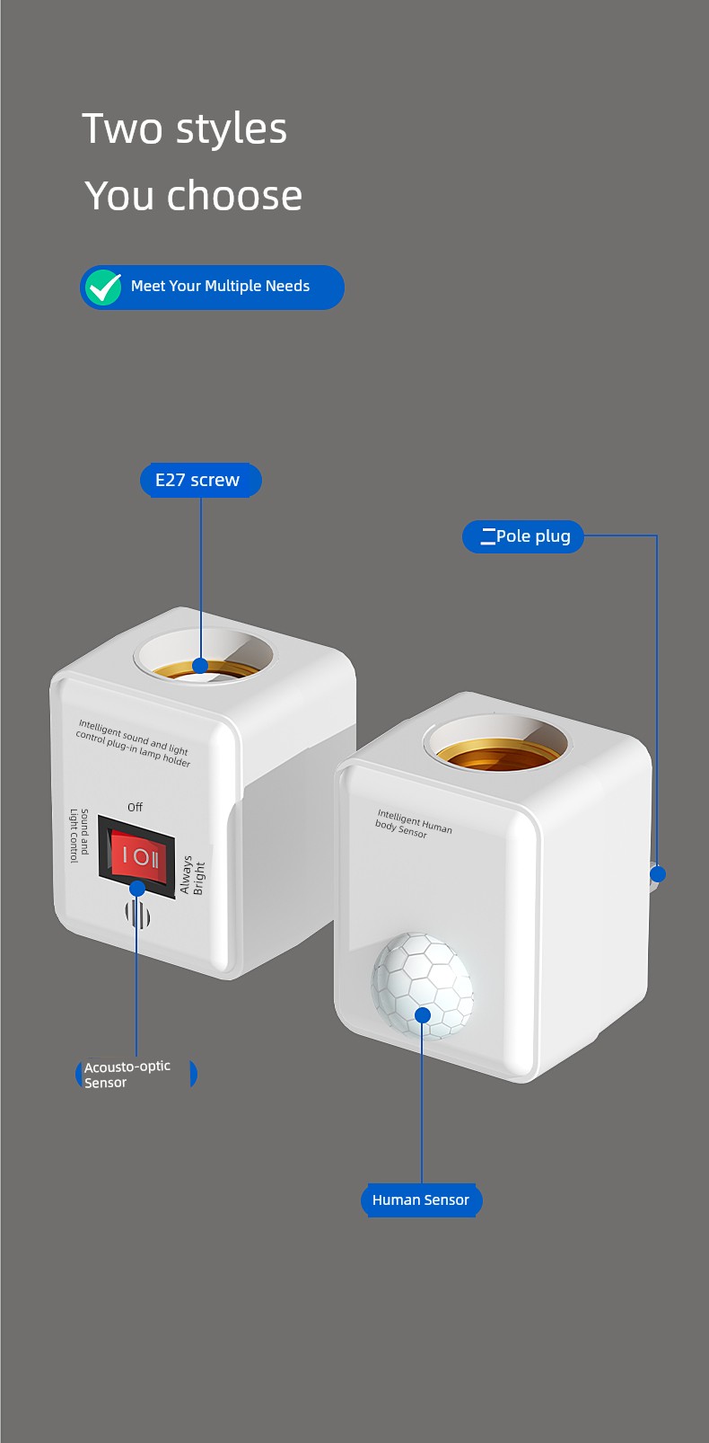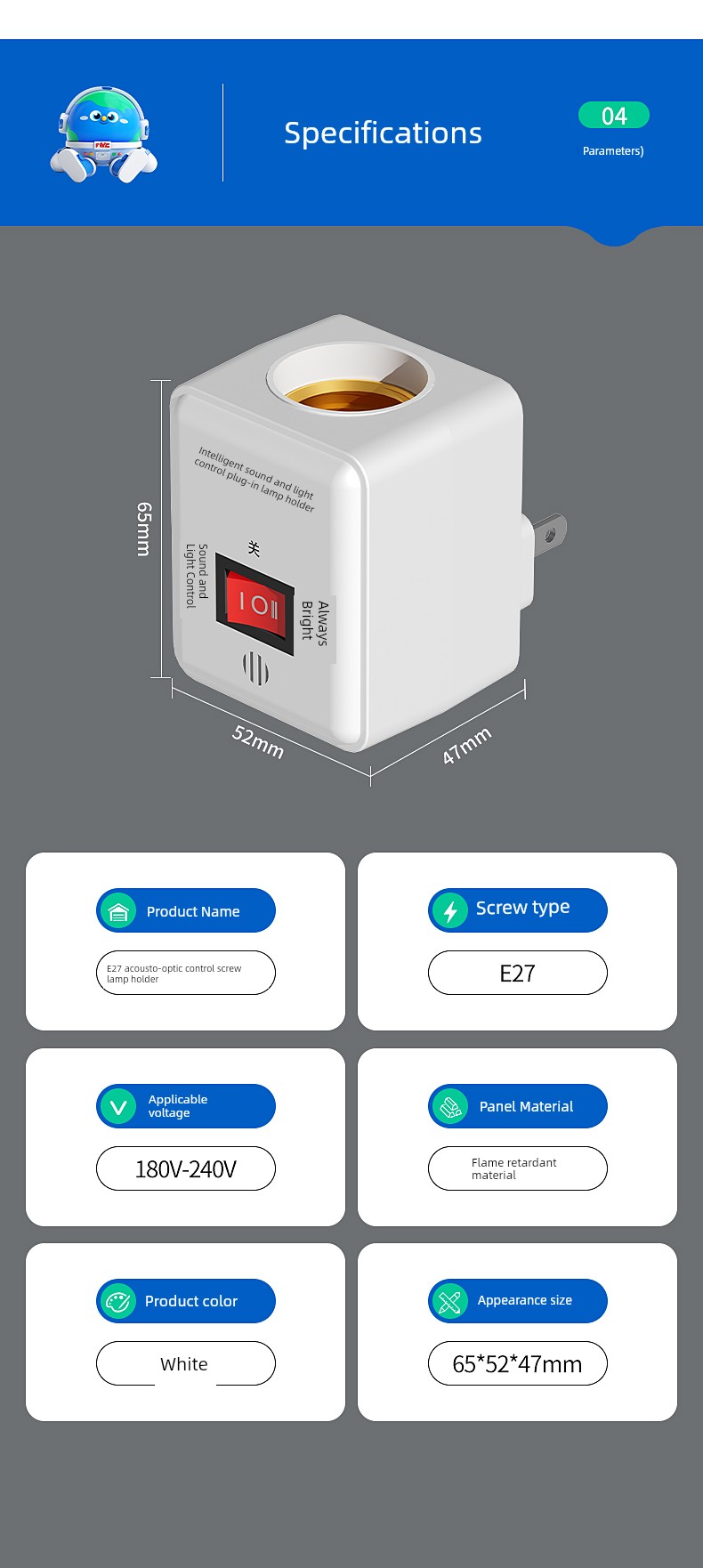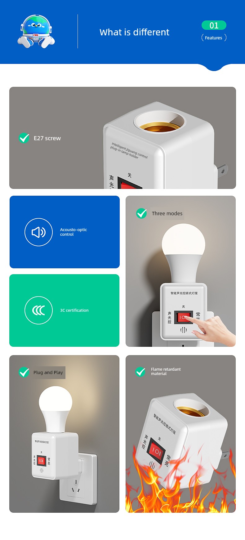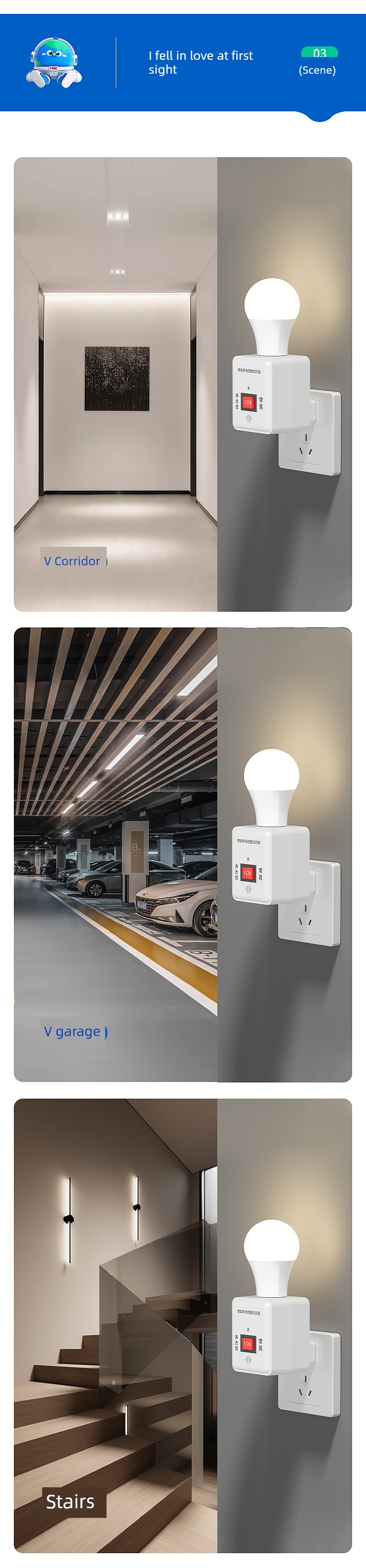 Voice Control Induction Lamp Automatic Intelligent Small Night Lamp Plug-in Type 220V Human Body Sensor Lamp Holder Induction Lamp-Seat Socket