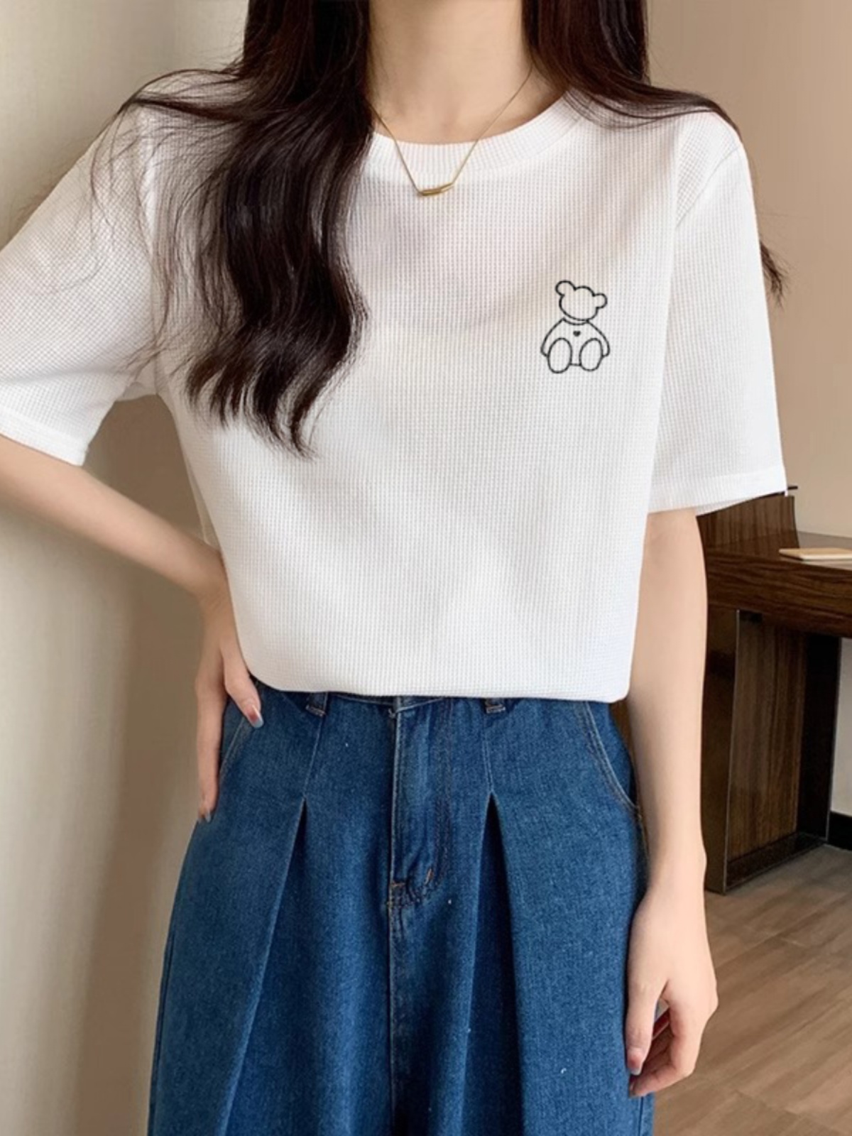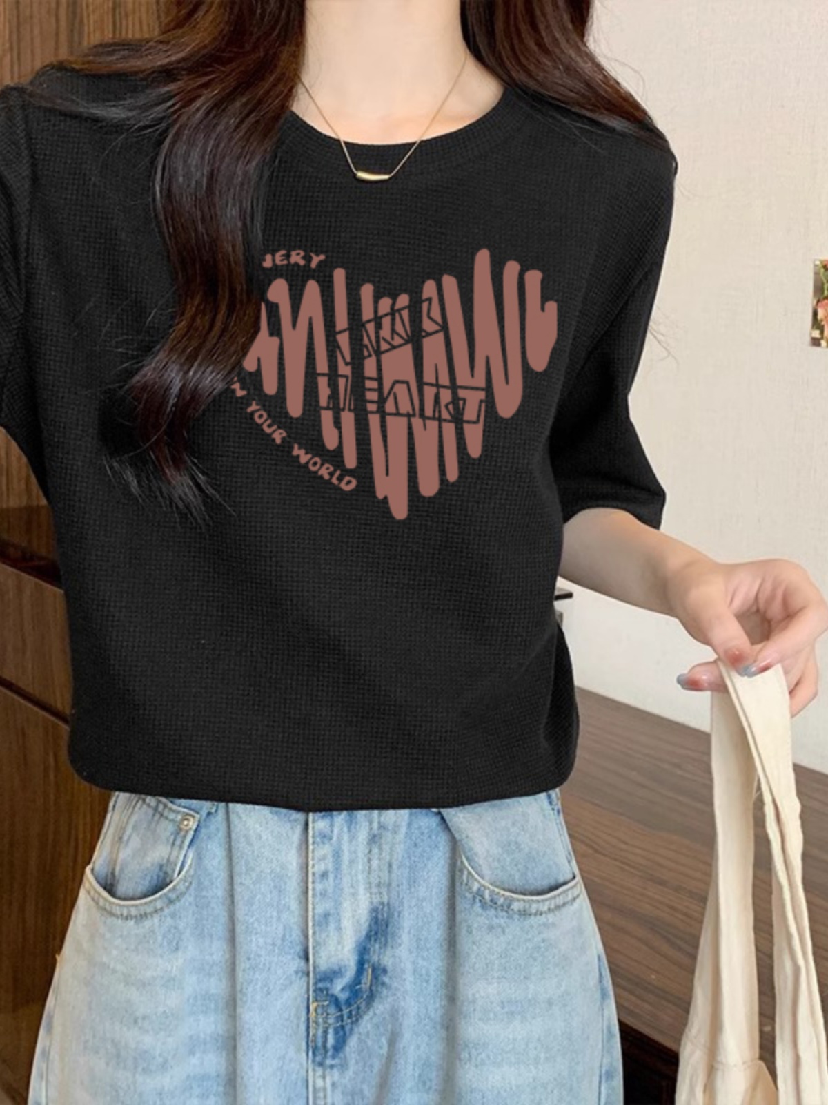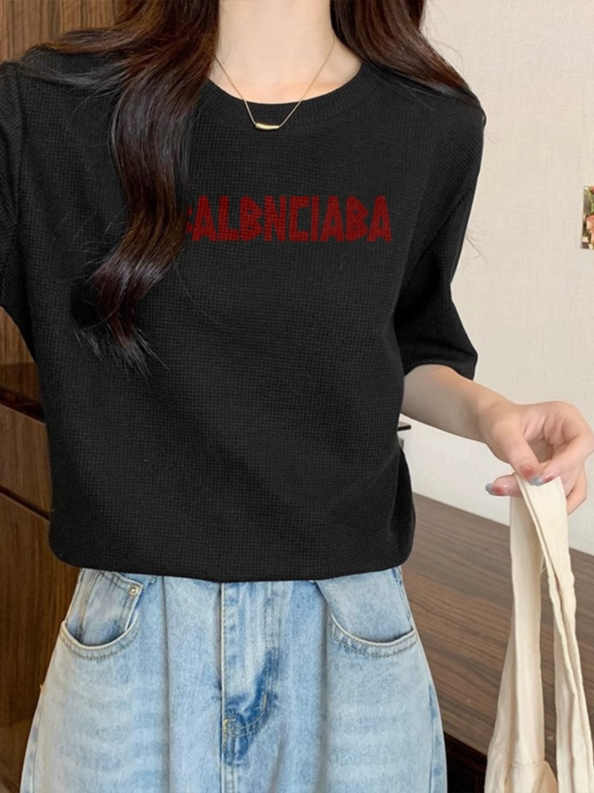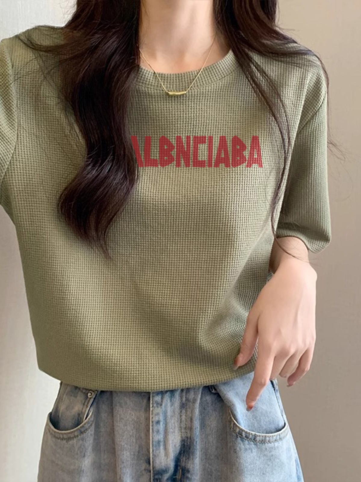 Waffle Short Sleeve T-shirt for Women 2025 Summer New Arrival Loose Slimming Laid-Back Style Plus Size Plus Size Ladies Half Sleeve Top Clothes