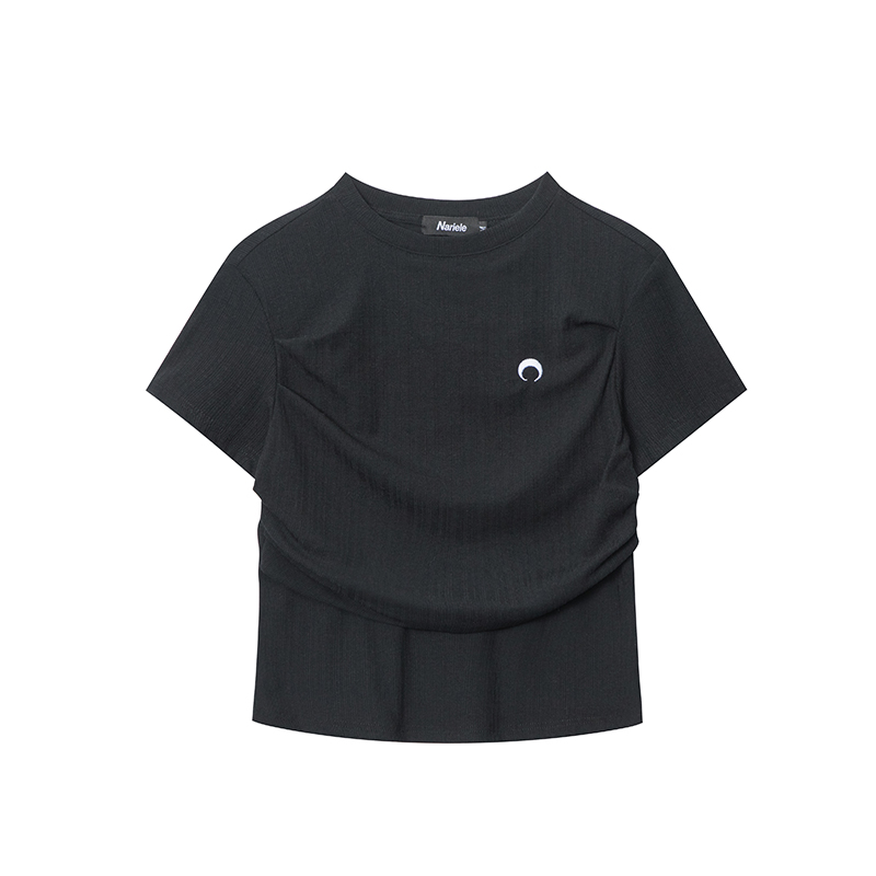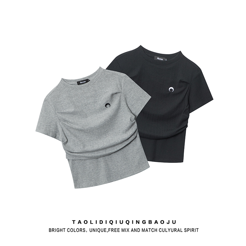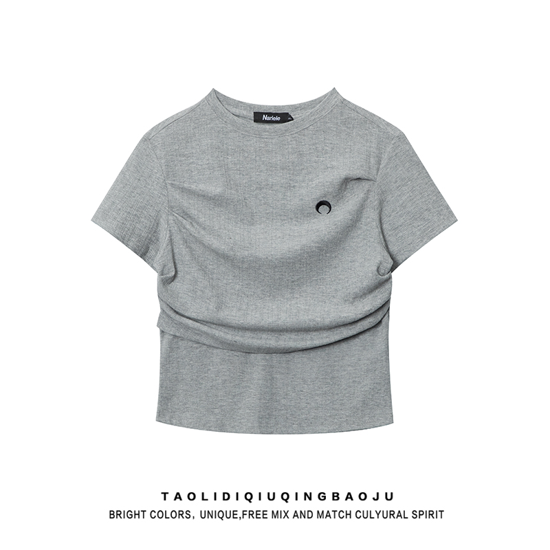 Waist-Tight Pleating Niche Style Sweet Sexy Silm Short-Sleeved T-shirt