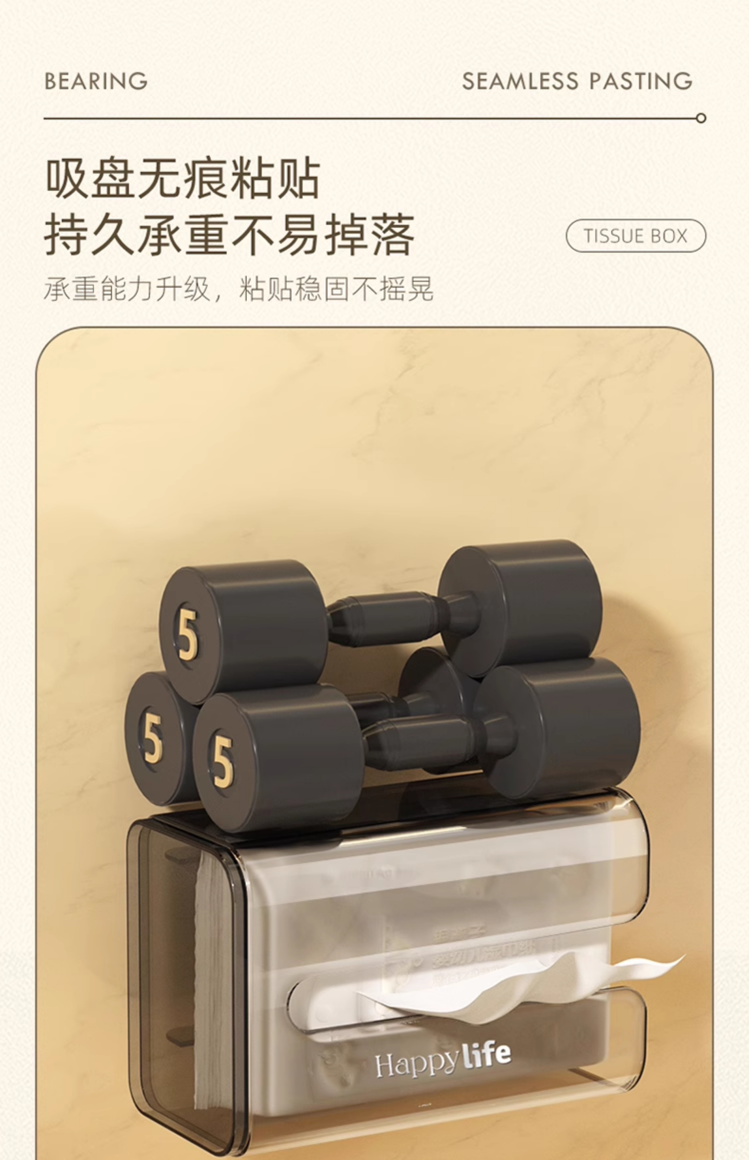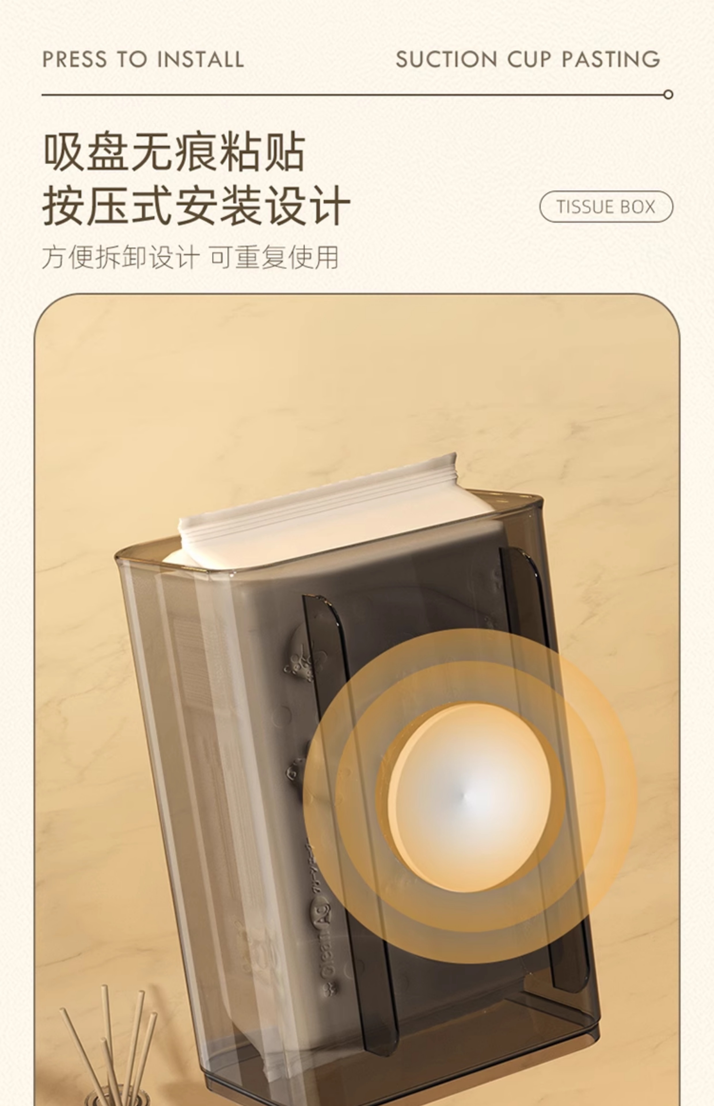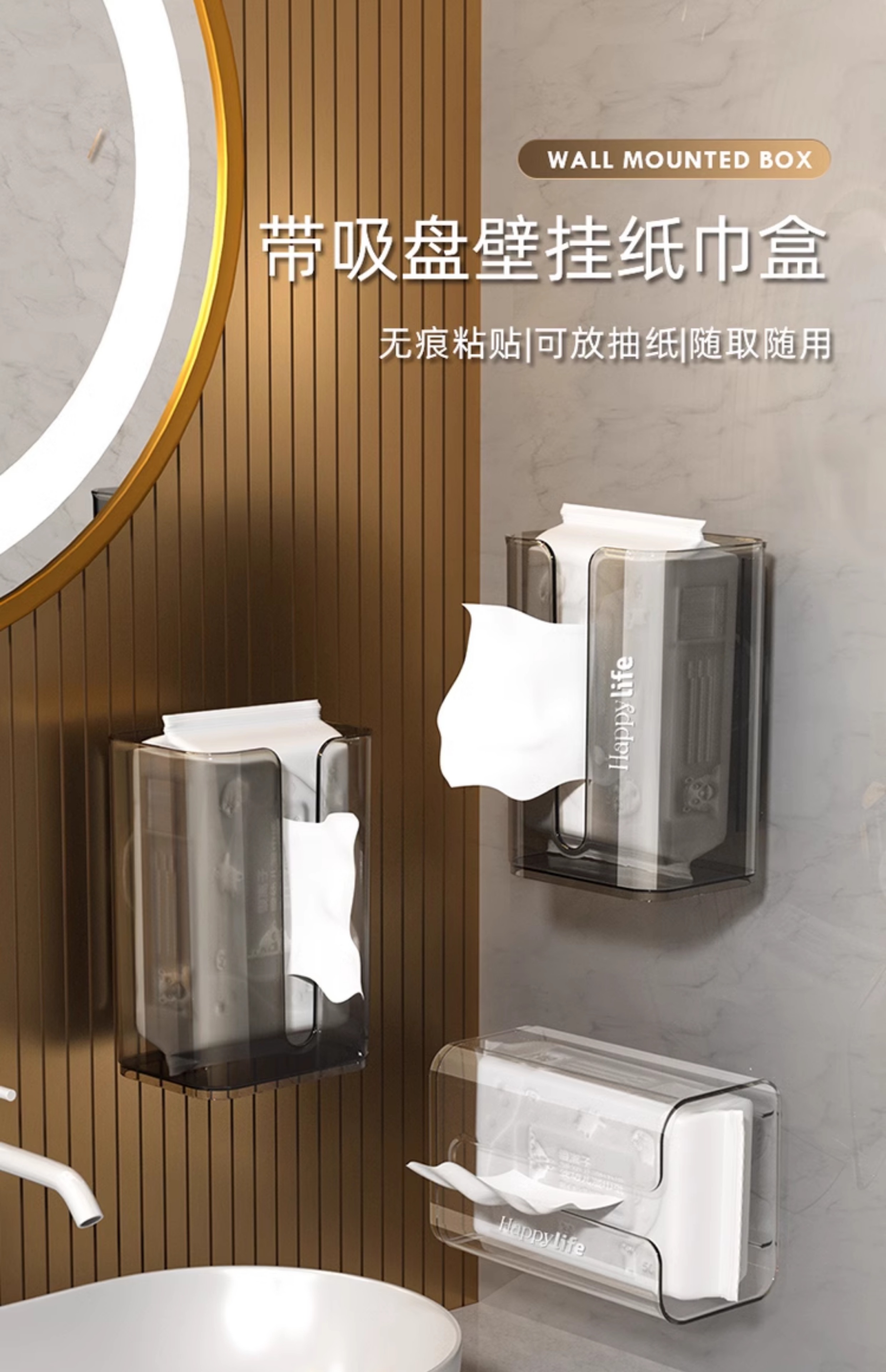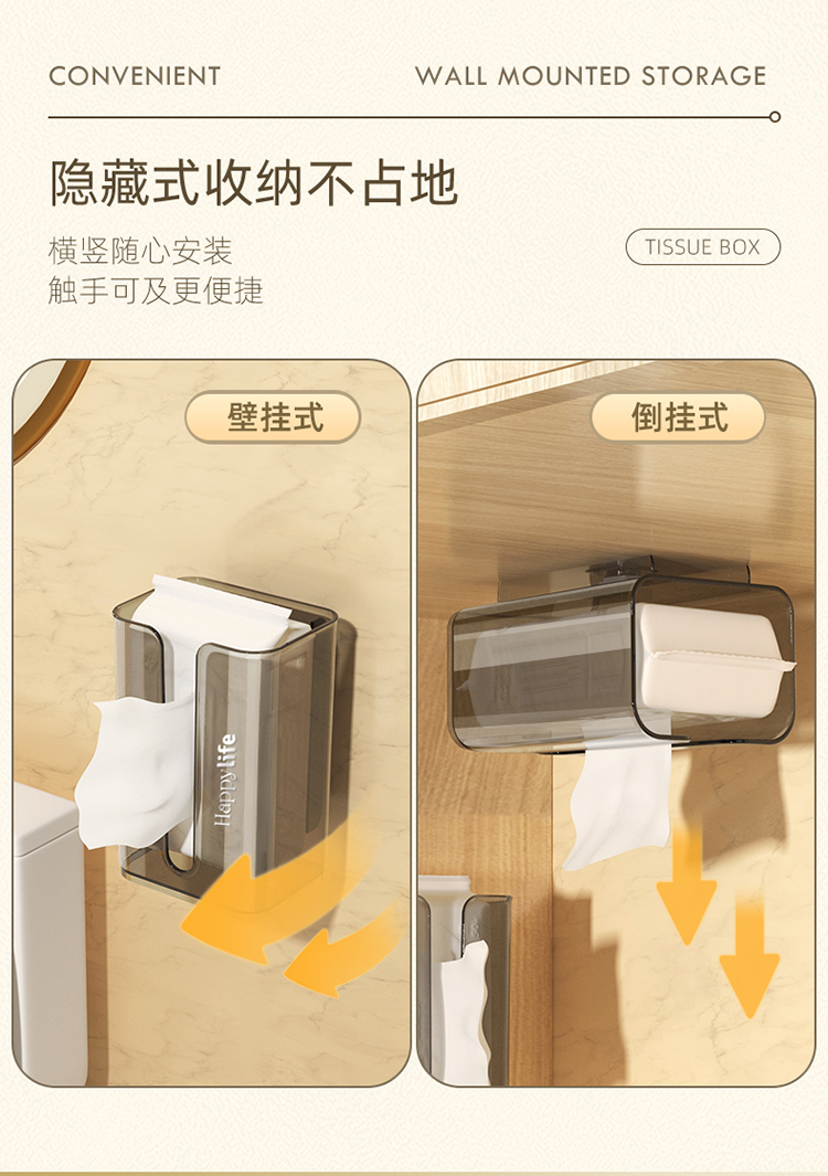Wall-Mounted Tissue Box with Suction Cup Toilet For Home Kitchen Facial Tissue Face Cloth Storage Bathroom Toilet Paper Box