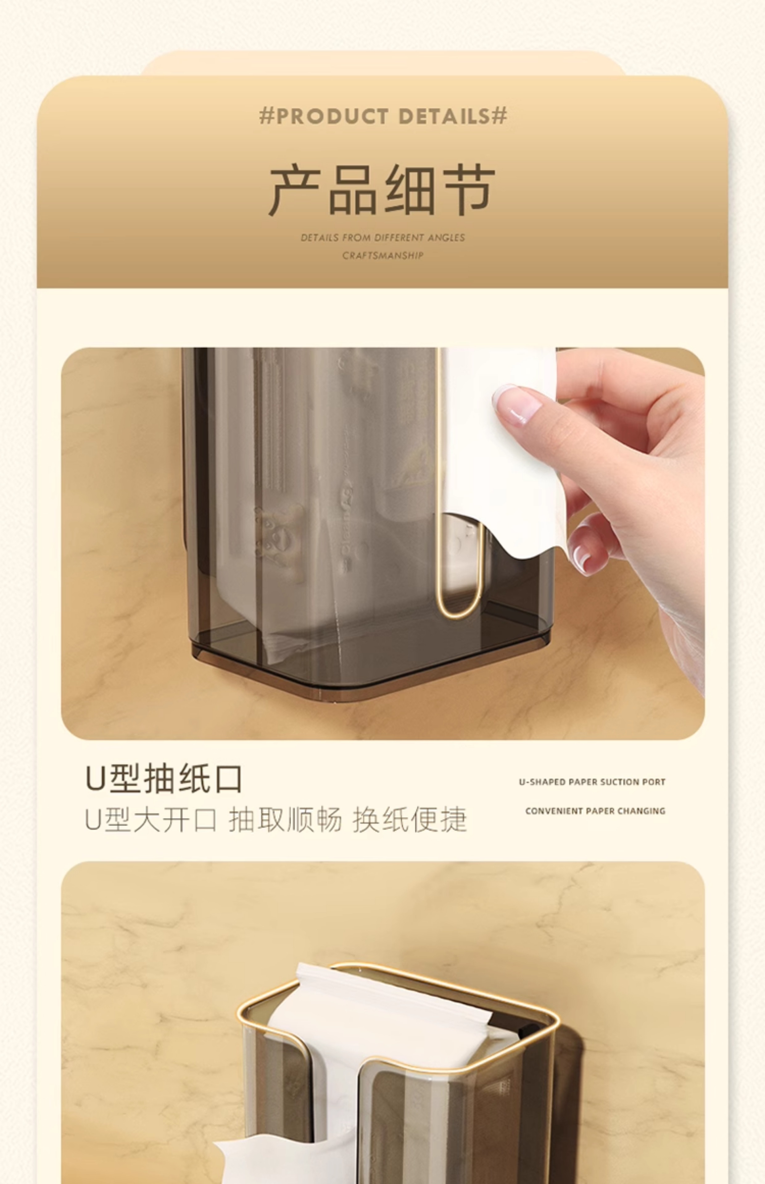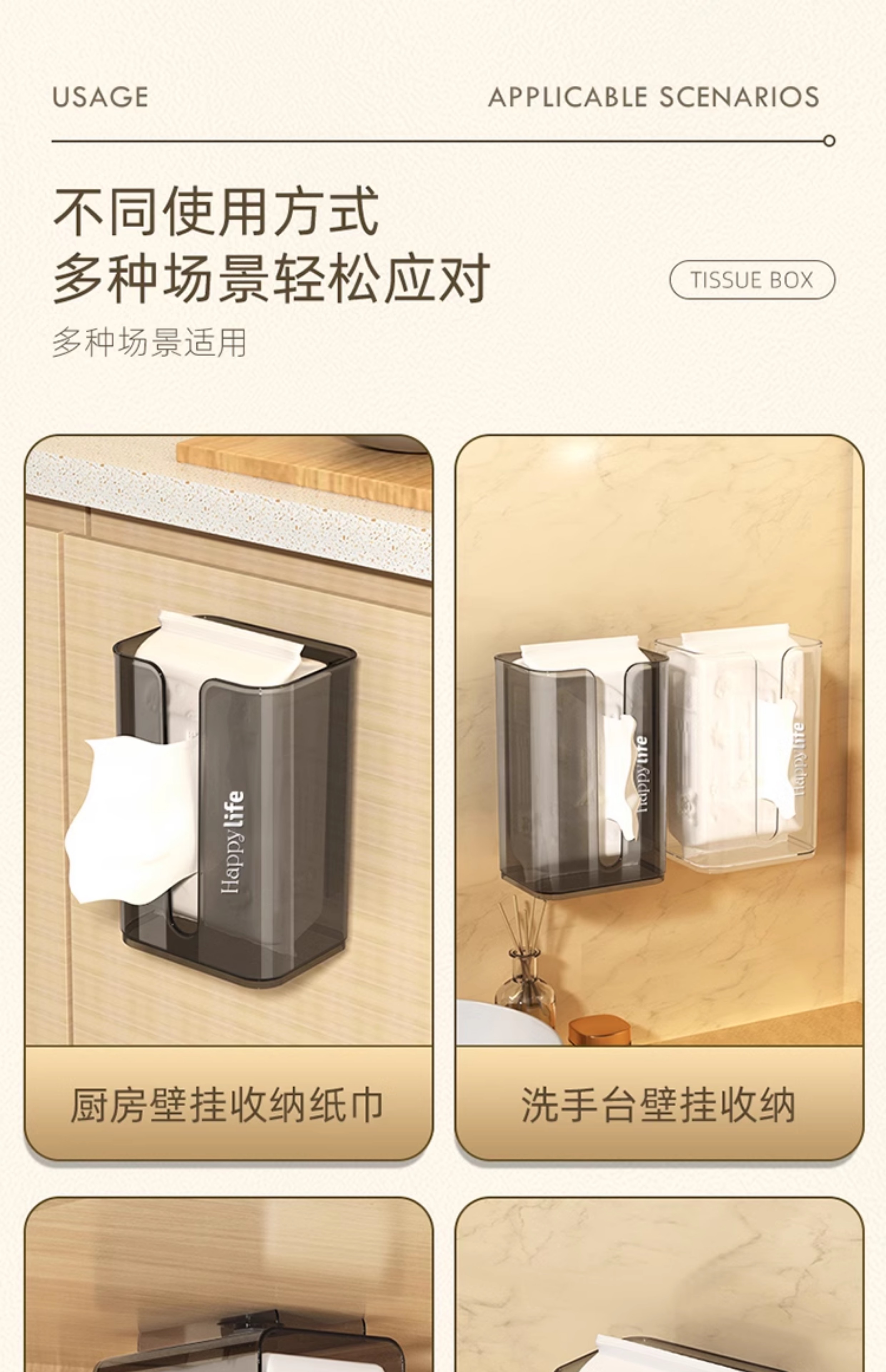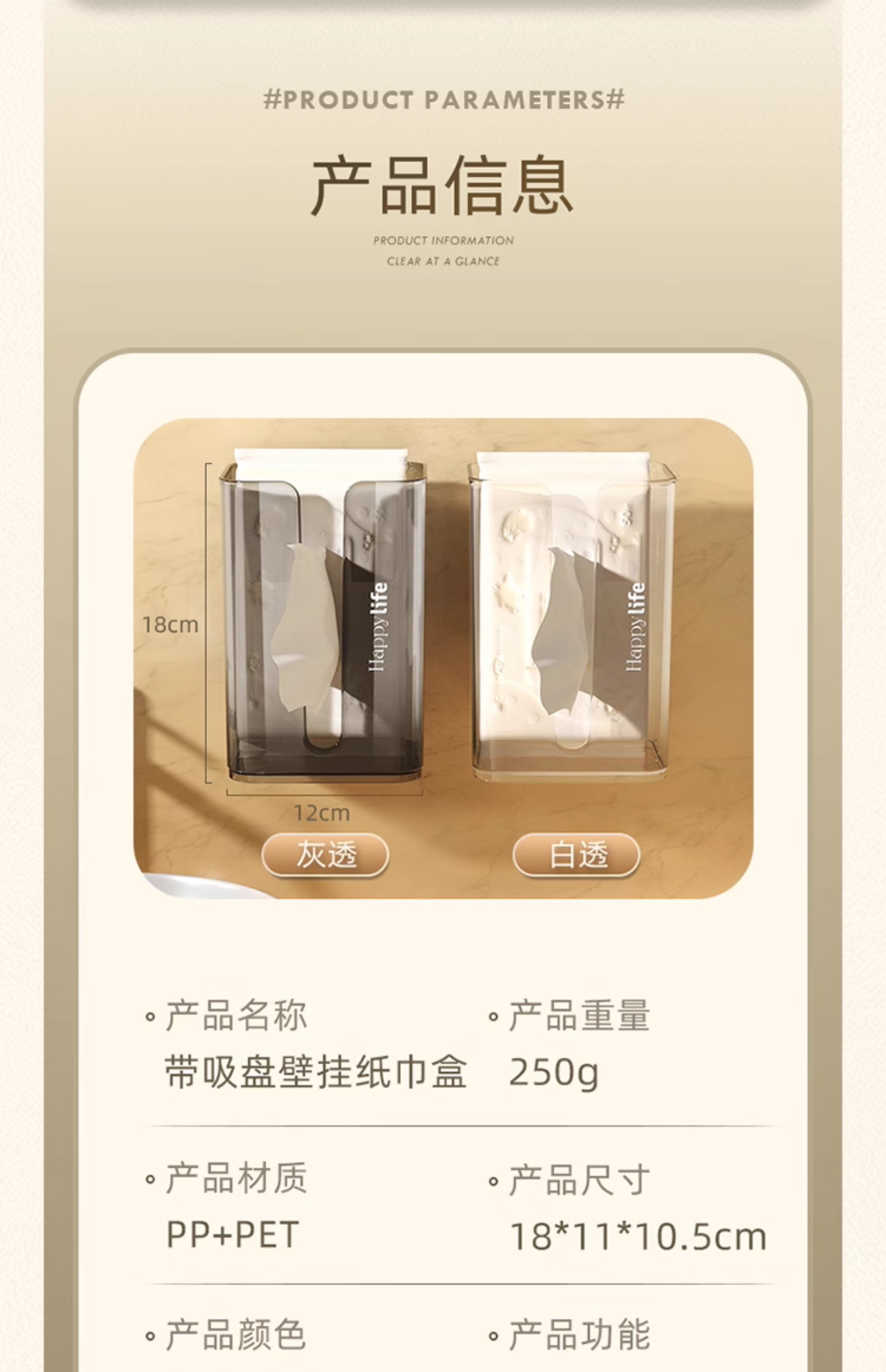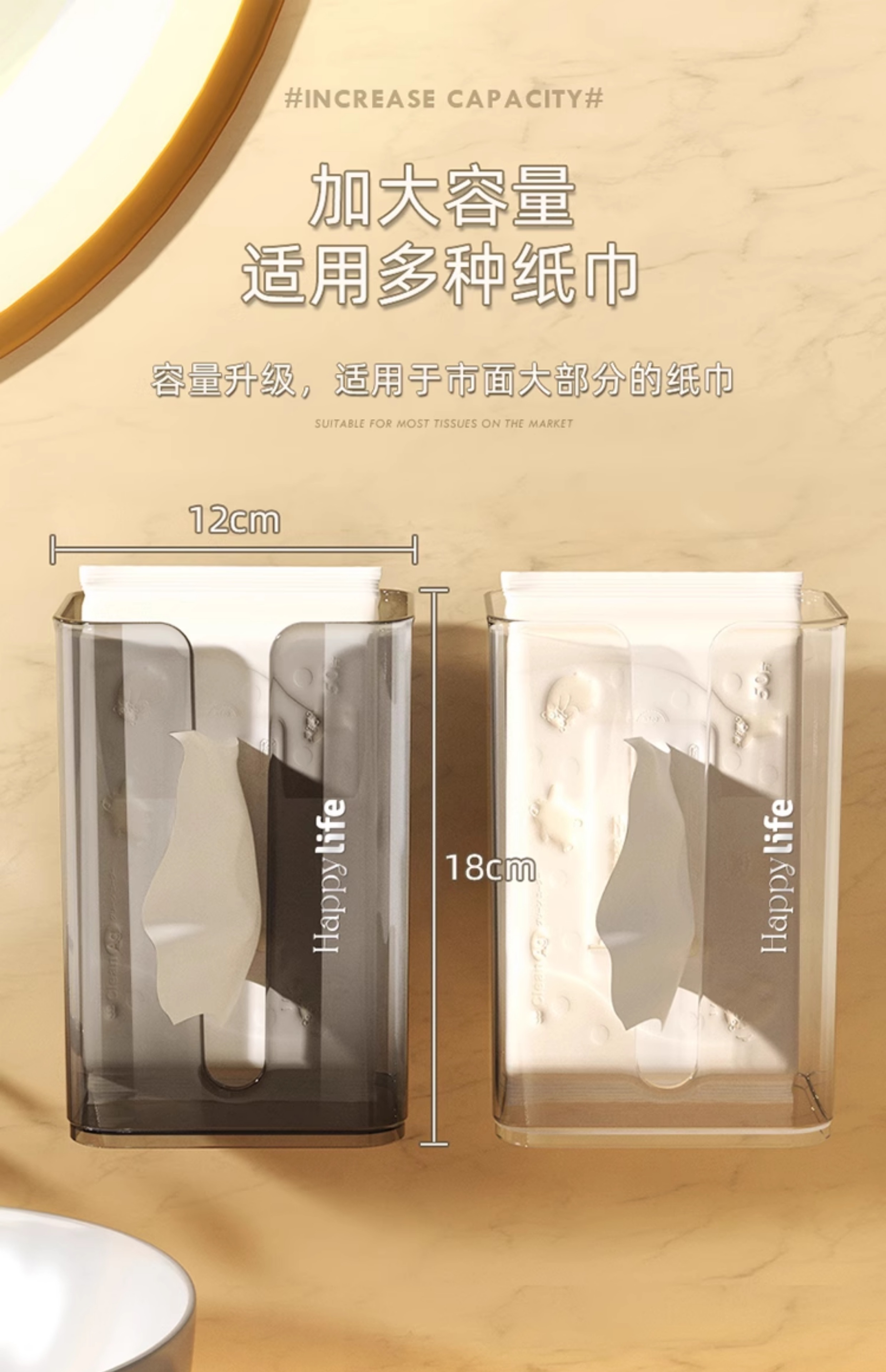 Wall-Mounted Tissue Box with Suction Cup Toilet For Home Kitchen Facial Tissue Face Cloth Storage Bathroom Toilet Paper Box