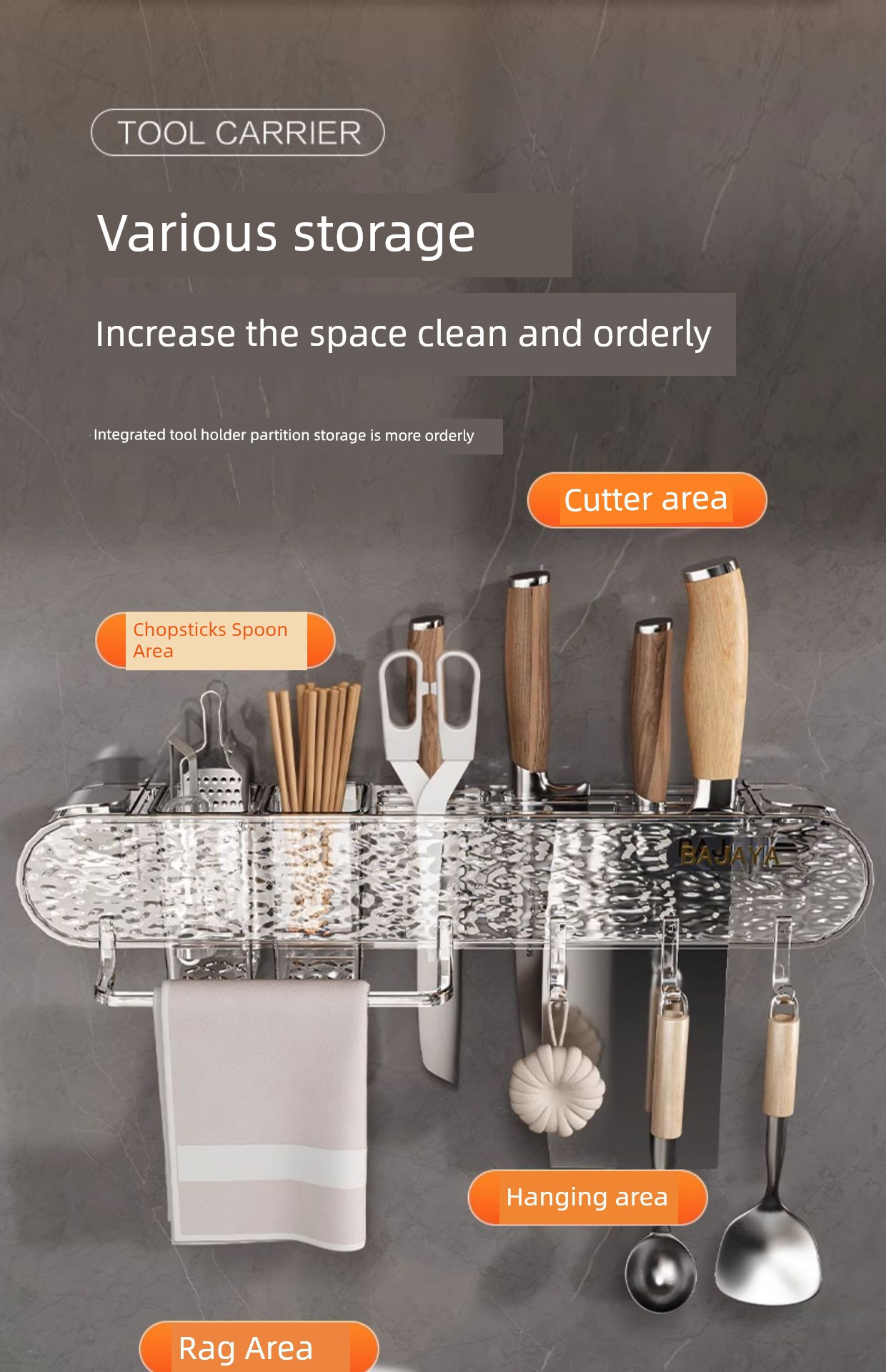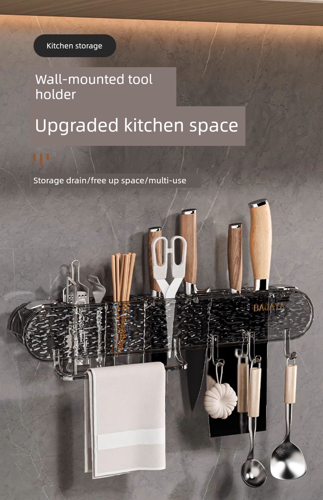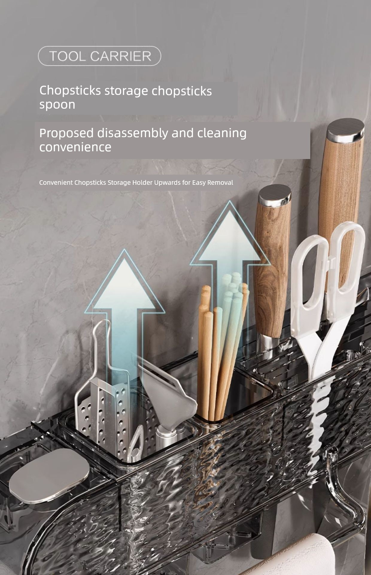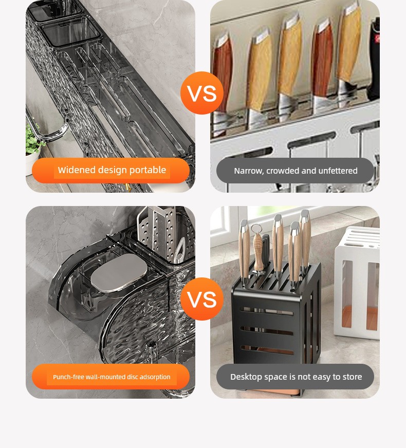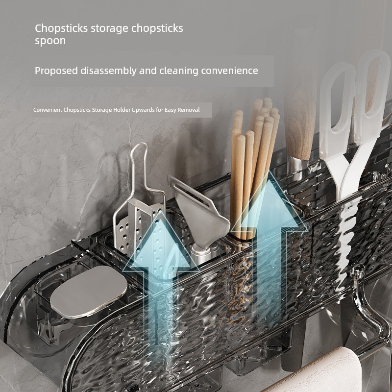 Water Ripple Knife Rack Storage Rack Kitchen Home Wall-Mounted Multi-Functional Kitchen Knife Chopsticks Holder Integrated Knife Storage Rack