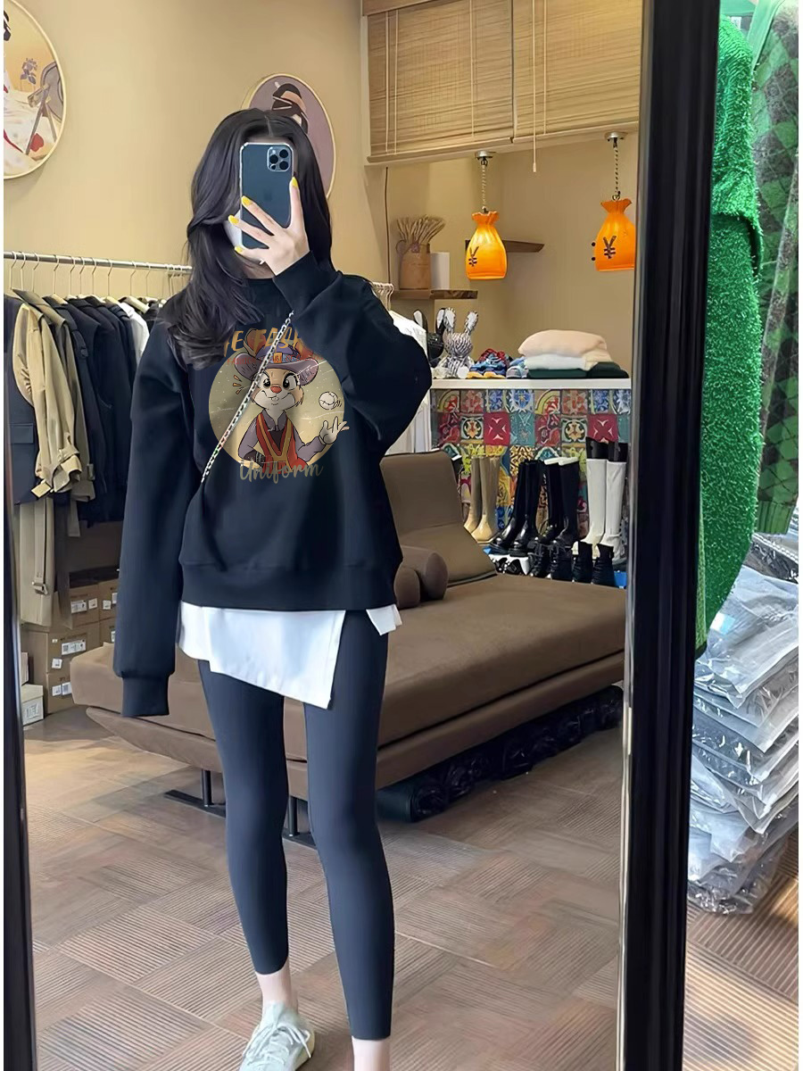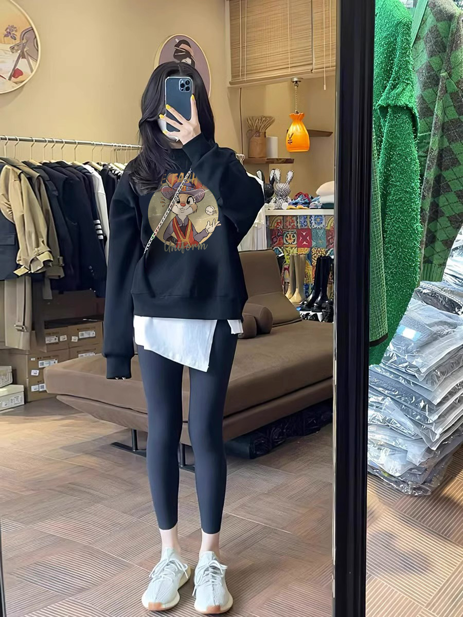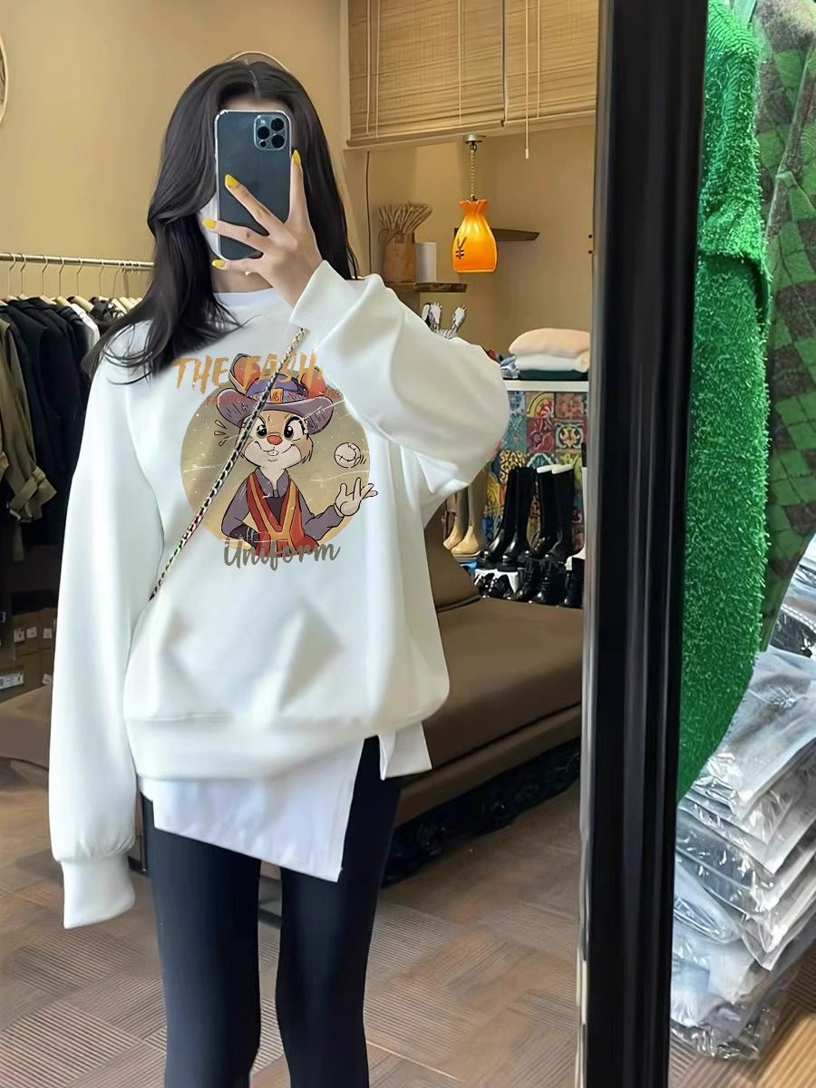 Western Style American Style Temperament Long Sleeve Print Tops Early Autumn New Arrival Female Easiest for Match Loose Laid-Back Figure Flattering Light Gray Sweatshirt
