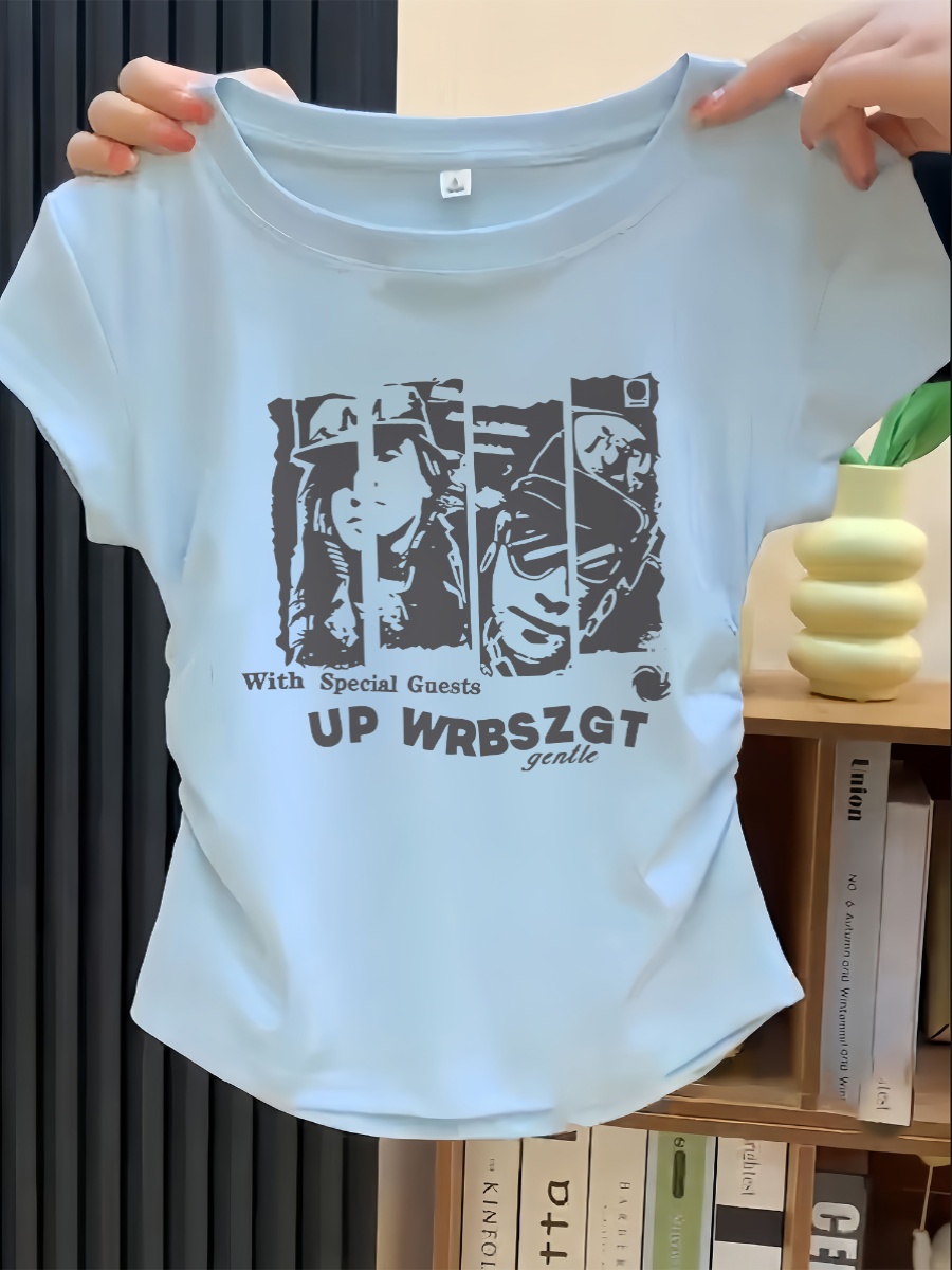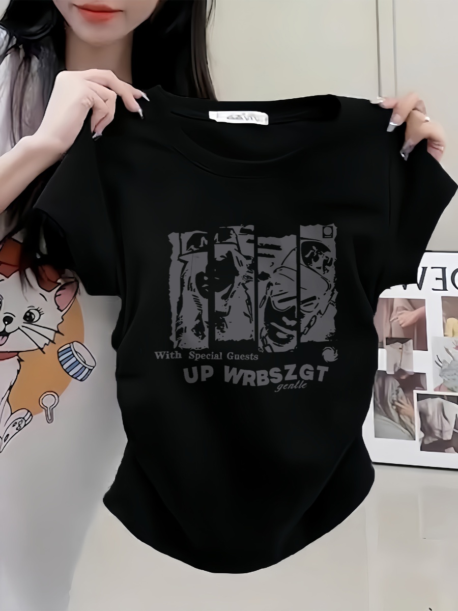White Chic Summer New Women's Short Sleeve 2025 French Style Temperament Silm T-Shirt Pure Cotton Print Short Tops