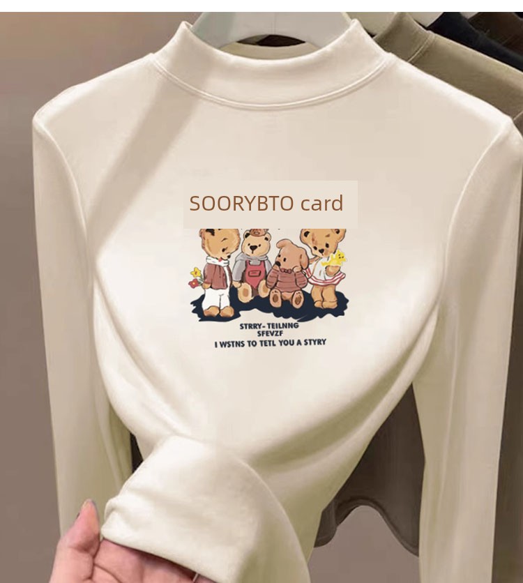 White Dralon Bottoming Shirt for Women Inner Wear Long Sleeve T-shirt Autumn and Winter Silm Slimming Small Stand Collar Fashion Trendy Tops