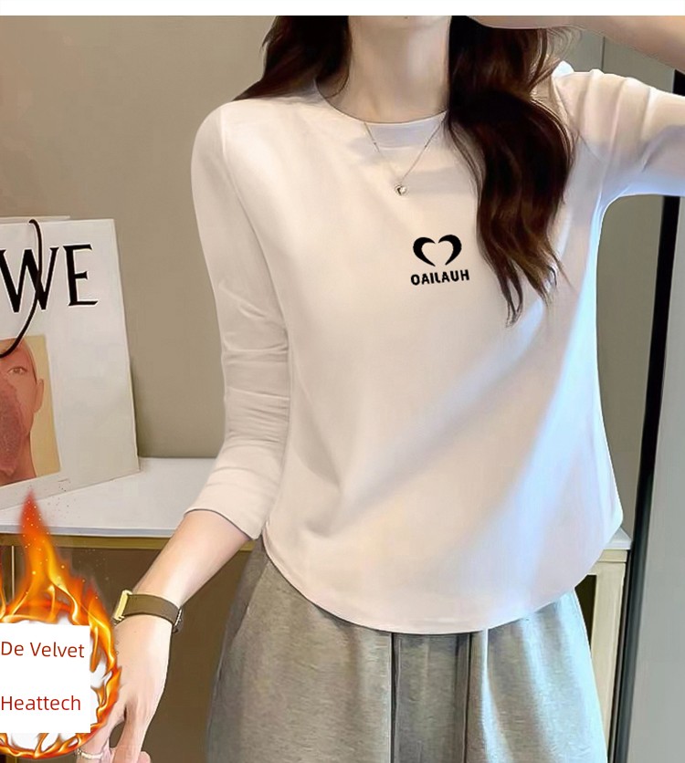 White Long Sleeves Bottoming Shirt Women's Autumn and Winter Clothing Short Inner Wear Slim Looking Tops Stylish Silm plus Houde Velvet T-shirt