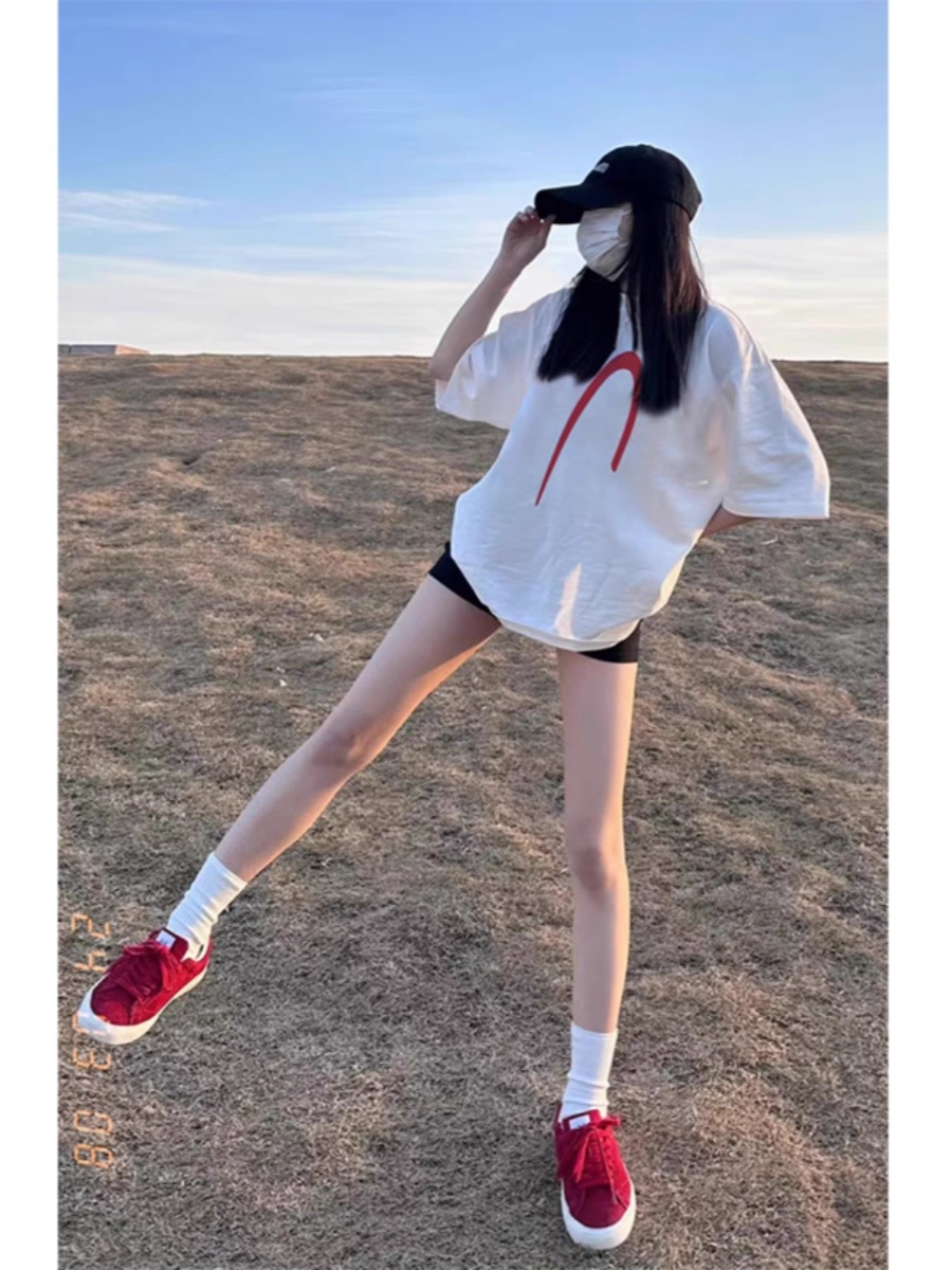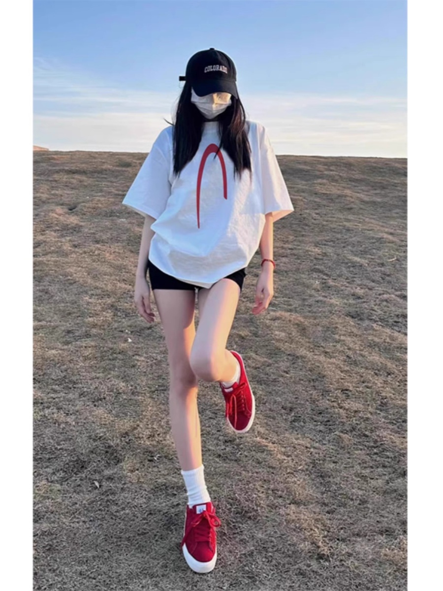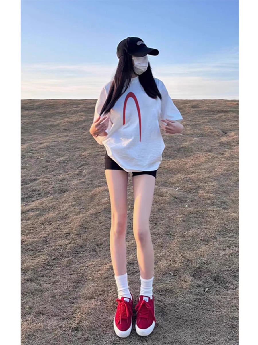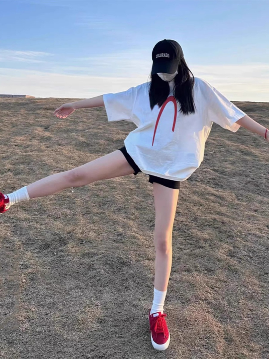 White Pure Cotton American Retro High Street Fashion Brand Niche Style Short-Sleeved T-shirt Women's Summer New Arrival Oversized Loose Tops Tide