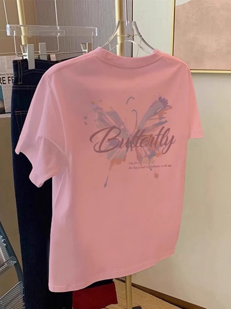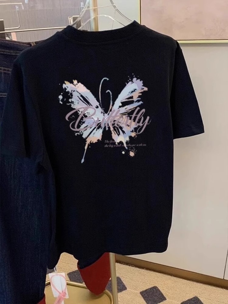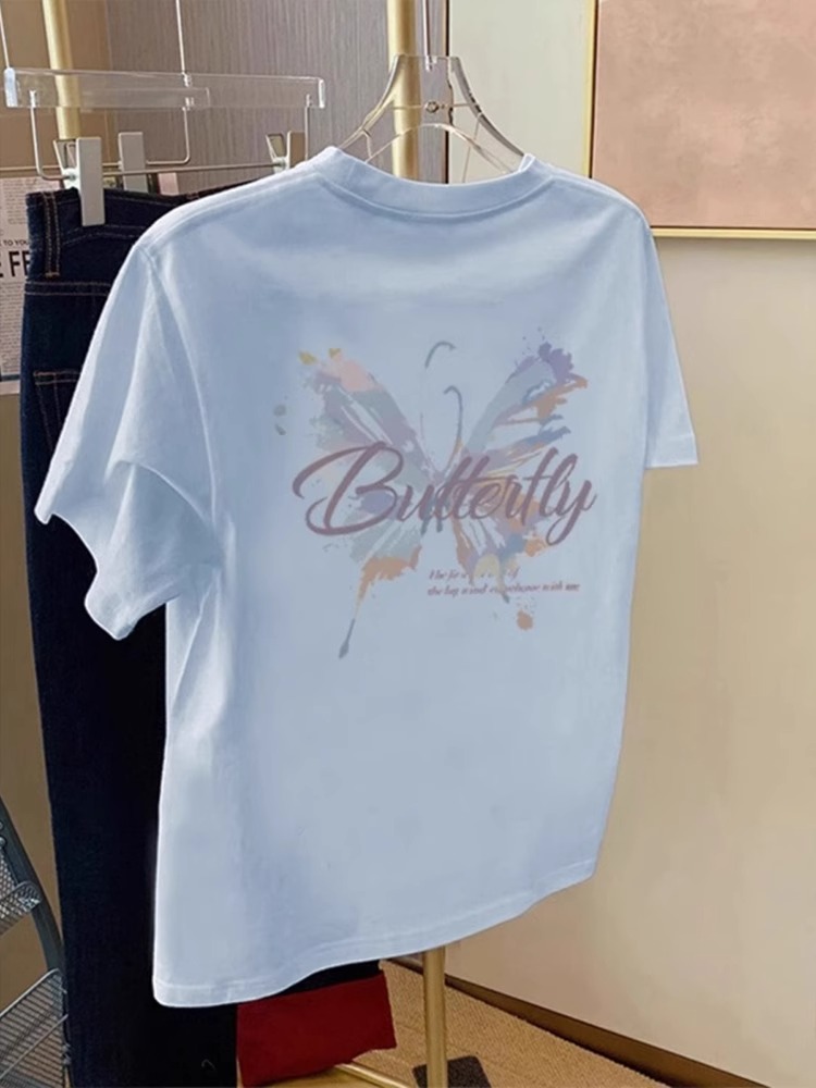 White Pure Cotton Short-Sleeved T-shirt Female Summer New Arrival Butterfly Print European Shirt High-End Famous Brand Best Selling Tops