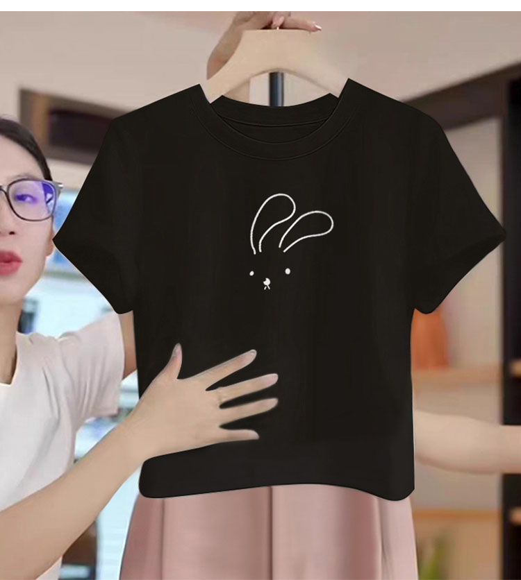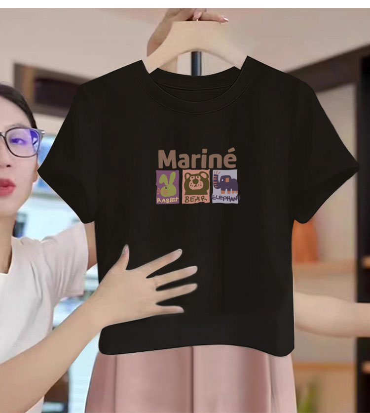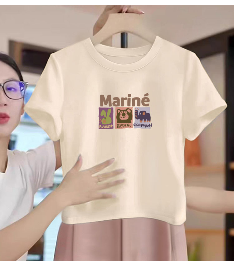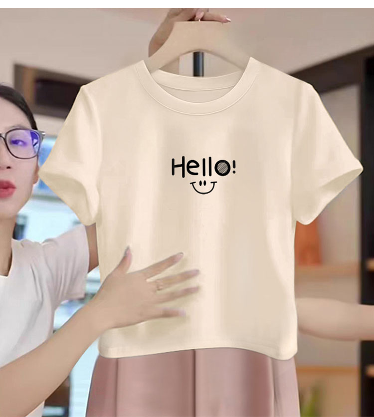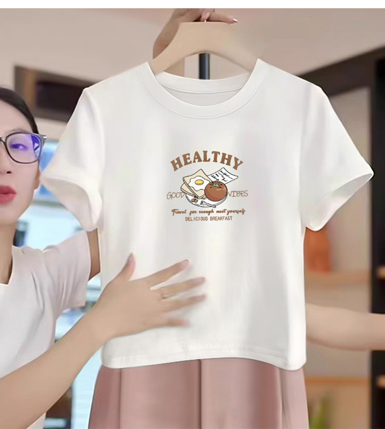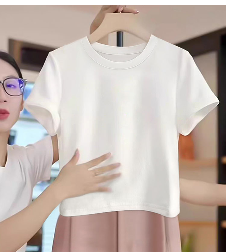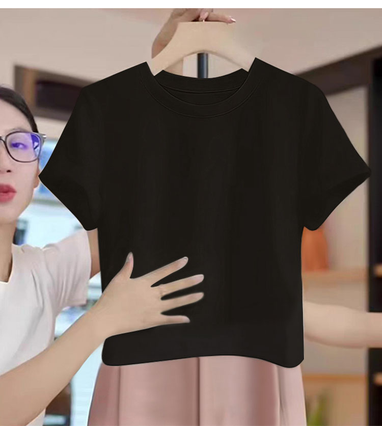 White round Neck Short Short Sleeve T-shirt Women's Summer 2025 New Design Sense Small Shoulder High Waist Waist-Controlled Top
