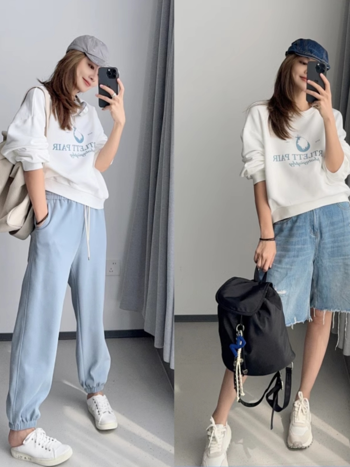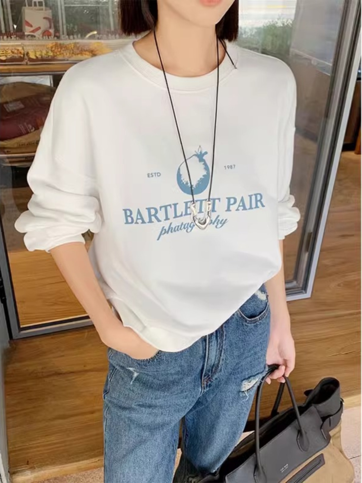 White round Neck Sweatshirt Female 2025 New Arrival Best Selling Spring and Autumn Casual Long Sleeves Fleece-lined Thickened Spring & Fall Loose Tops
