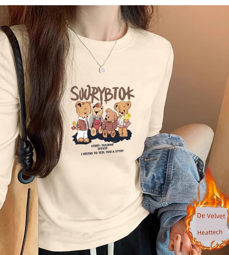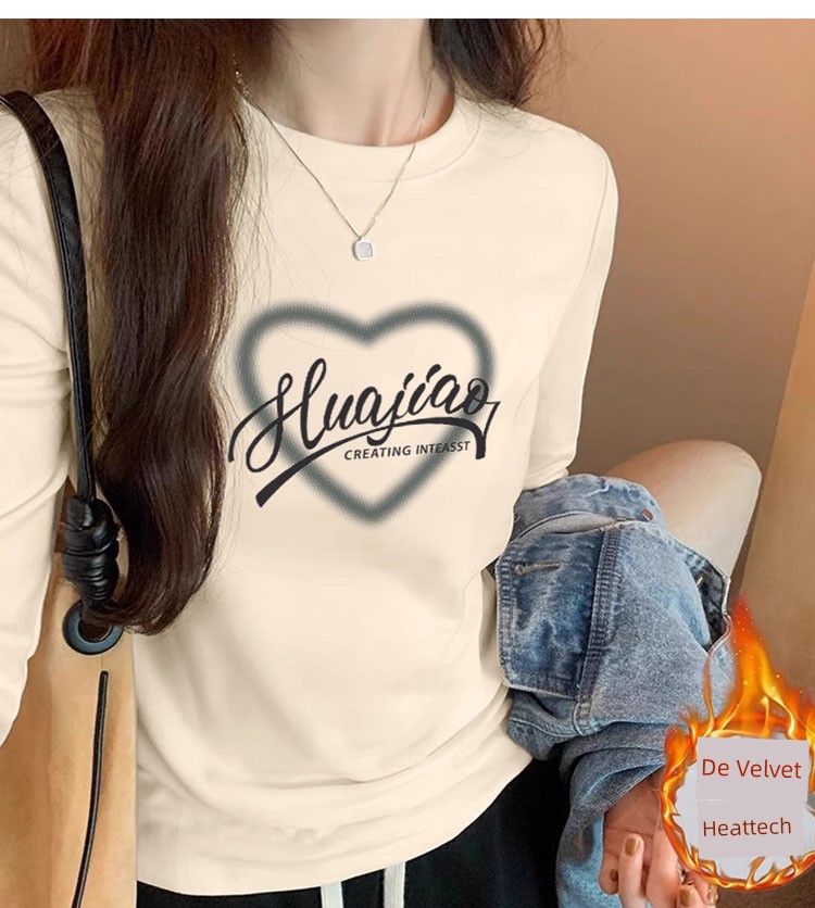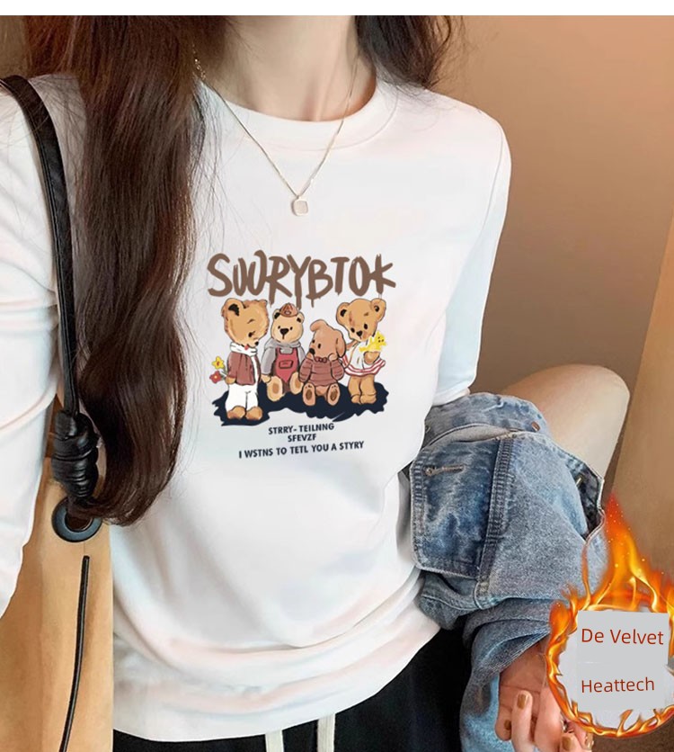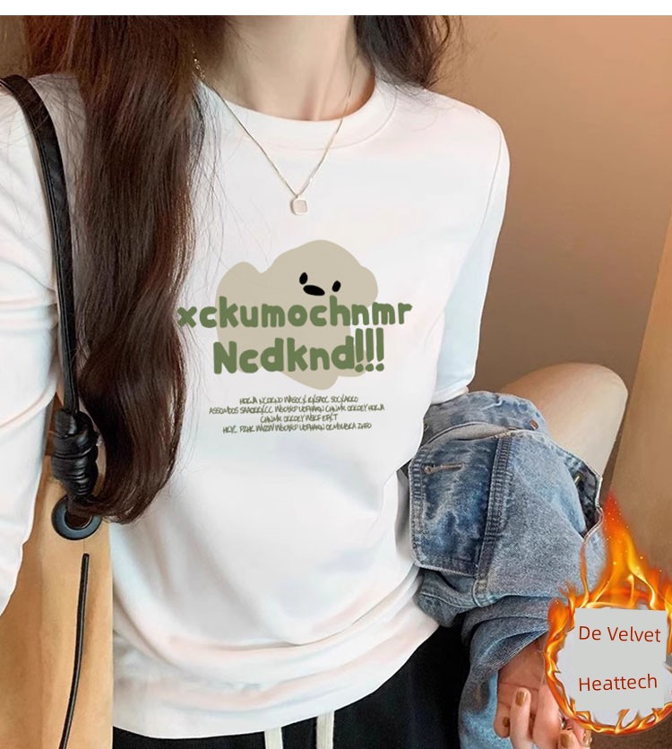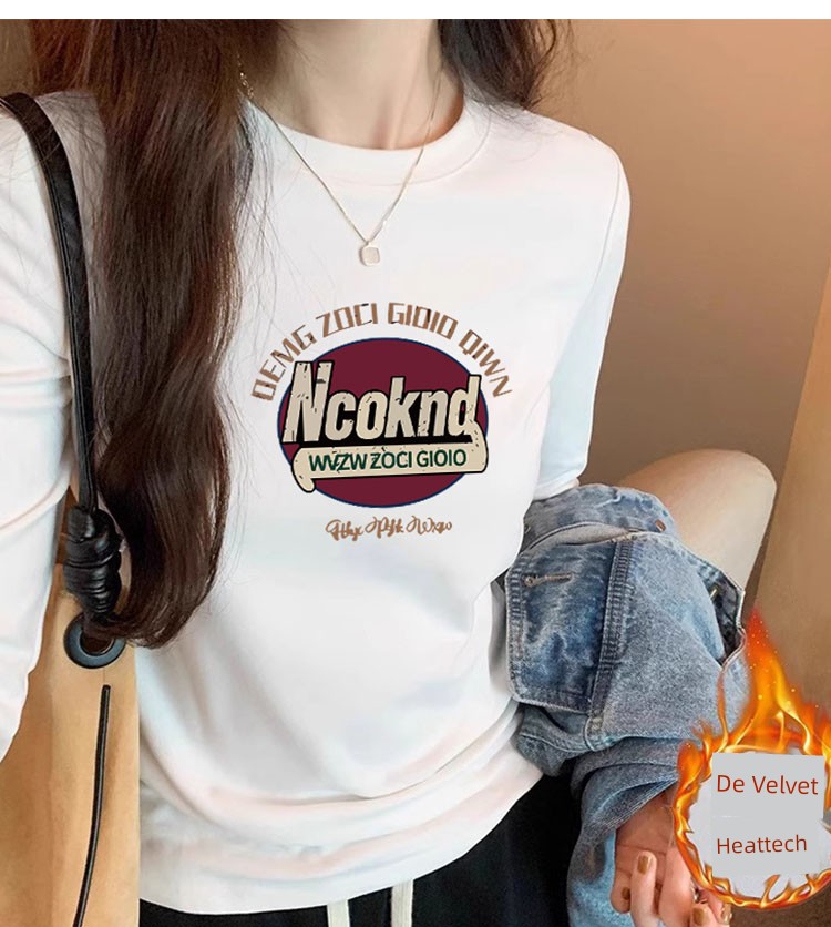 White Short Shoulder Long Sleeves T-shirt for Women 2025 New Arrival Fall and Winter Double-Sided Dralon Thickened Inner Bottoming Shirt Tops