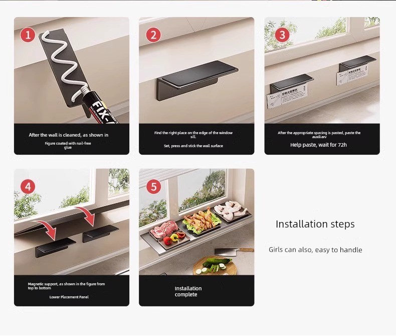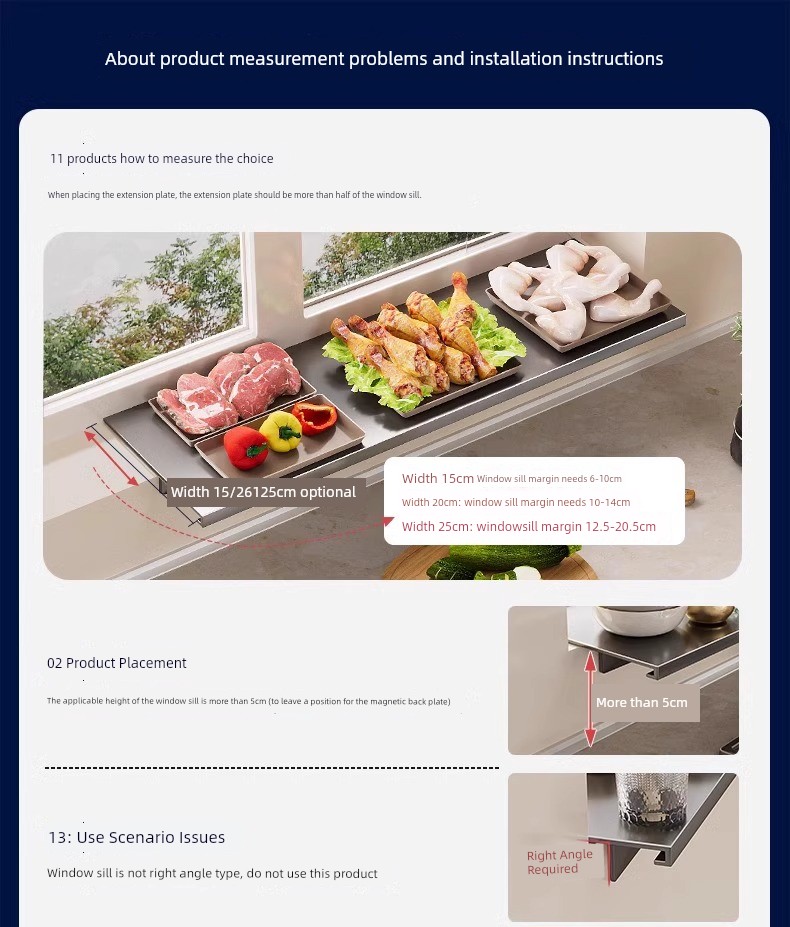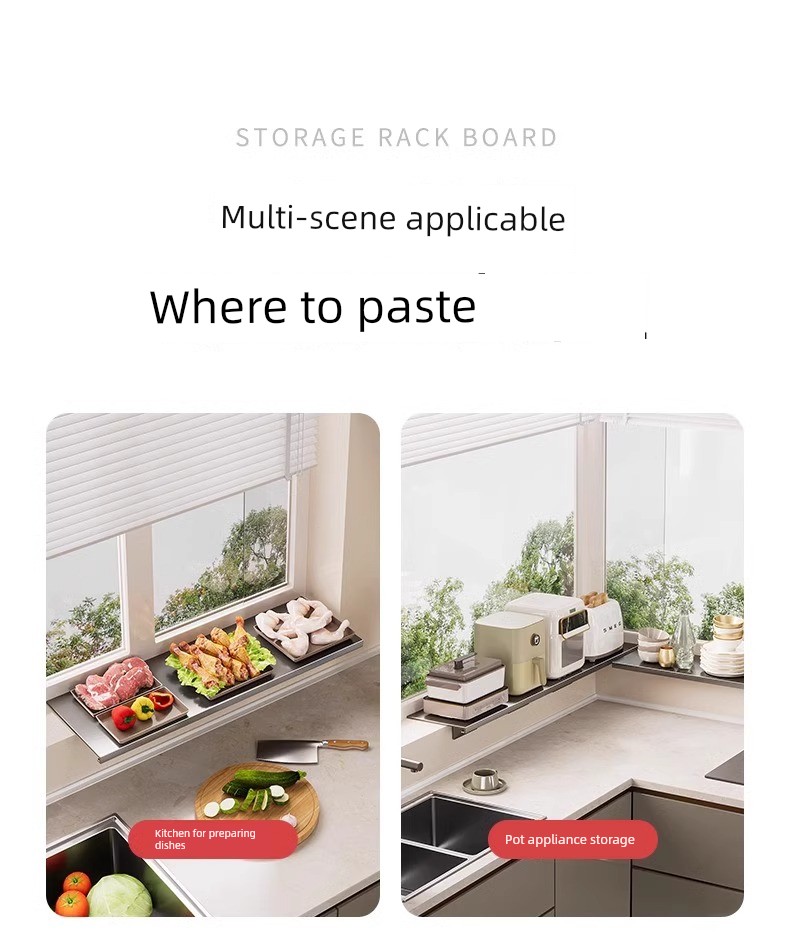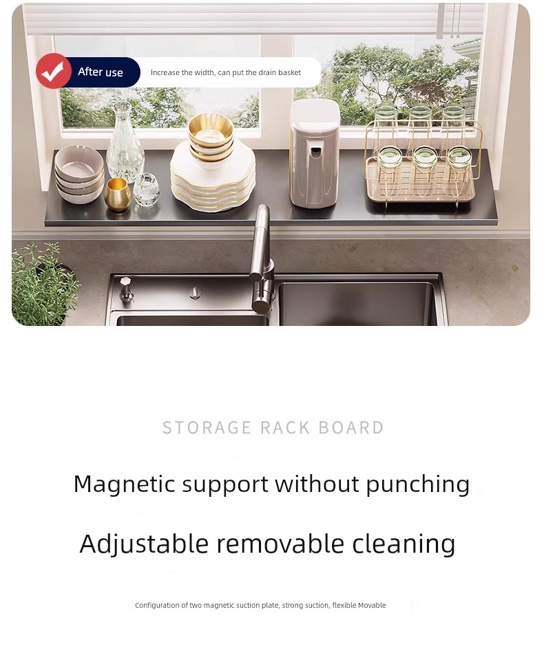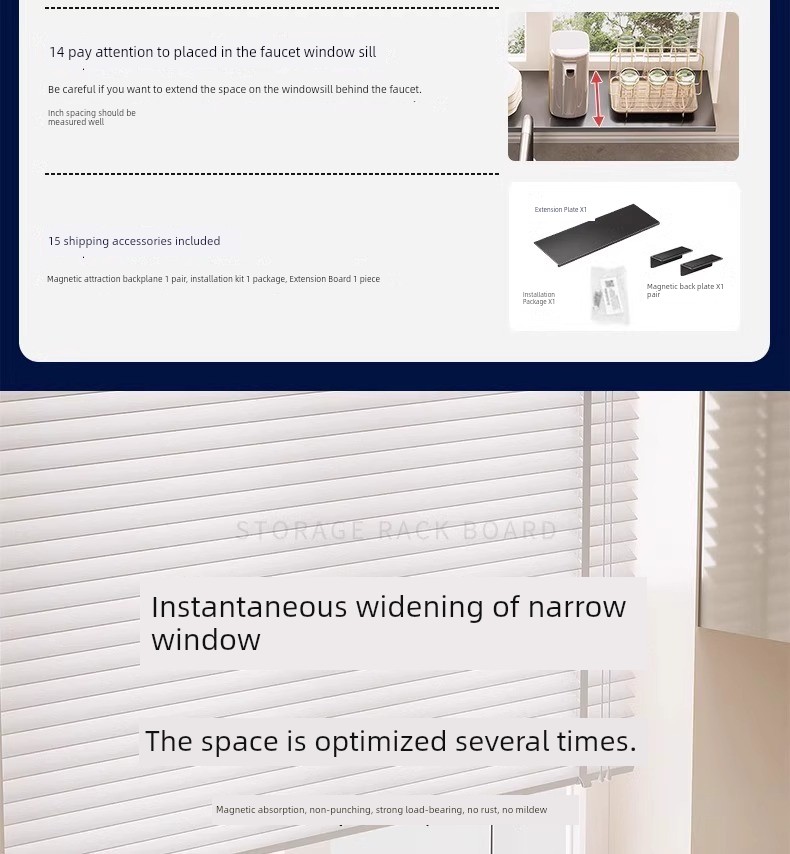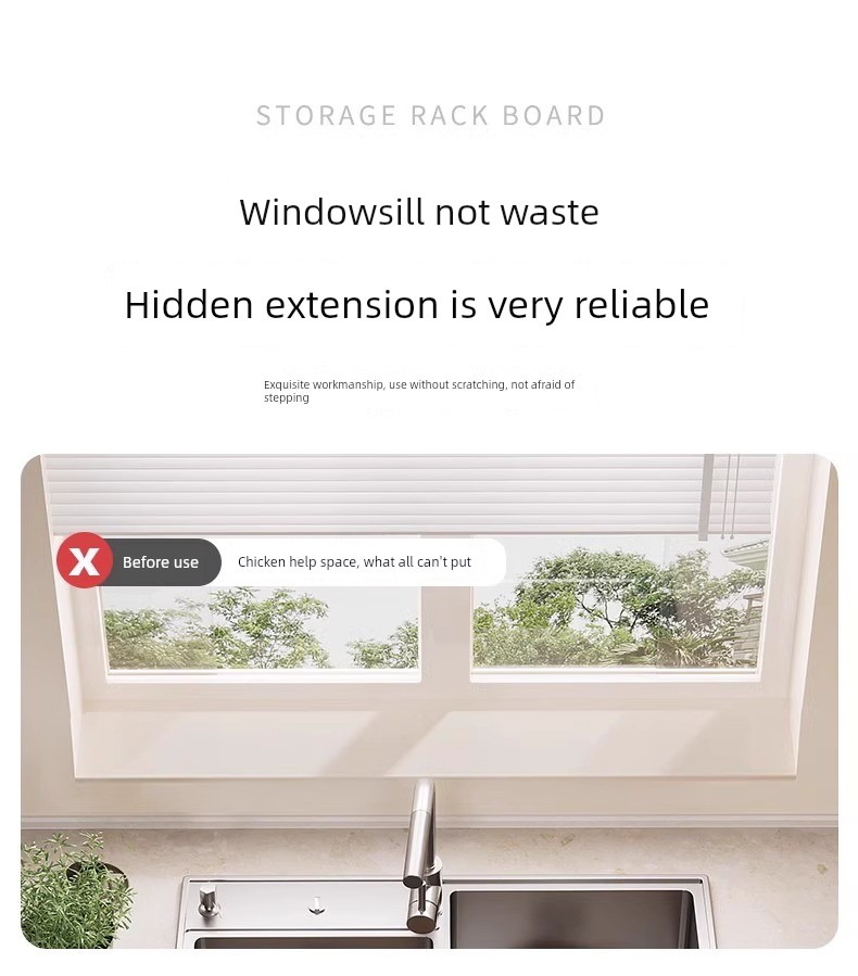 Window Sill Extension Board Kitchen Storage Punch-Free Magnetic Storage Shelf Desktop and Countertop Widened Window Extension Handy Gadget