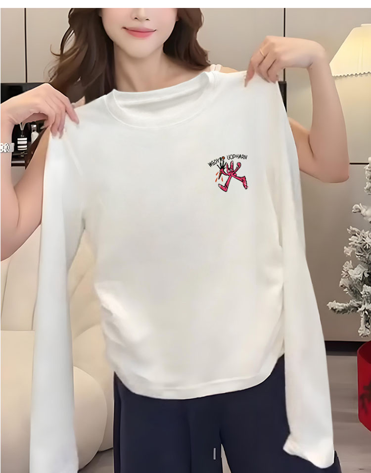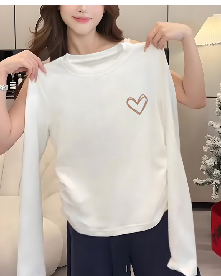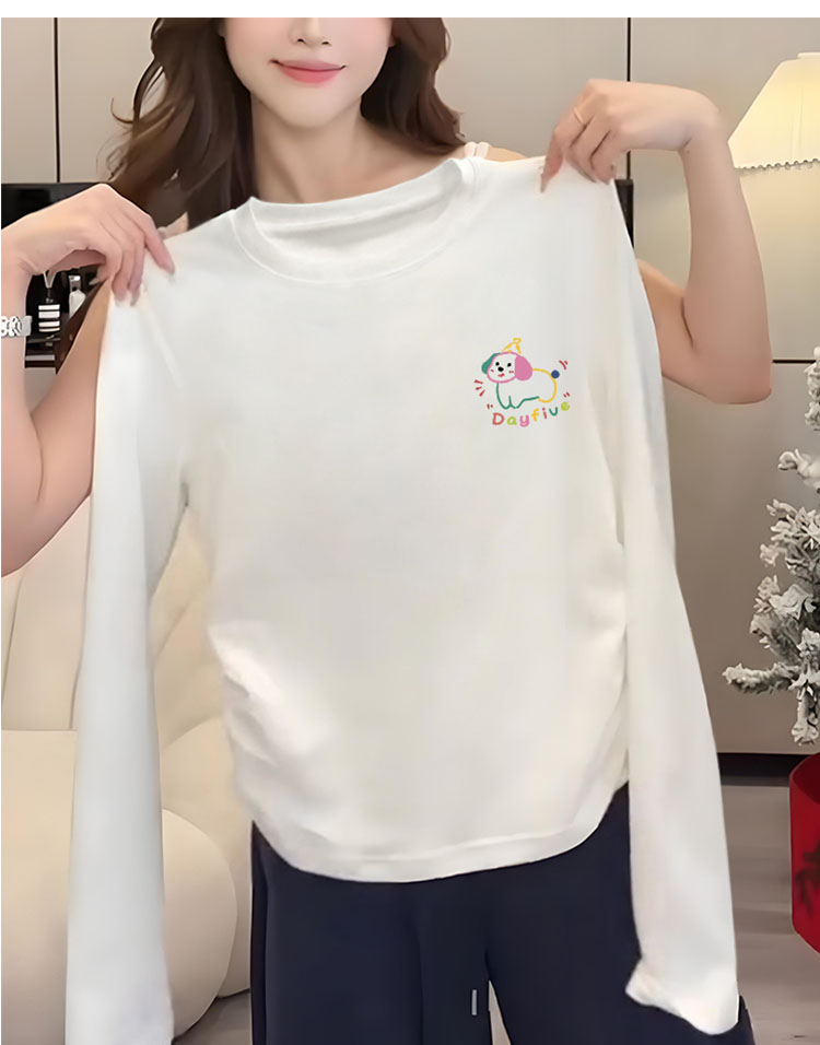 Women's 13 Lines Short Pure Cotton T-shirt Women's Long Sleeve Autumn and Winter Loose Slim Looking Inner Bottoming Shirt Peplum Top