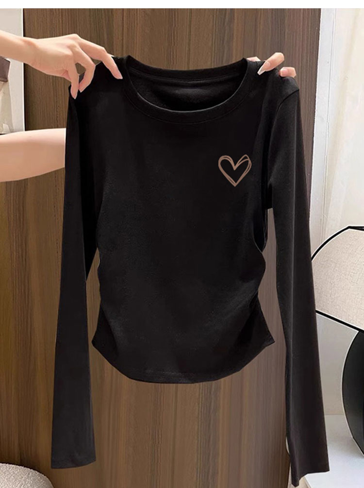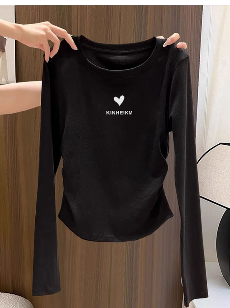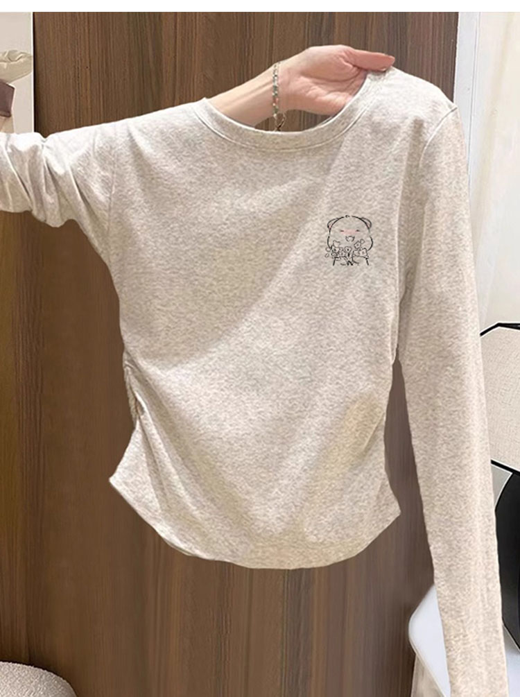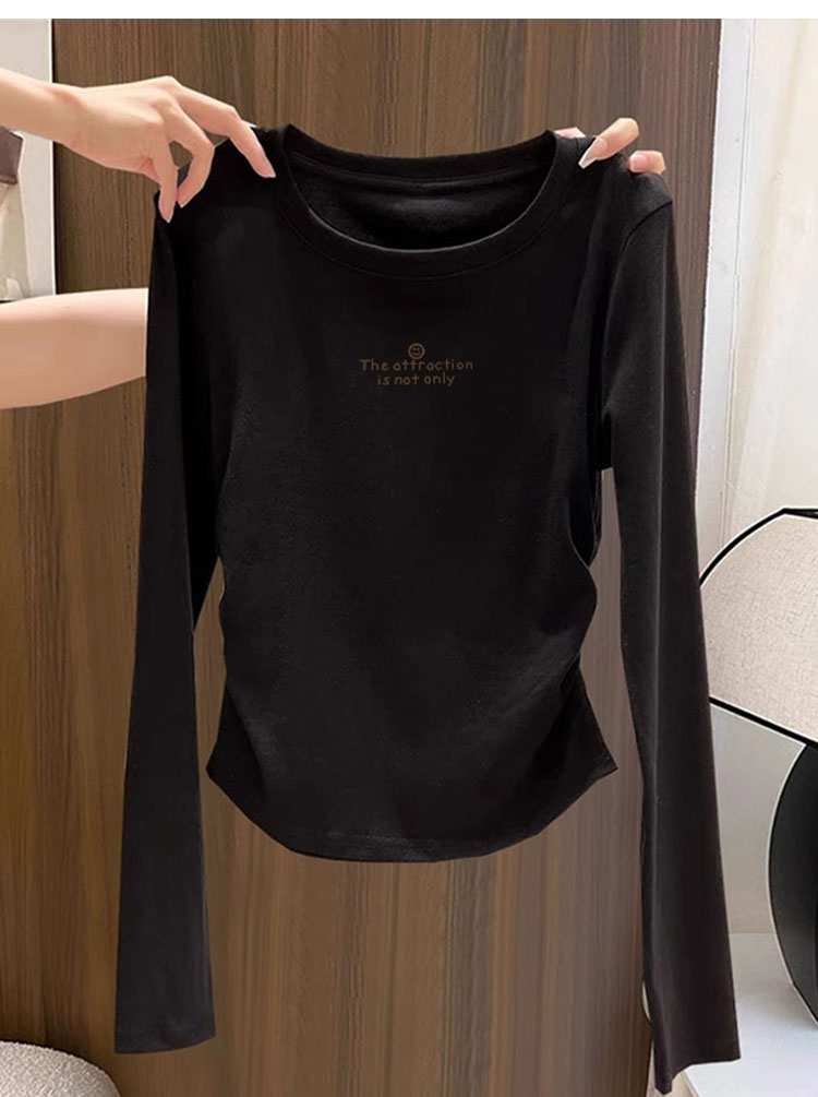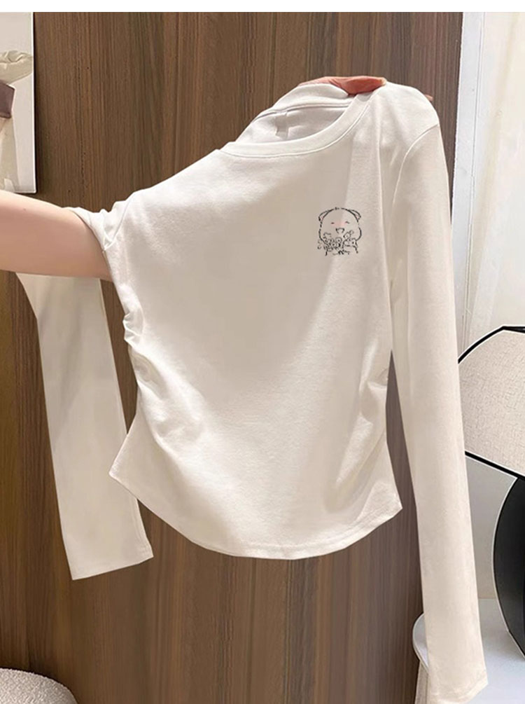 Women's Clothing Early Autumn New Design Sense Shoulder Pure Cotton Long Sleeves T-Shirt Women's Cinched Slimming Pullover Bottoming Shirt