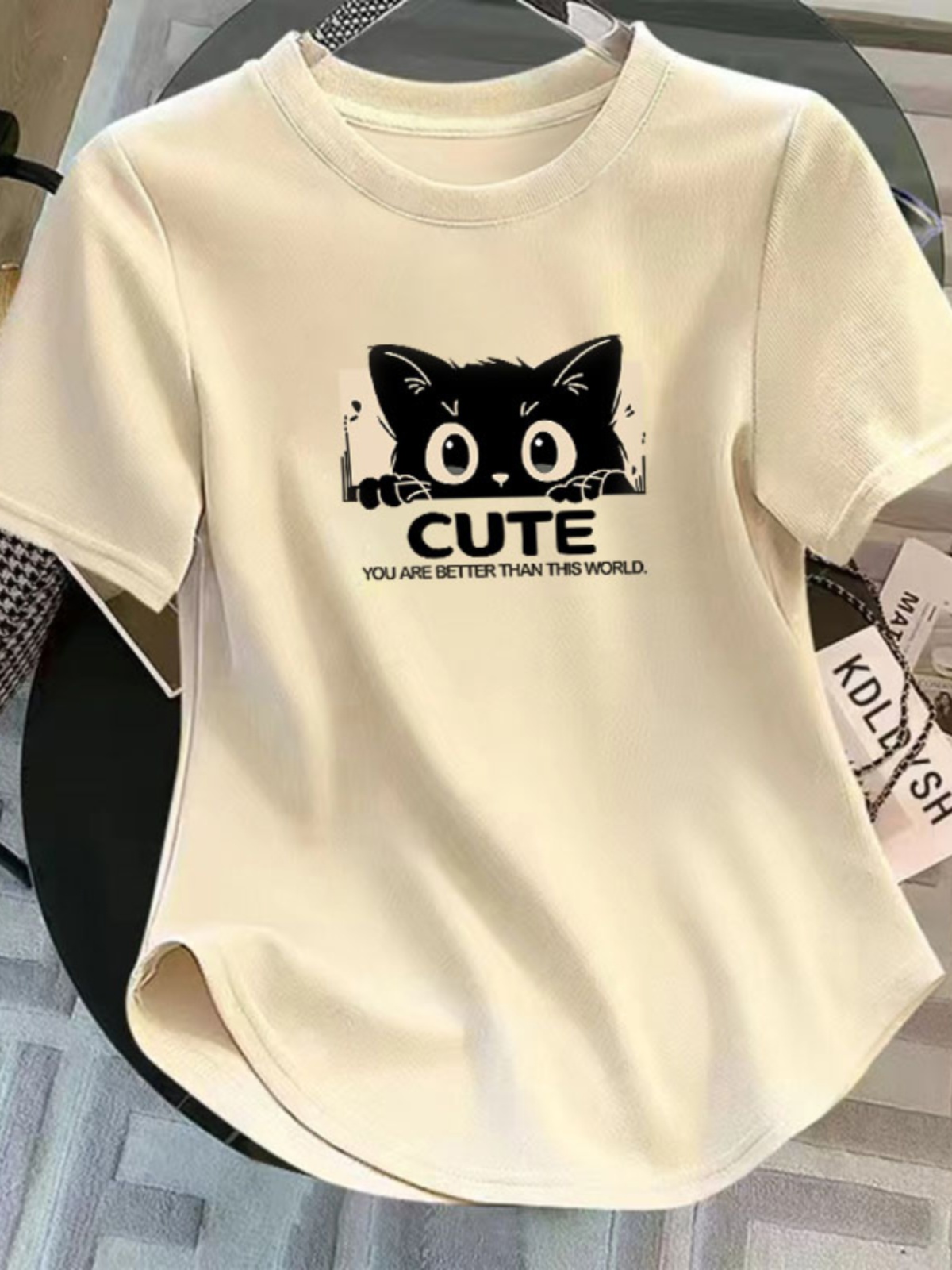 Women's Clothing in 13 Lines Asymmetrical Short Sleeve T-Shirt Women's Summer New Arrival Niche Style Silm Slimming Short Top