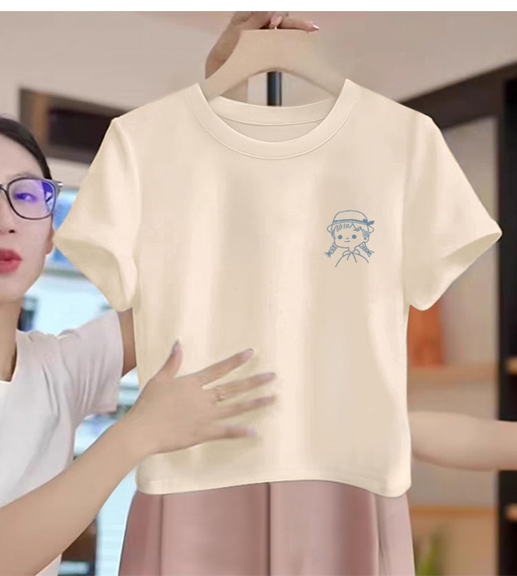 Women's Clothing in 13 Lines Summer 2025 New Pure Cotton Short Sleeve T-Shirt Women's round Neck White Fashion Ins Trendy Shoulder Tops