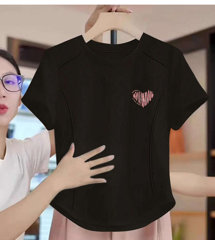 Women's Clothing Pure Cotton Asymmetrical Hem Short Sleeve T-Shirt Women's Summer Slimming Fishbone Small Shirt Short Tops Fashion