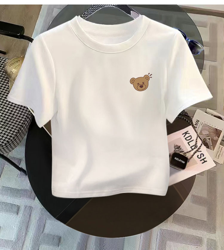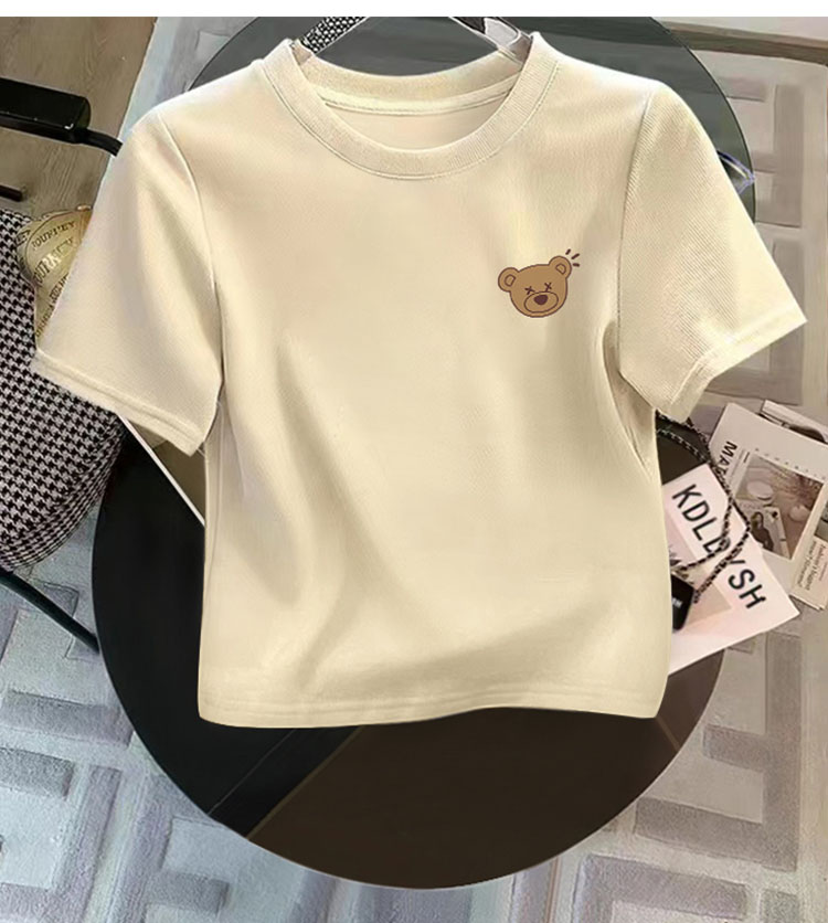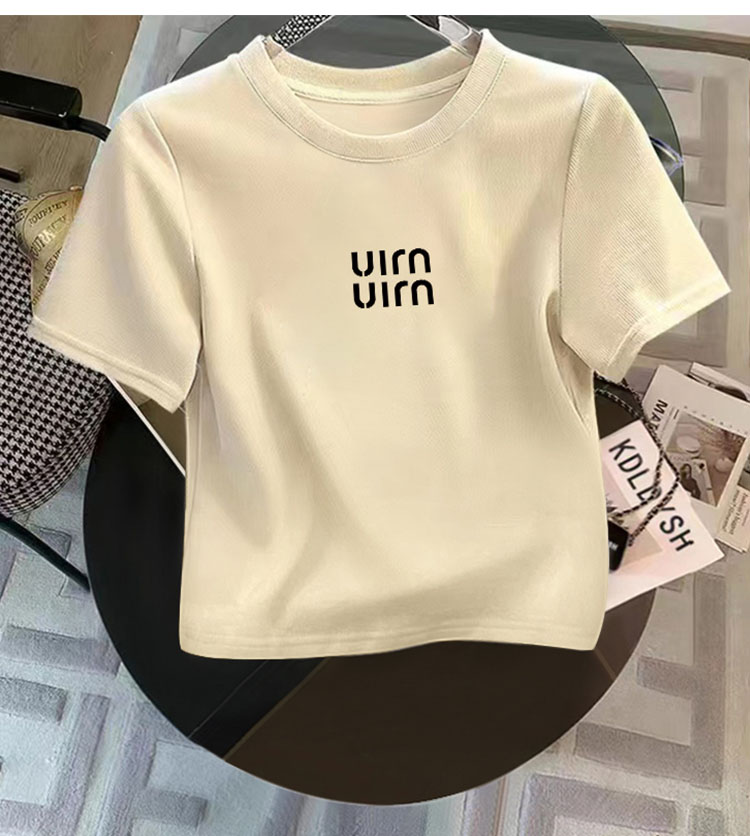 Women's Cream Color Pure Cotton Short Sleeve T-Shirt Women's Silm Slim Looking Shoulder Short Anti-Aging Top