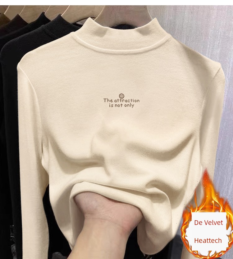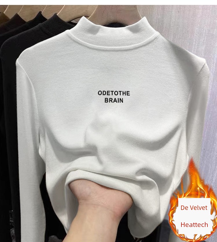 Women's Half Turtleneck Dralon Bottoming Shirt 2025 Autumn and Winter Clothing New Fleece-lined Thickened Western Style Inner Wear Long Sleeve Thermal Top