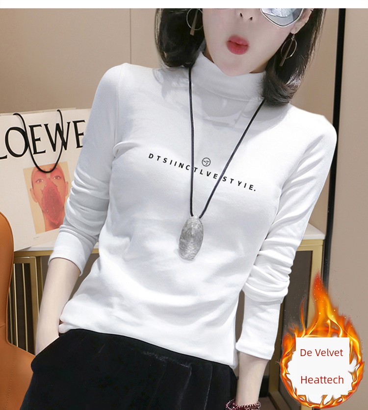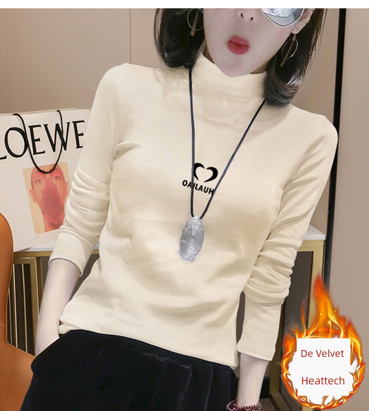 Women's Half Turtleneck Dralon Bottoming Shirt Fall and Winter 2025 New Arrival Silm Fleece-Lined Thickened T-shirt Underwear Long Sleeved Top Tide