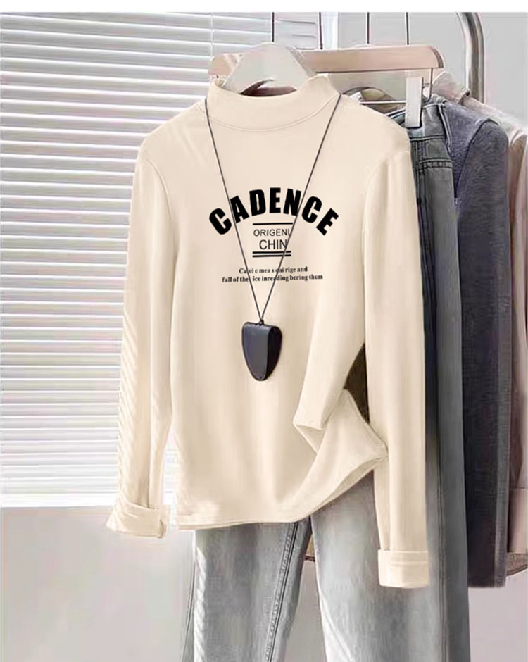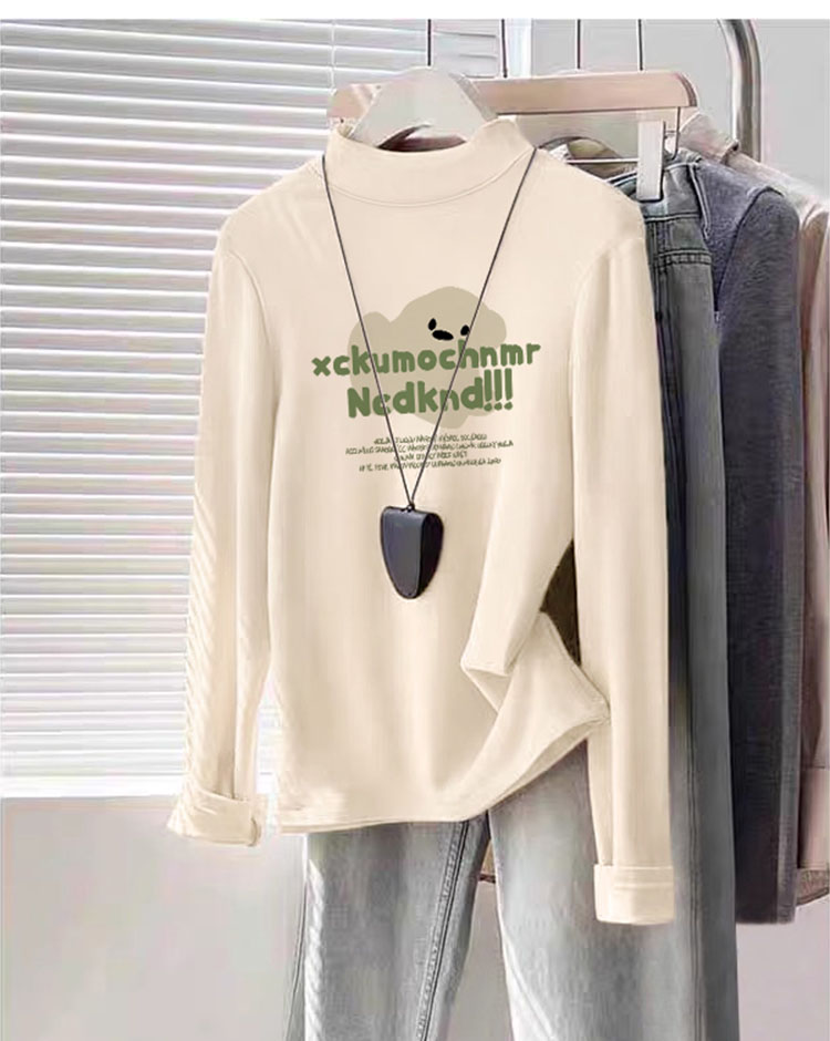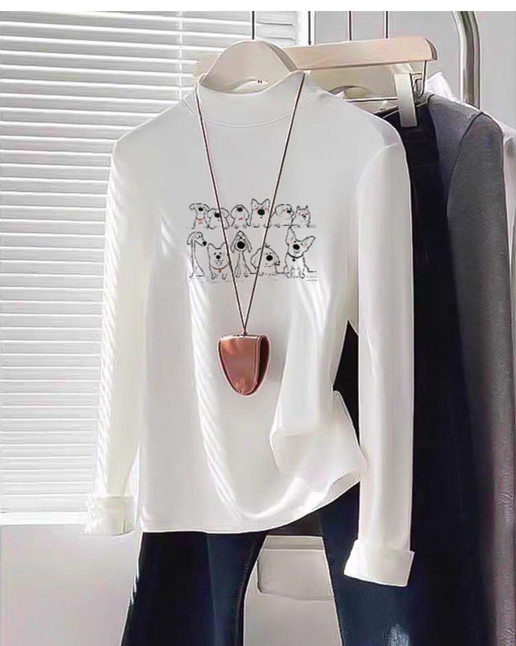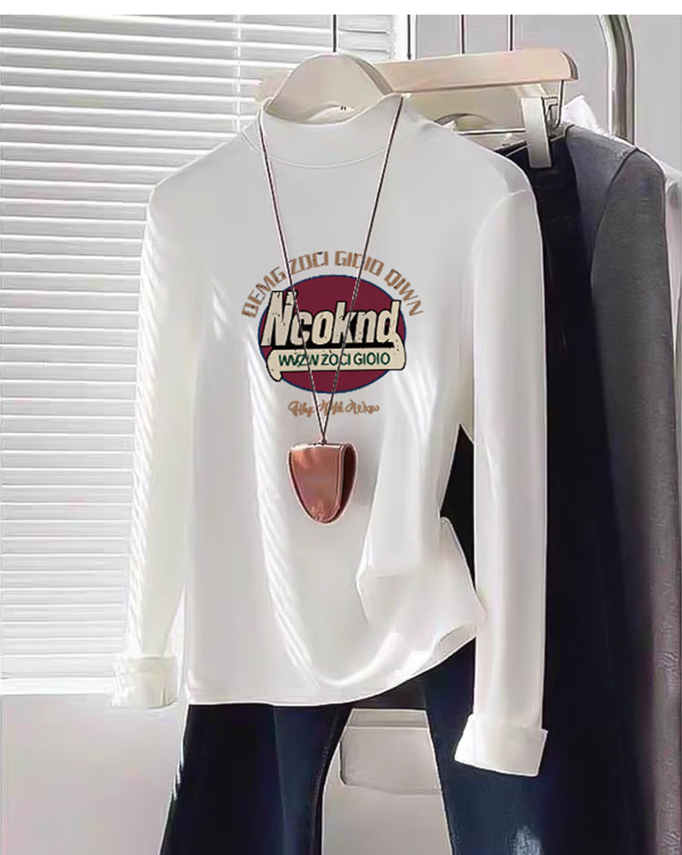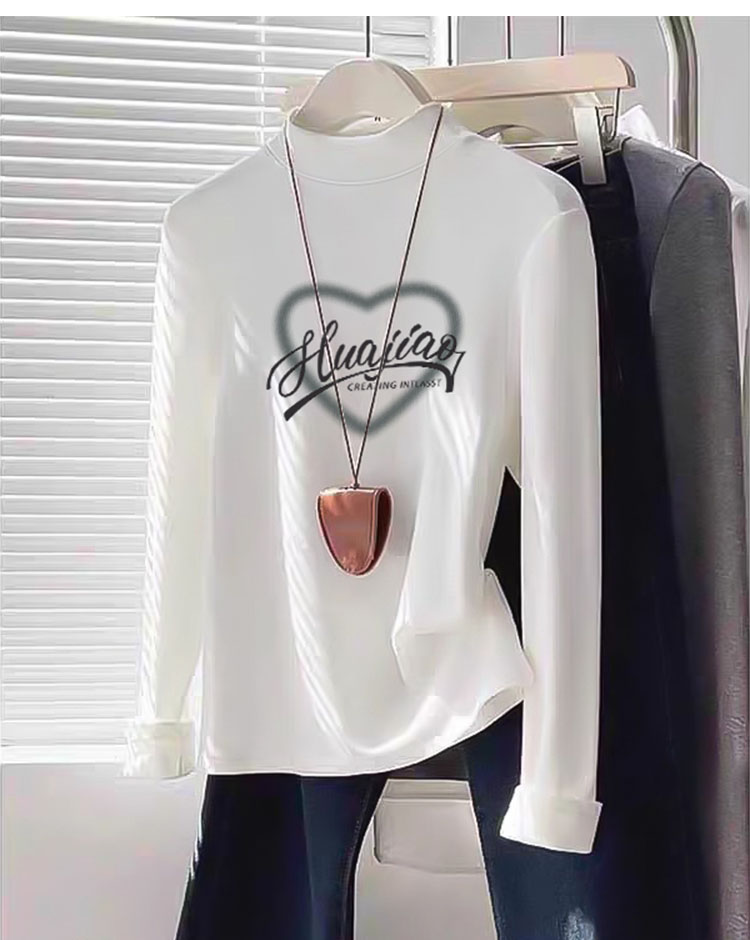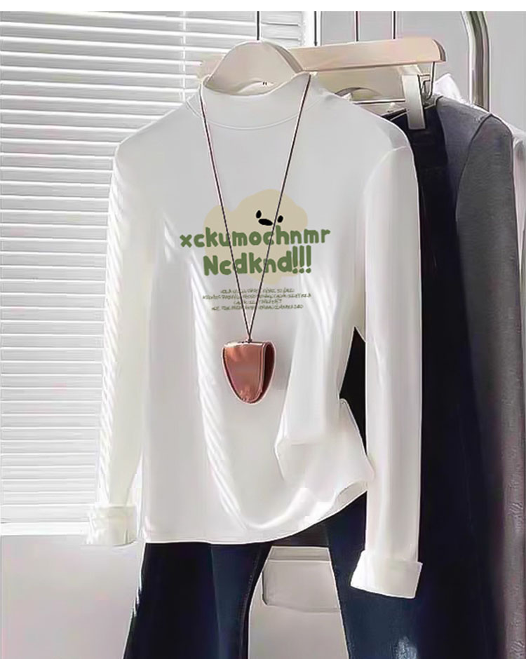 Women's Half Turtleneck K-style Bottoming Shirt Fall and Winter White Shoulder Silm Slim Looking Dralon Long Sleeves Warm T-shirt Top Clothes