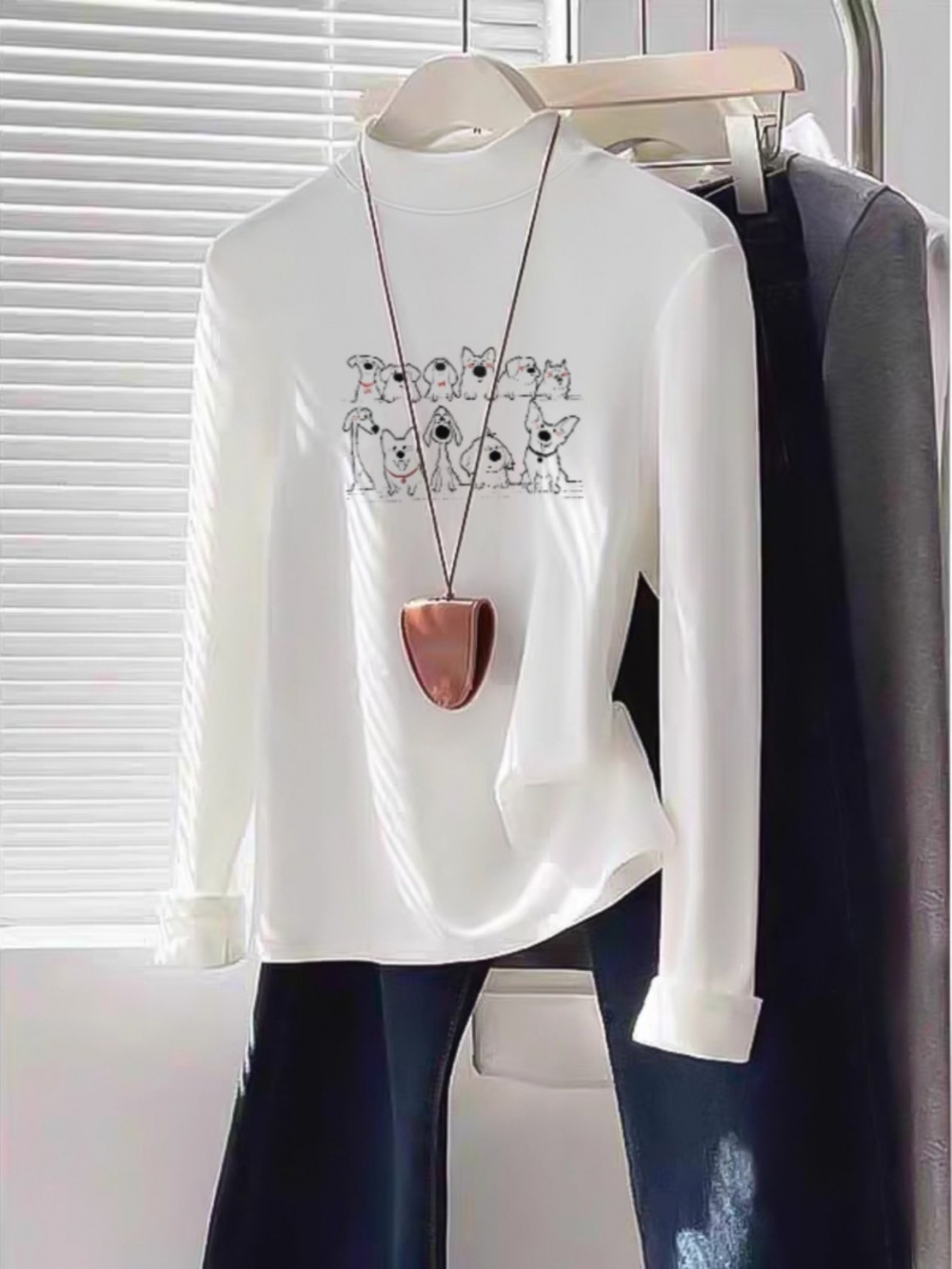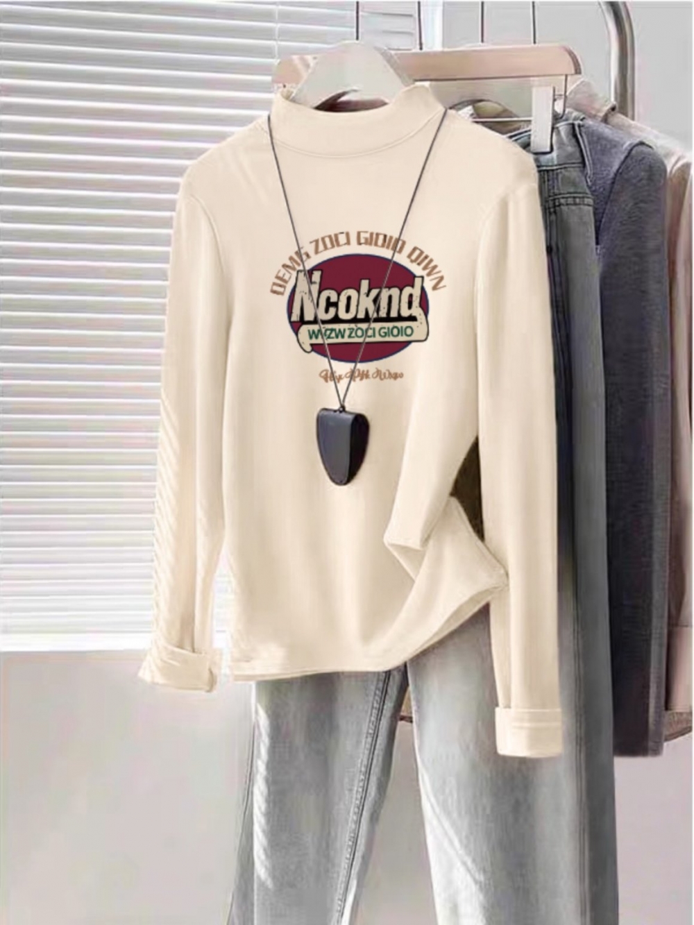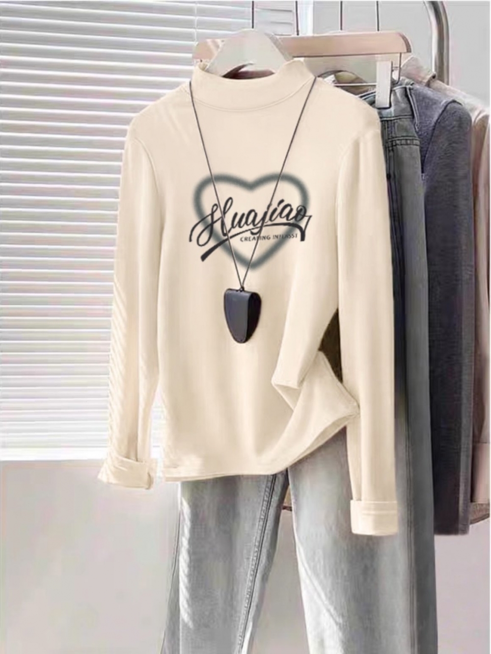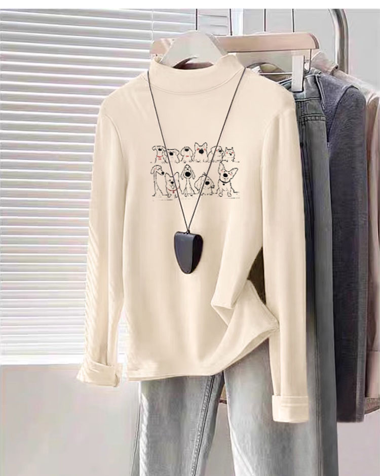 Women's Half Turtleneck K-style Bottoming Shirt Fall and Winter White Shoulder Silm Slim Looking Dralon Long Sleeves Warm T-shirt Top Clothes